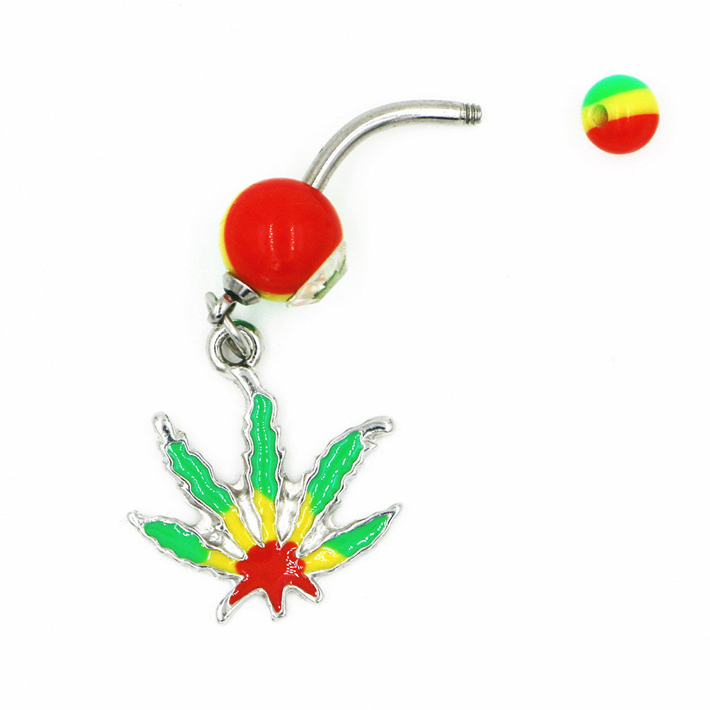 Jamaican Flag Navel Ring Belly Bar Acrylic Stud Stainless Steel Rod