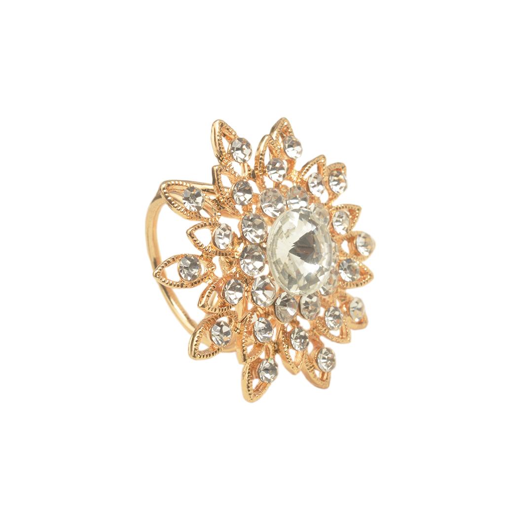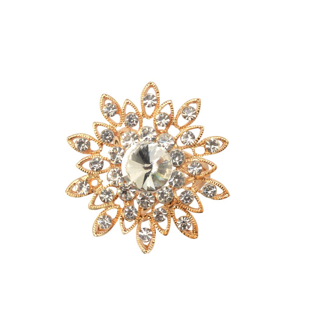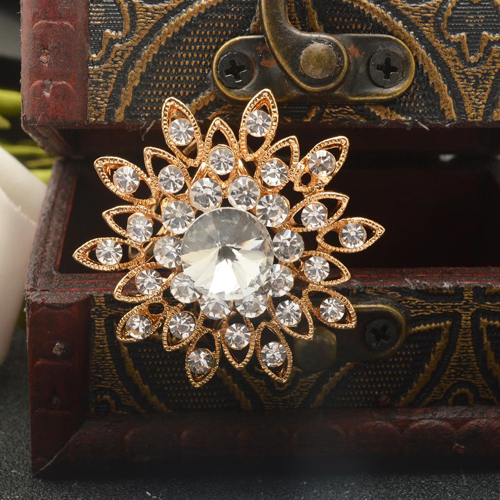 Jewelry Gold Sunflower Shape Crystal Charm Autumn Tricyclic Scarf Buckle Pin