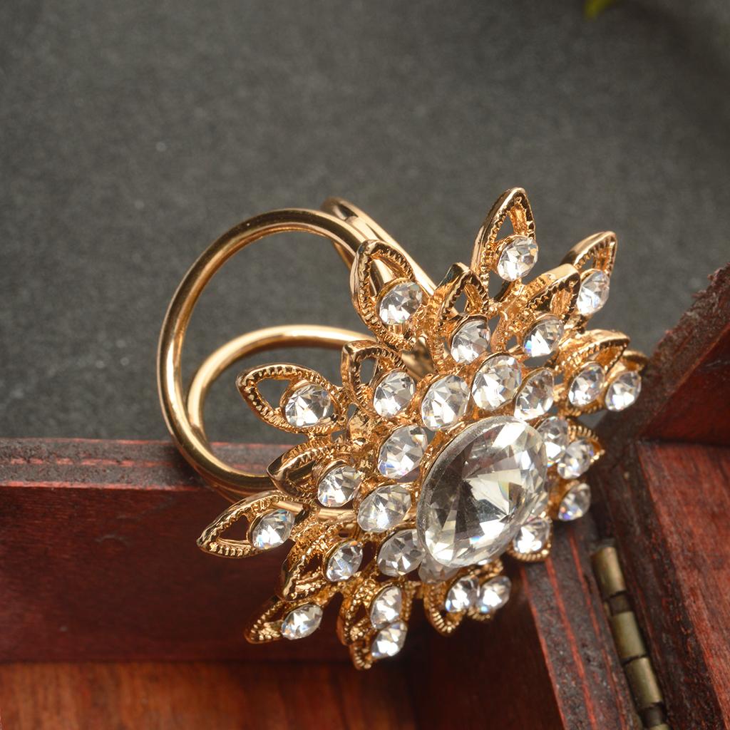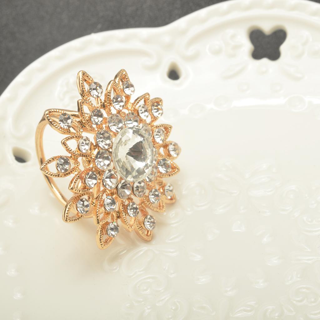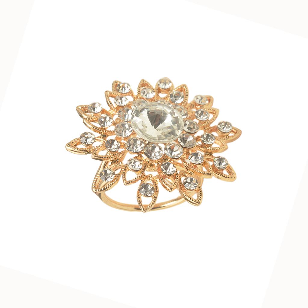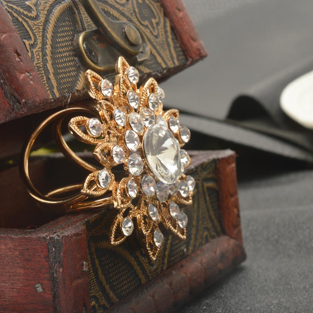 Jewelry Gold Sunflower Shape Crystal Charm Autumn Tricyclic Scarf Buckle Pin