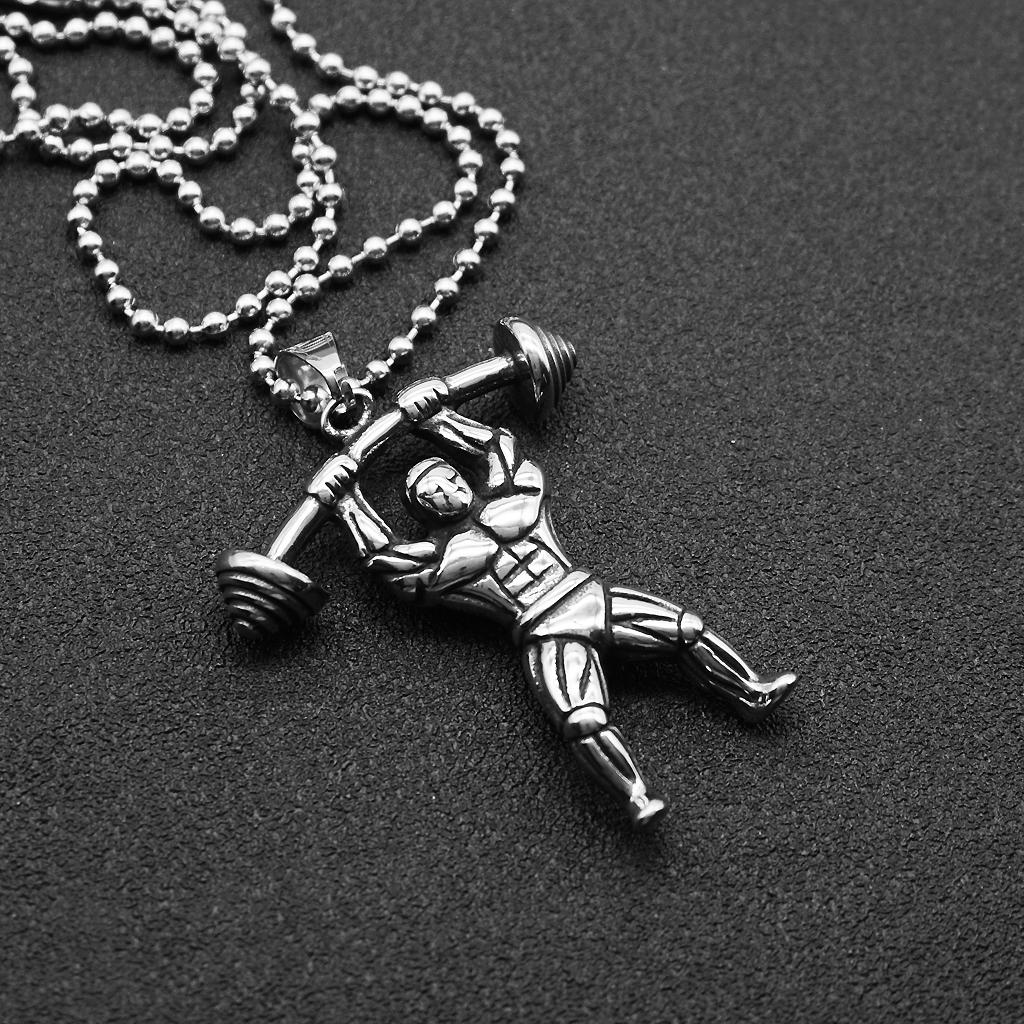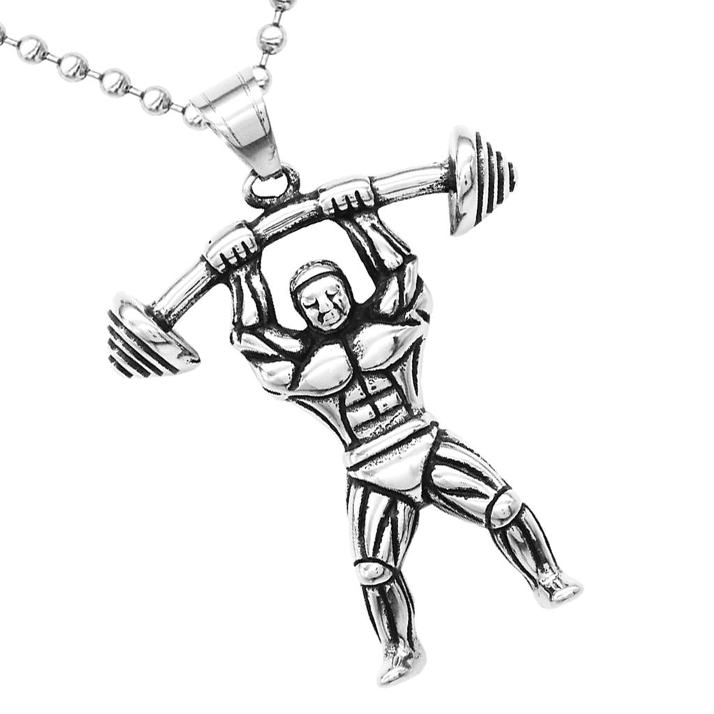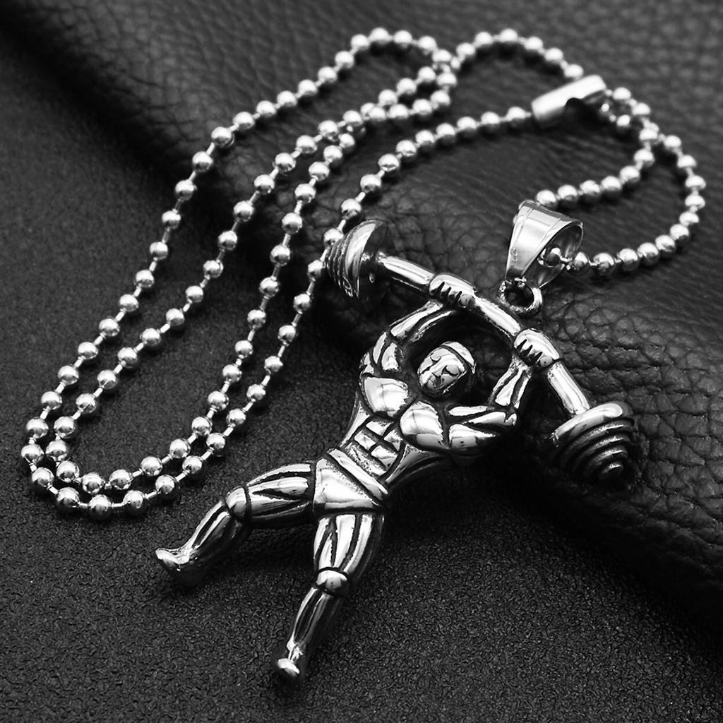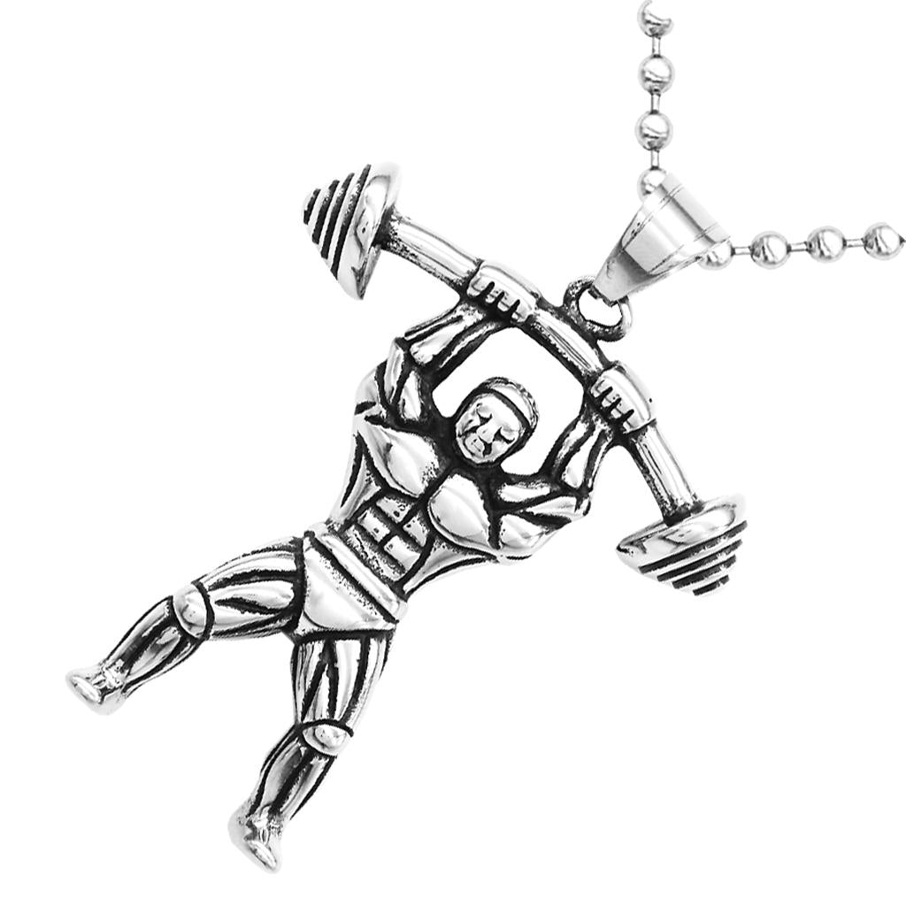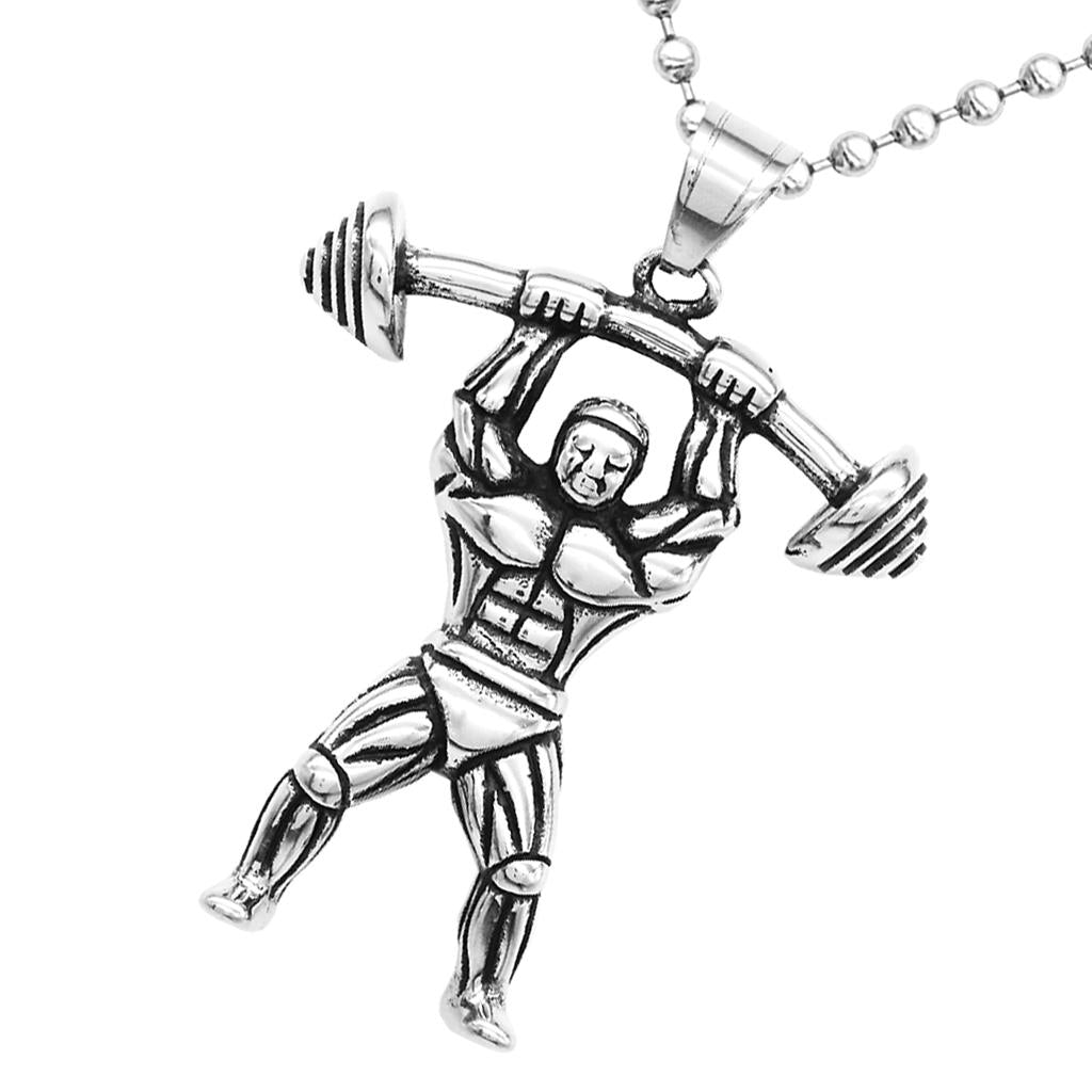 Jewelry Mens Stainless Steel Fitness Weightlifting Bodybuilder Muscular Male Pendant Necklace,50cm / 20inch