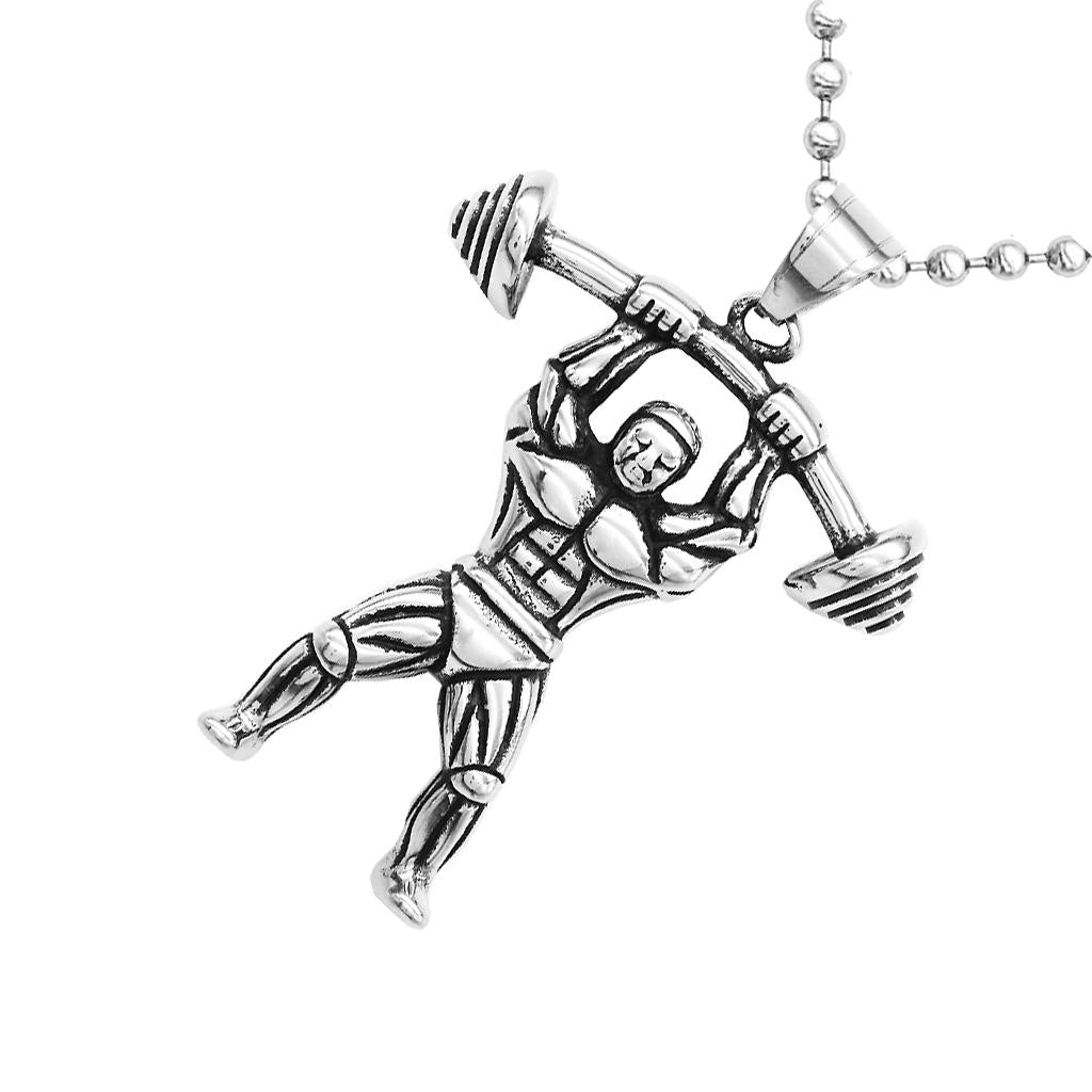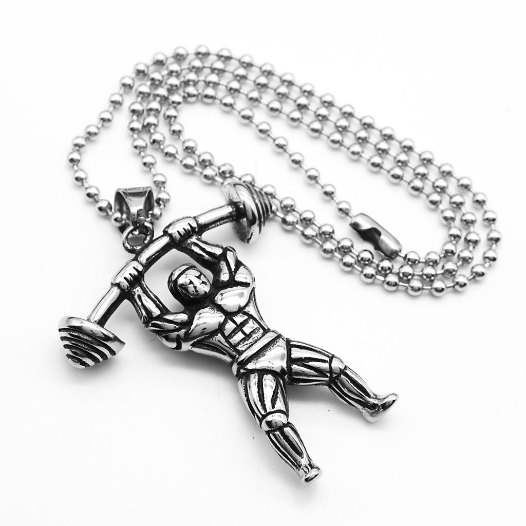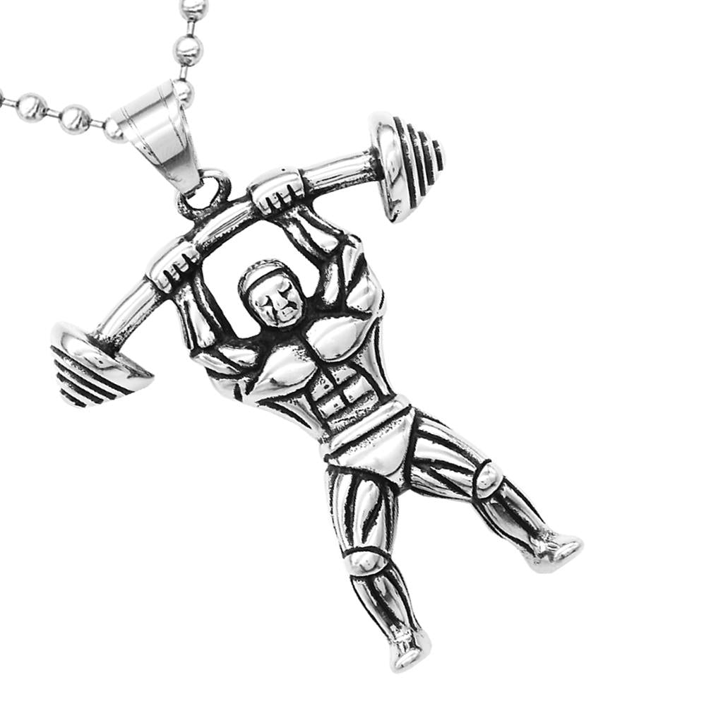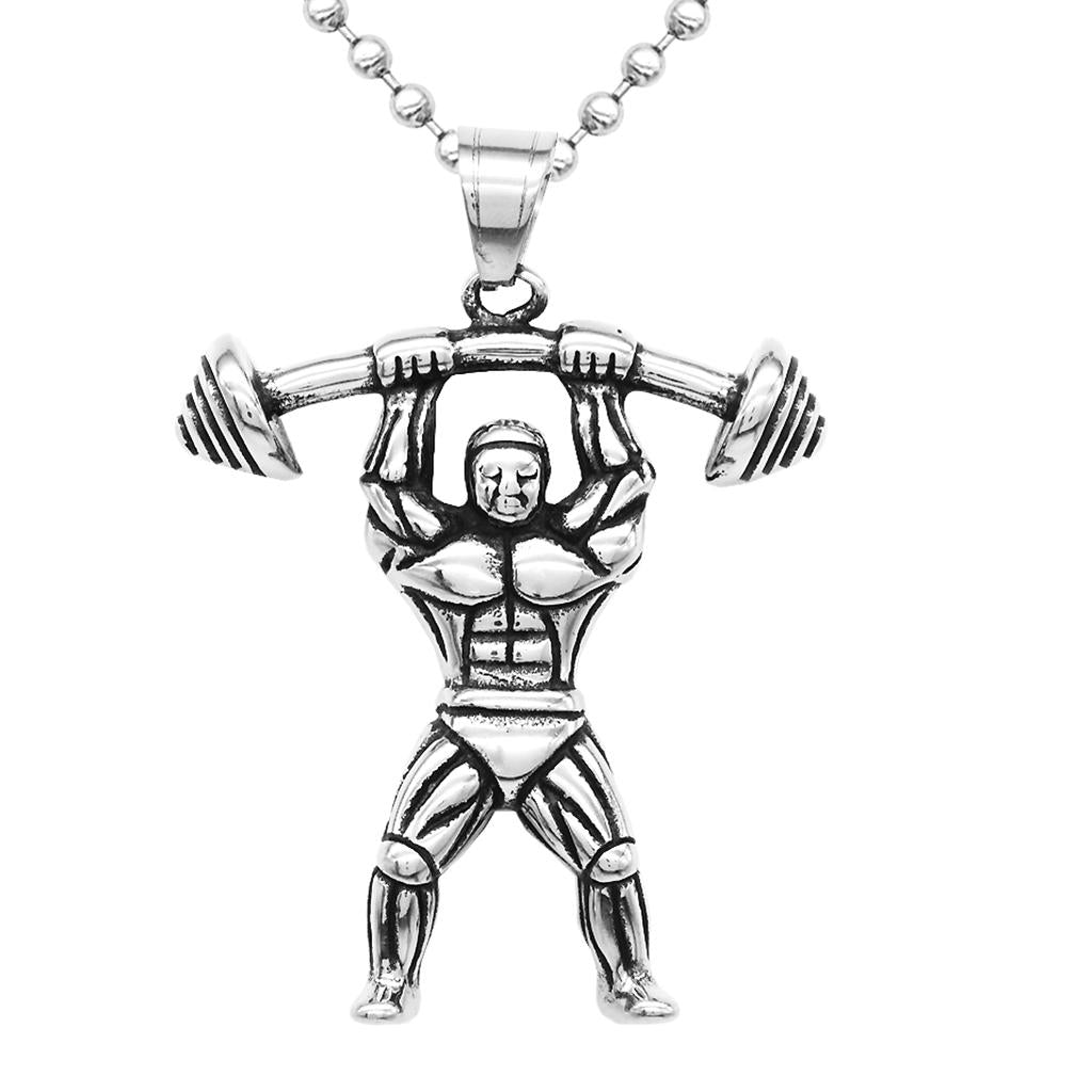 Jewelry Mens Stainless Steel Fitness Weightlifting Bodybuilder Muscular Male Pendant Necklace,50cm / 20inch