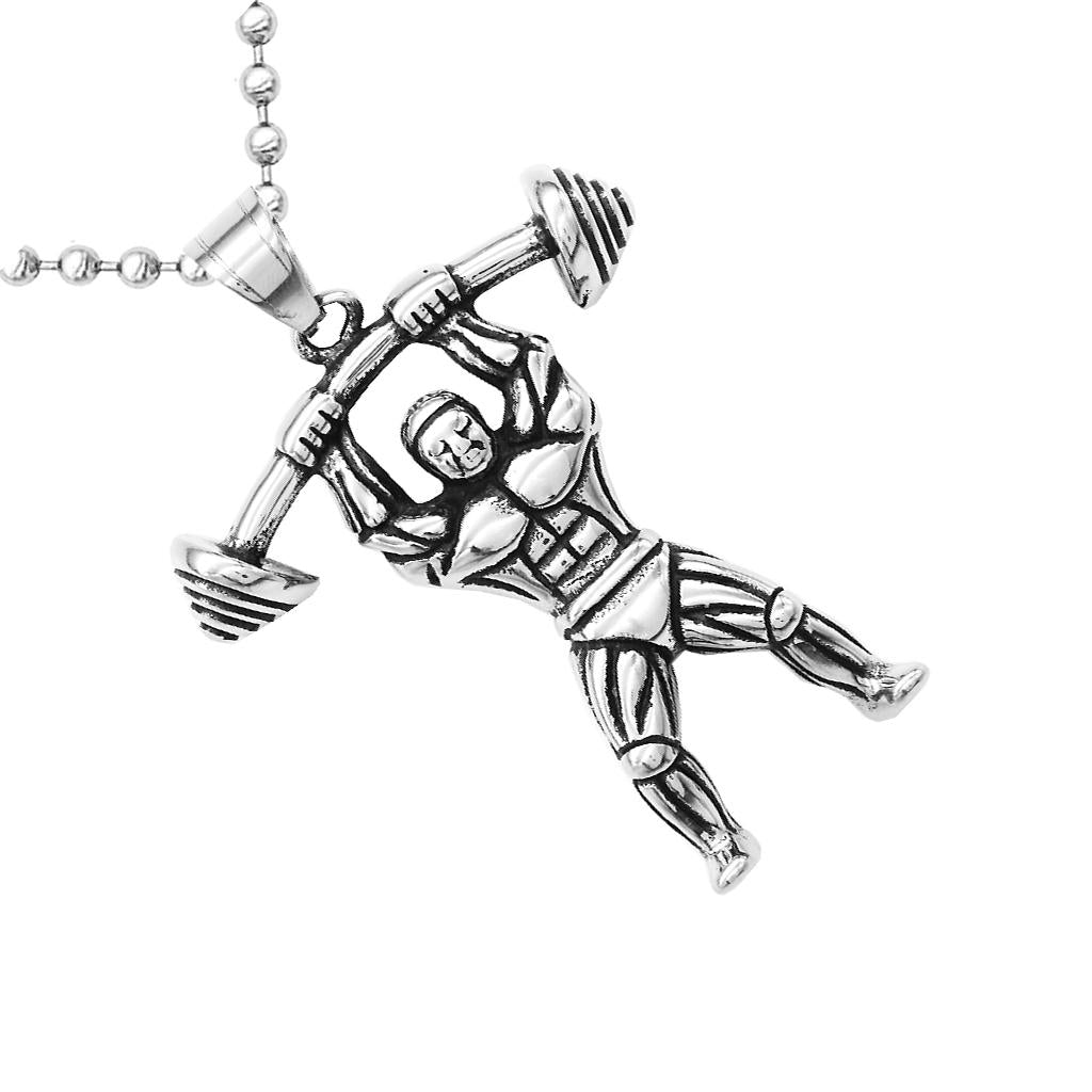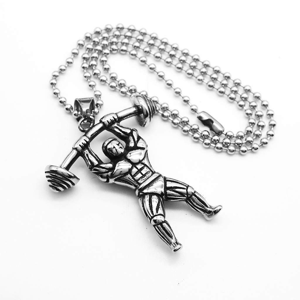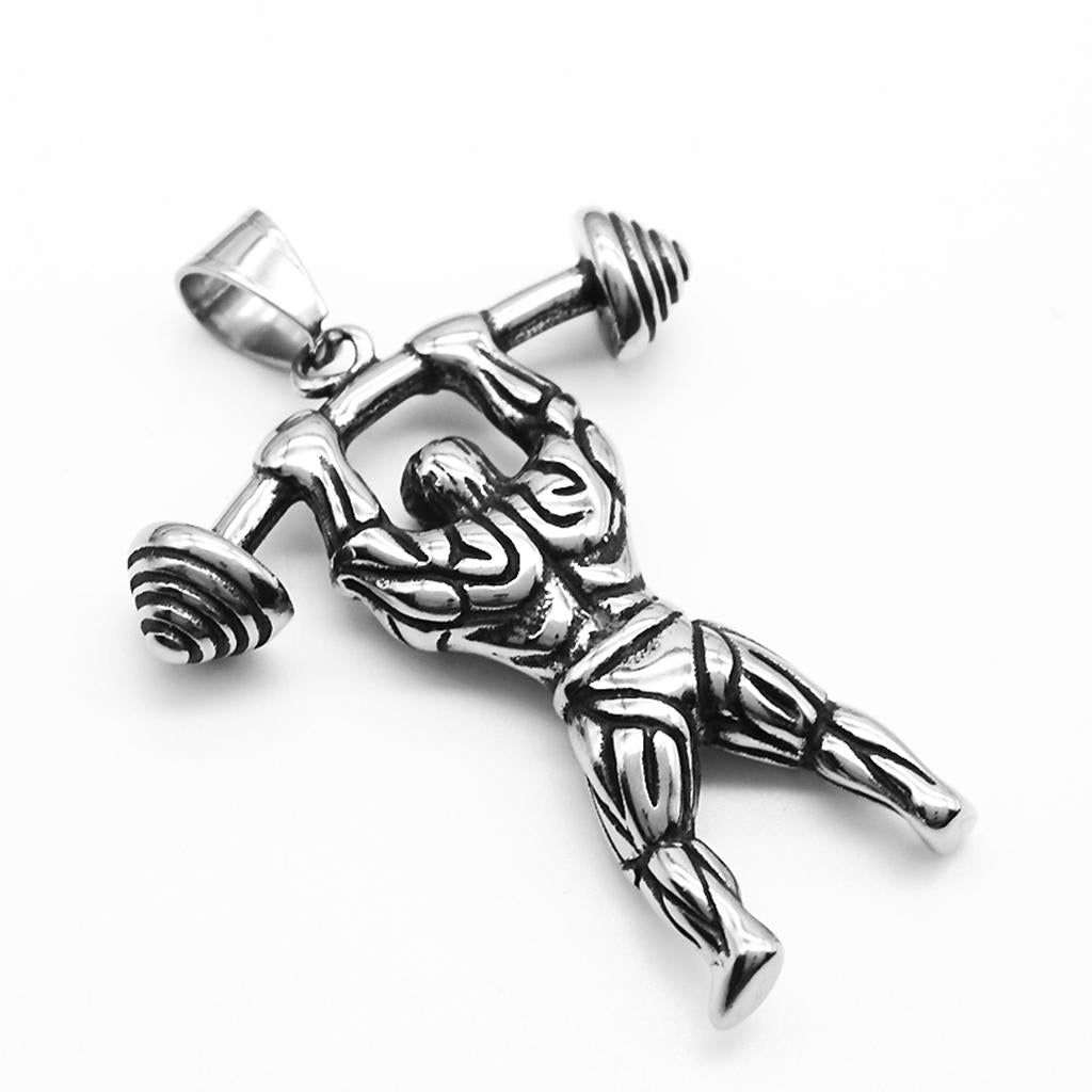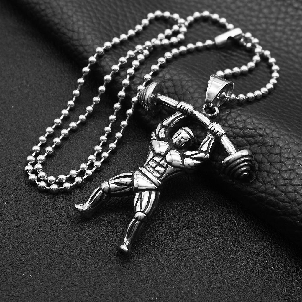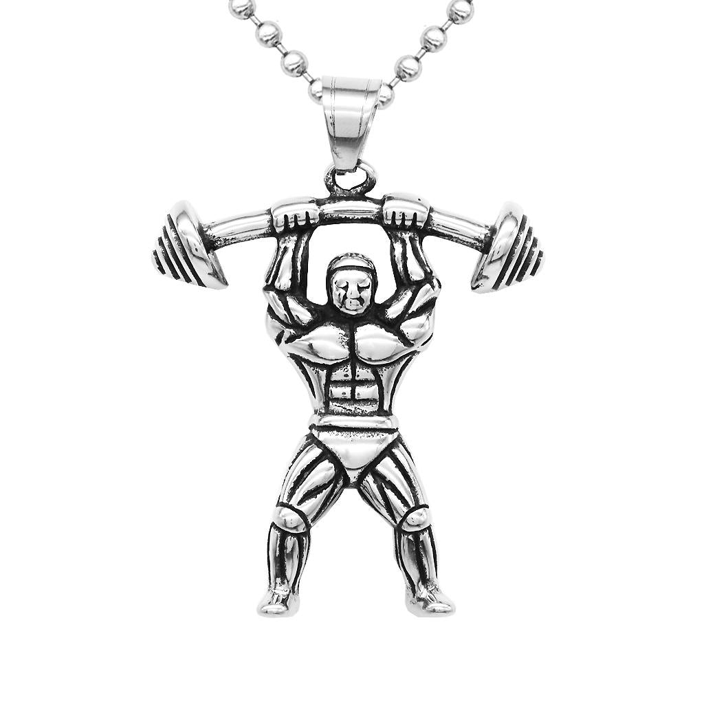 Jewelry Mens Stainless Steel Fitness Weightlifting Bodybuilder Muscular Male Pendant Necklace,50cm / 20inch