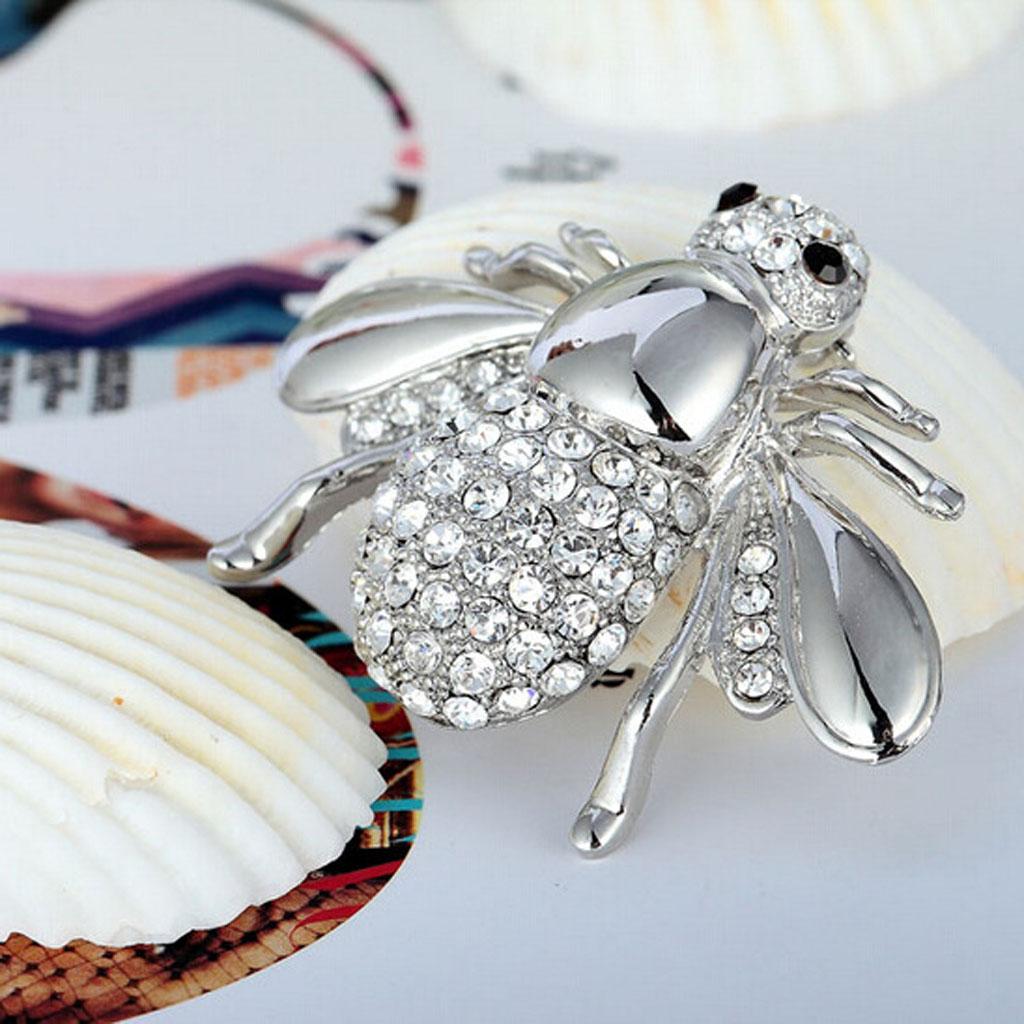 Lovely Cute Honey Bee Rhinestone Brooch Pin for Women Party Gifts Silver