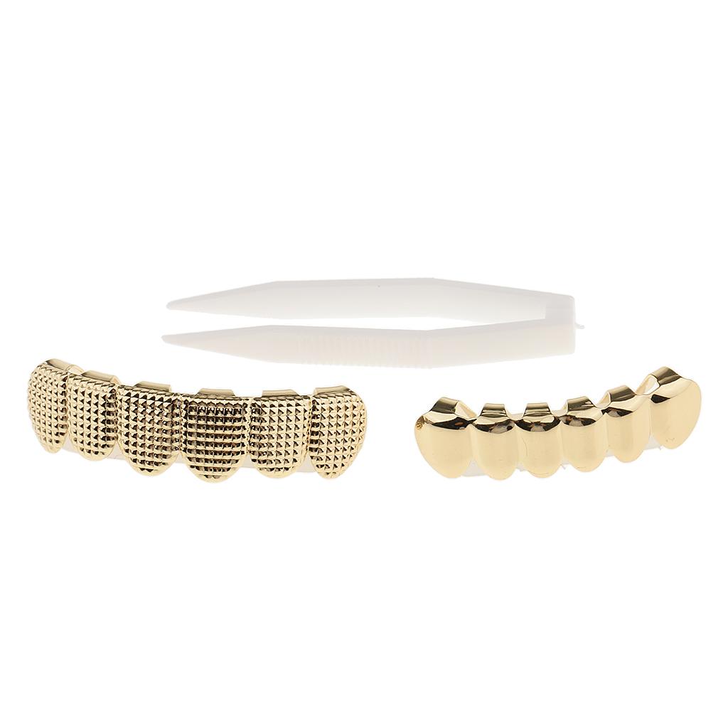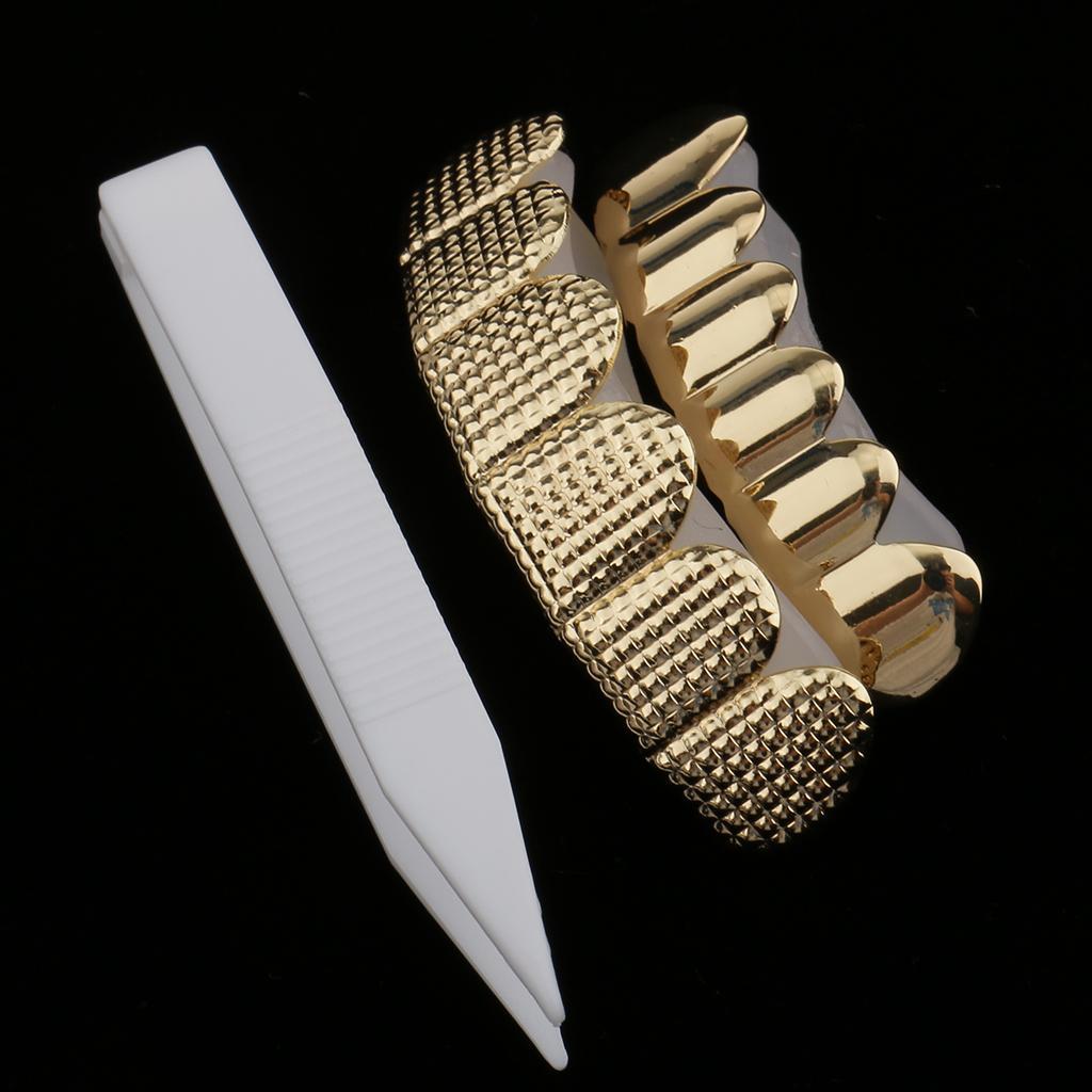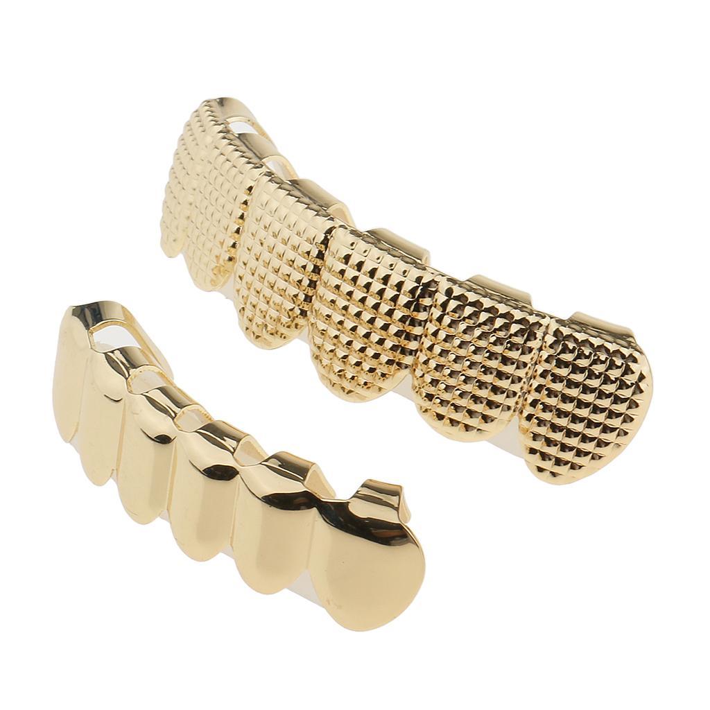 Luxury 18K Gold Plated Hip-Hop Gilded Carved Teeth Halloween Punk Fashion Costume Teeth Props Unisex Cosplay Jewelry