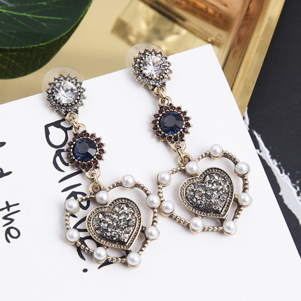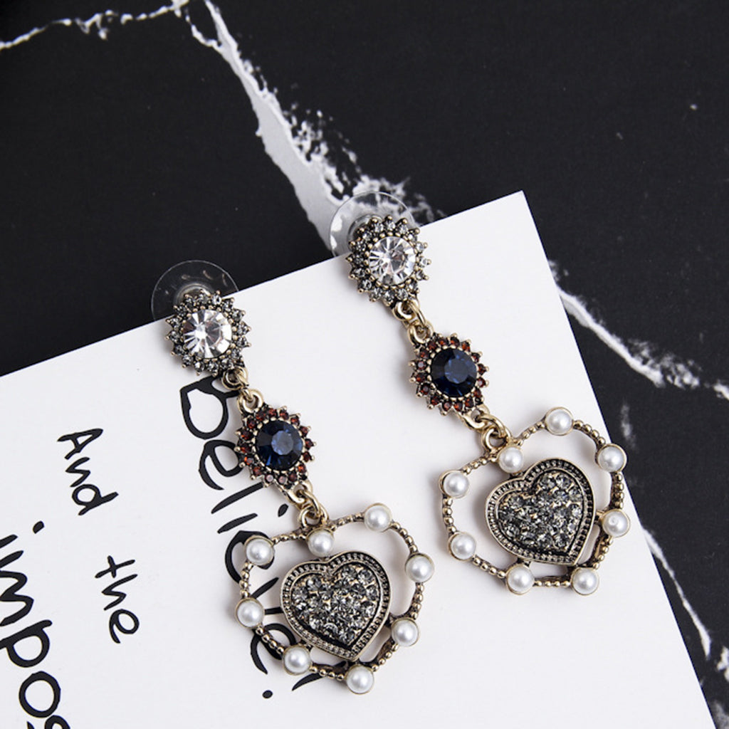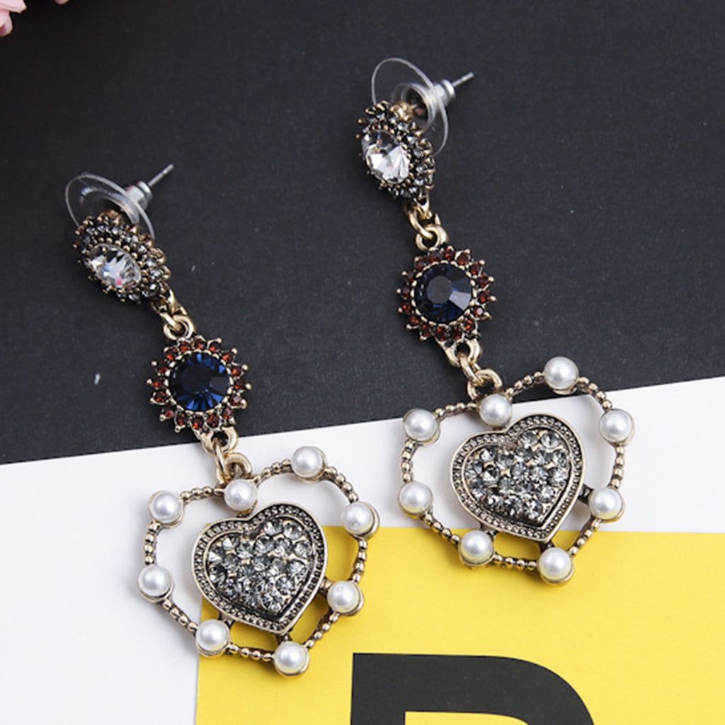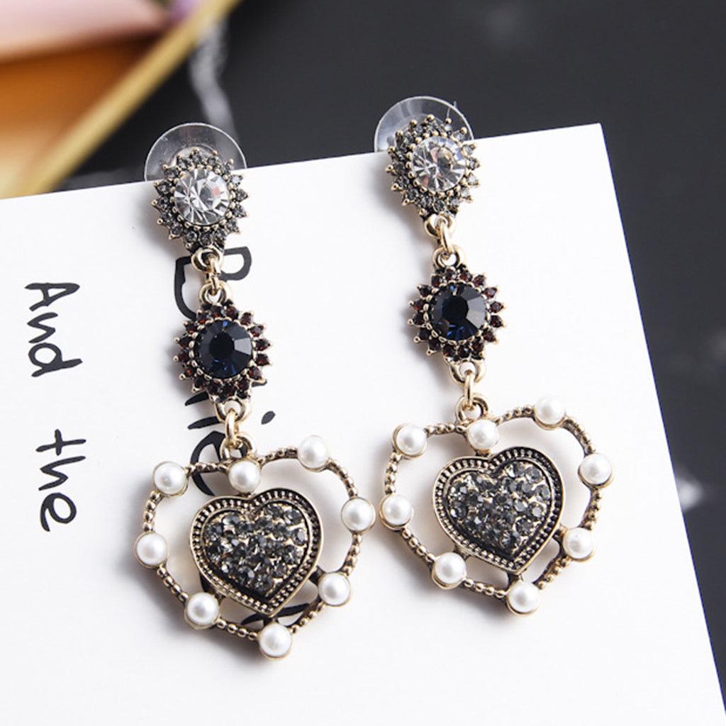 Vintage love heart shape dangle earrings with luxury rhinestone;Package Includes:
