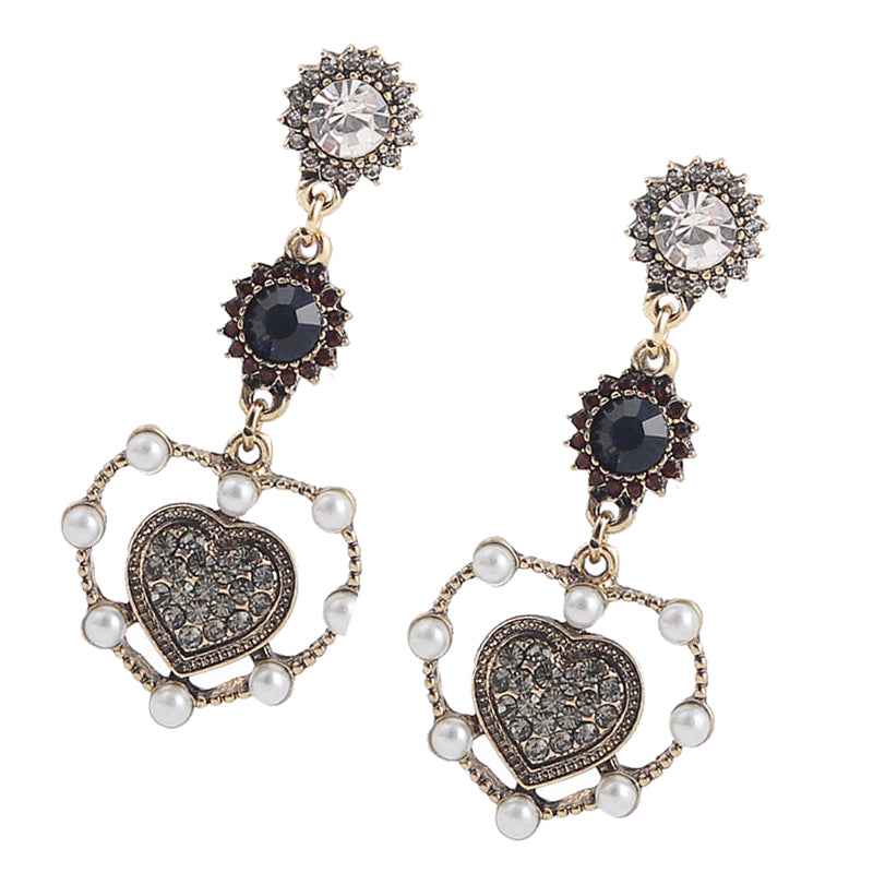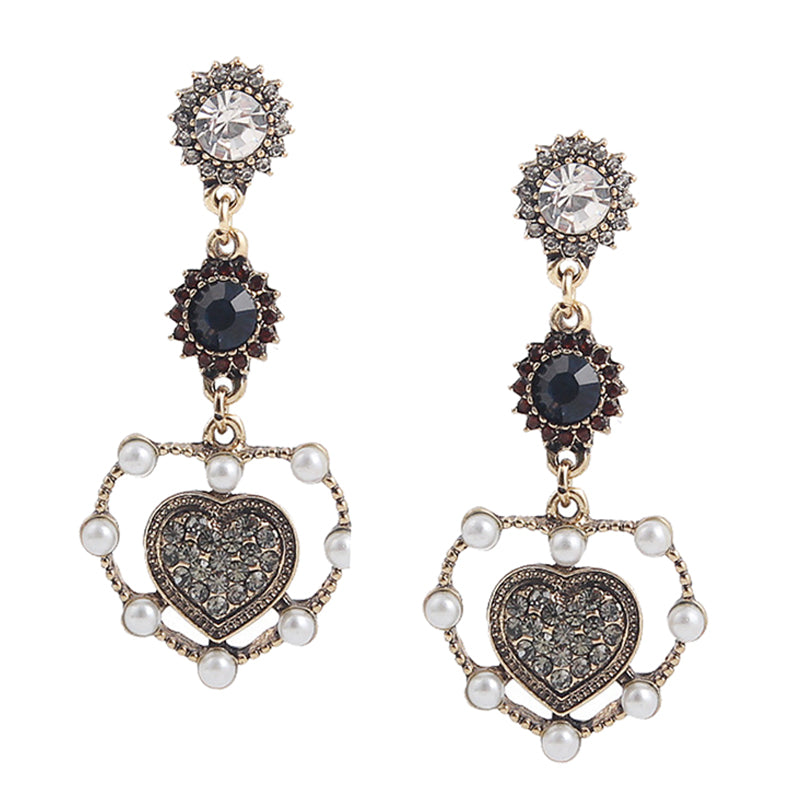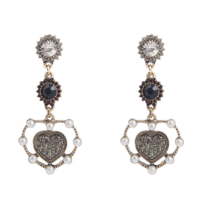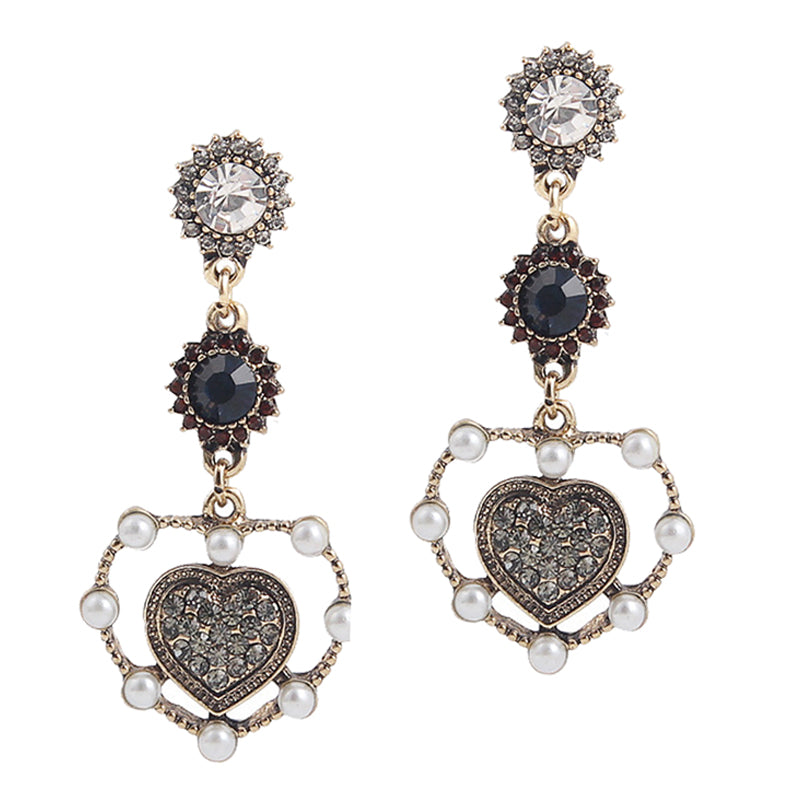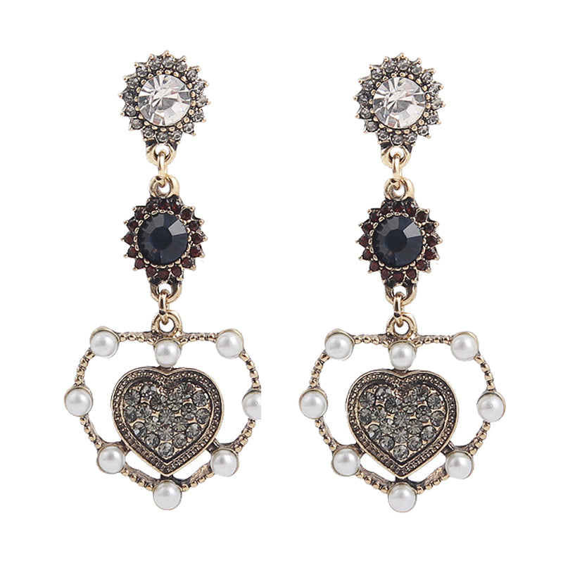 Vintage love heart shape dangle earrings with luxury rhinestone;Package Includes: