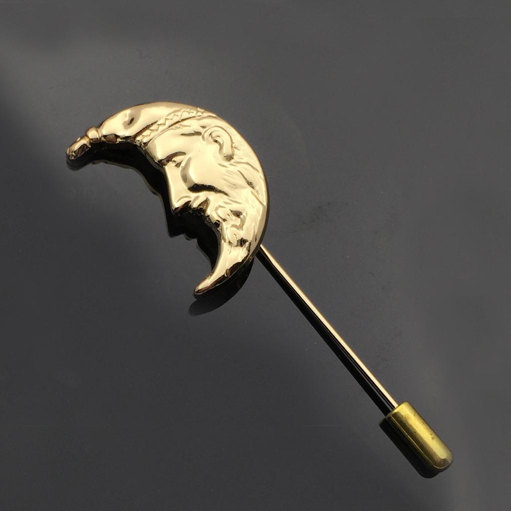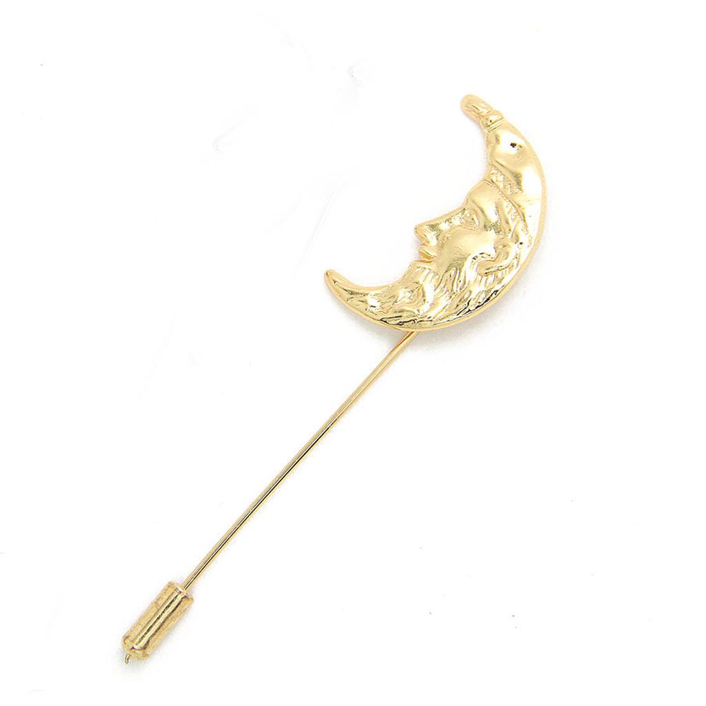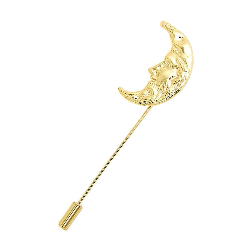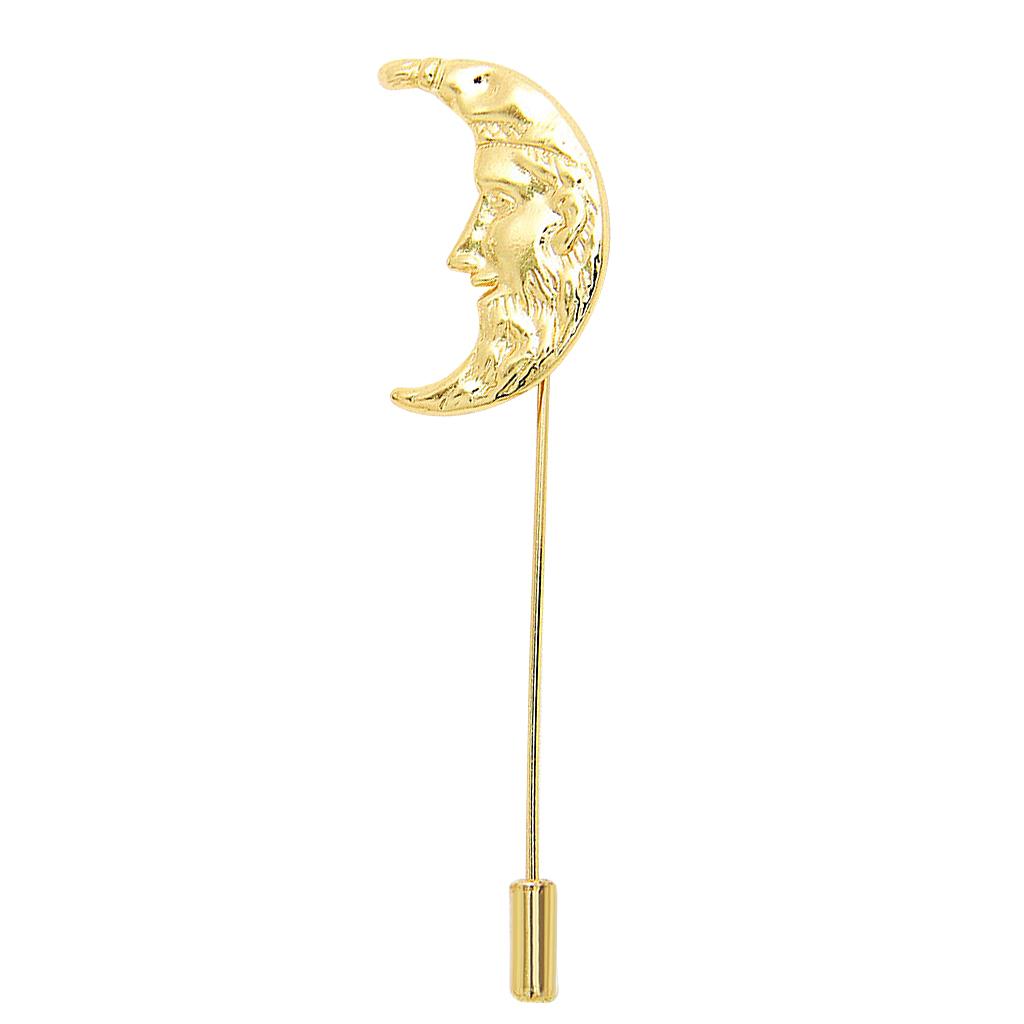 Men Golden Crescent Moon Suit Shirt Corsage Lapel Stick Pin Tie Hat Brooch