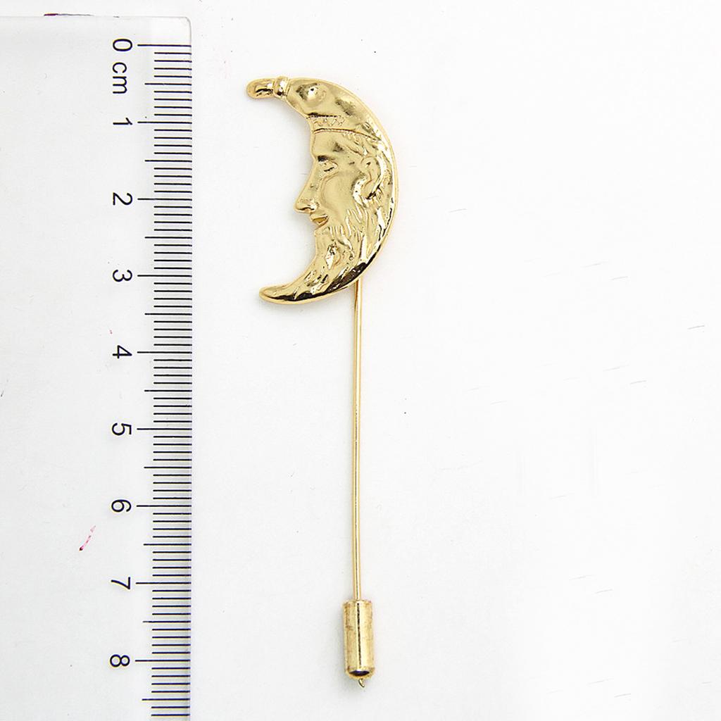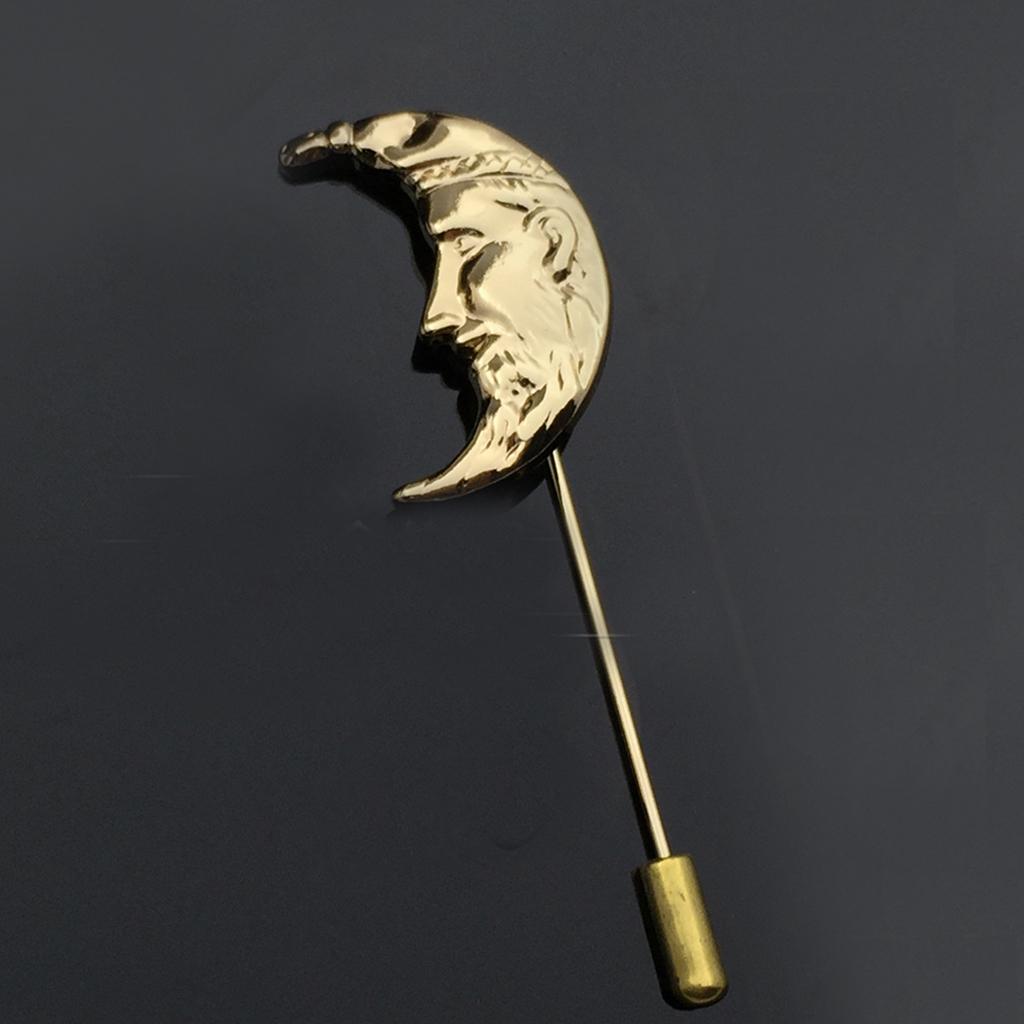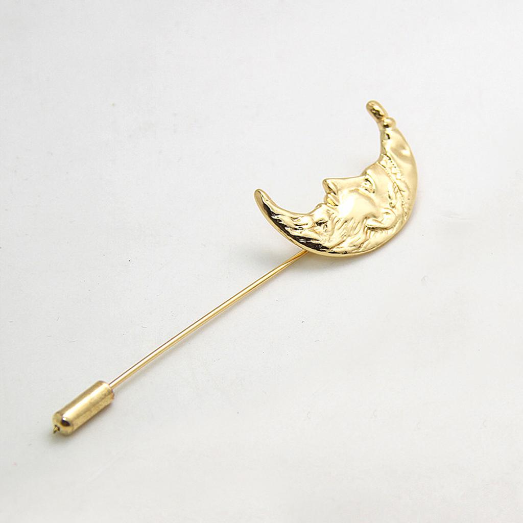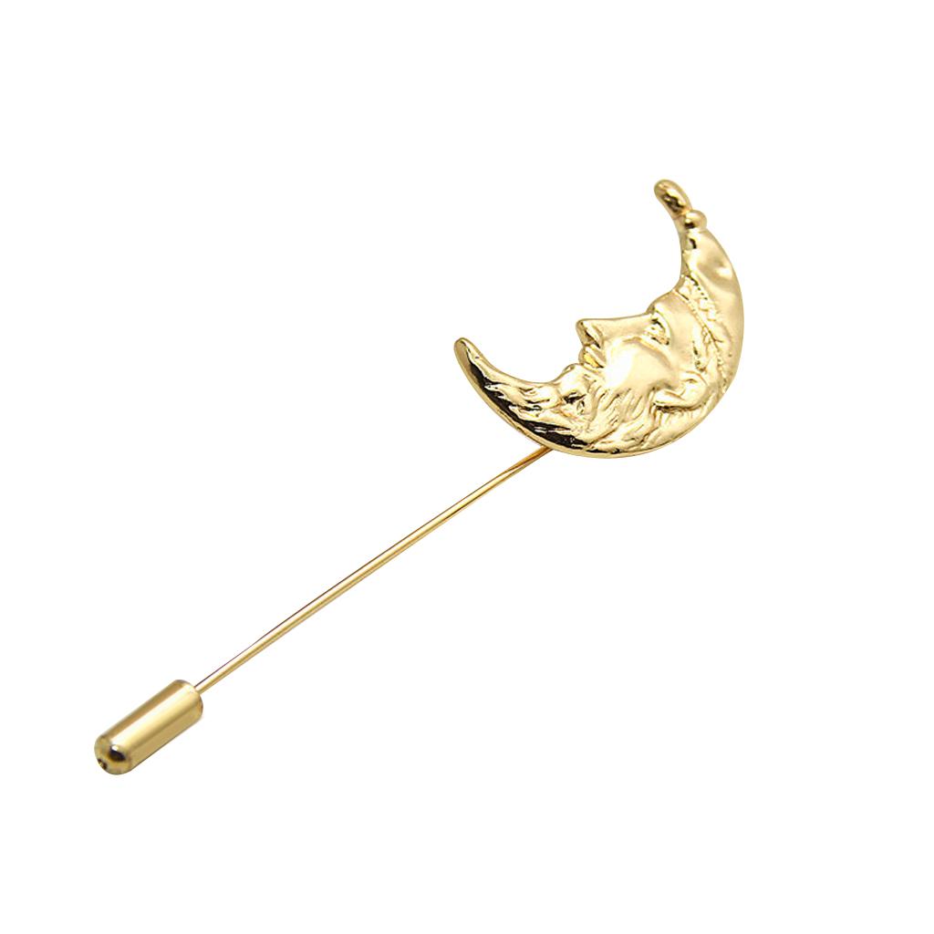 Men Golden Crescent Moon Suit Shirt Corsage Lapel Stick Pin Tie Hat Brooch