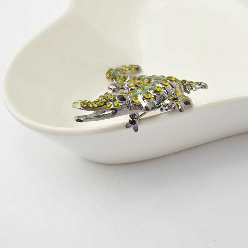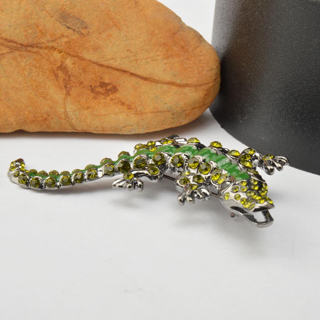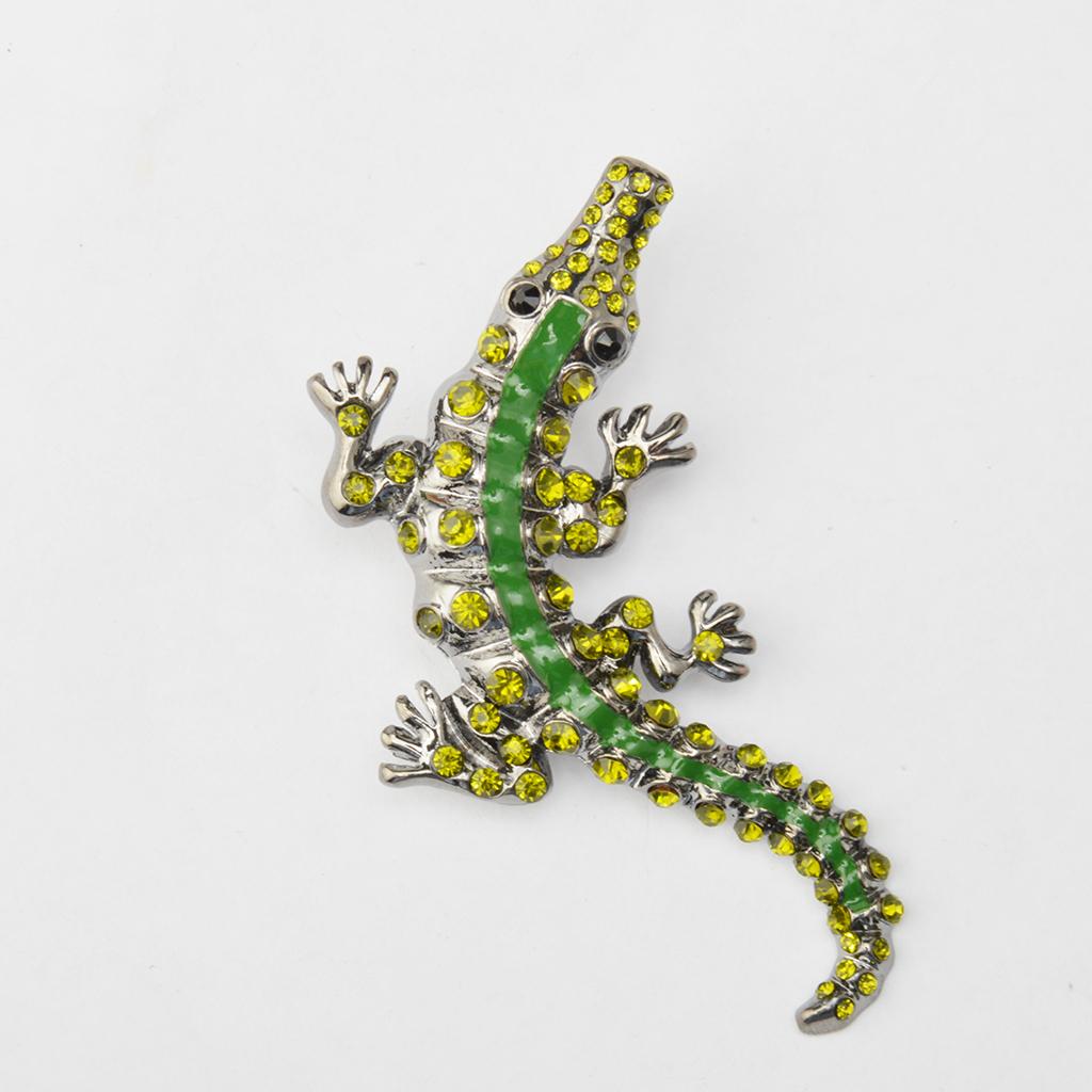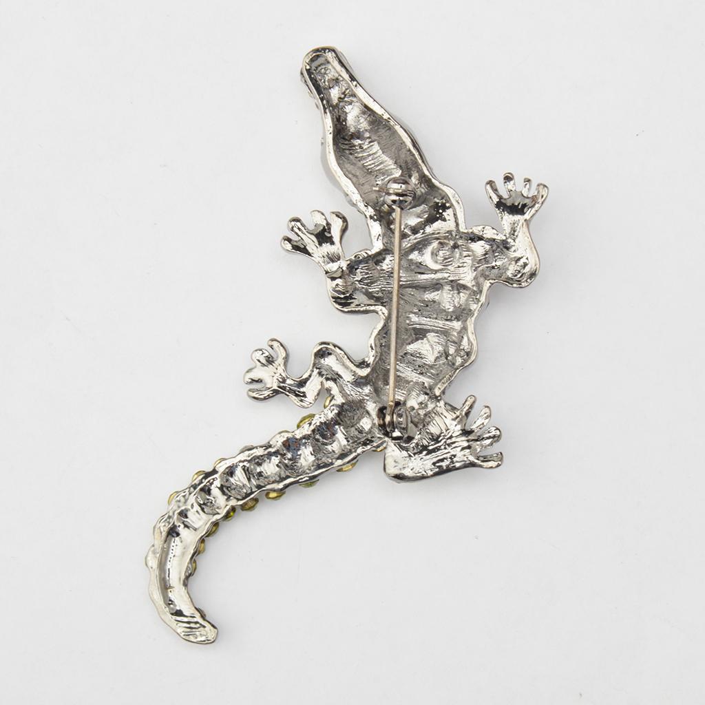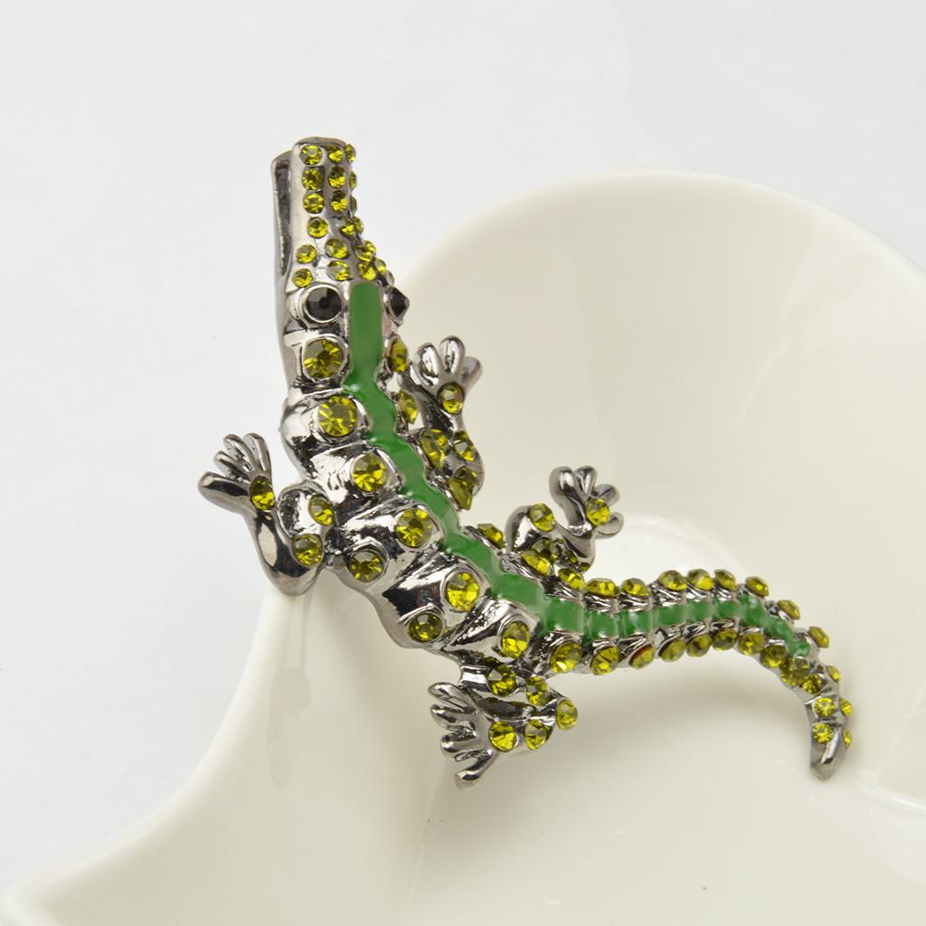 Men Gothic Punk Alligator Crocodile Crystal Rhinestone Brooch Pin Jewelry