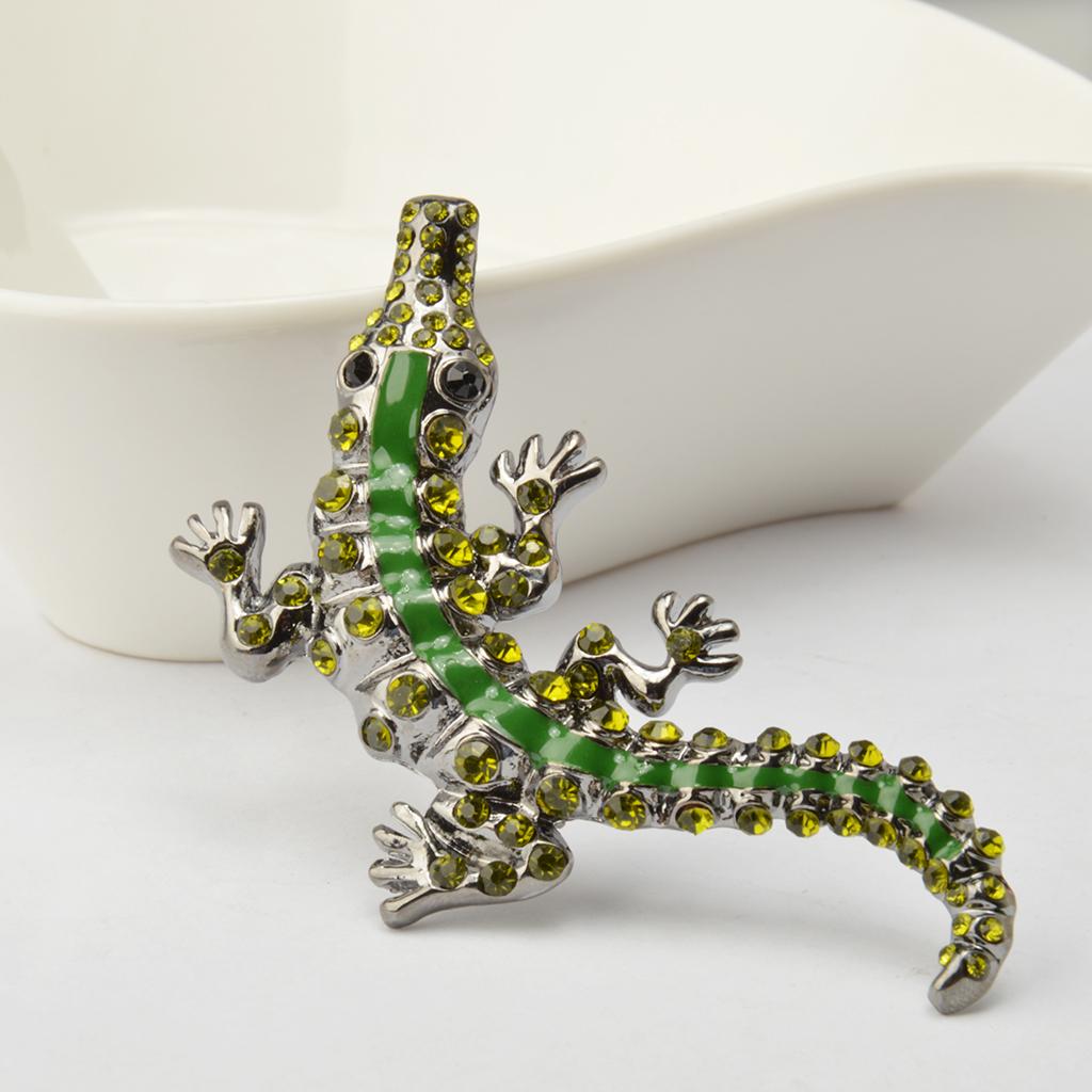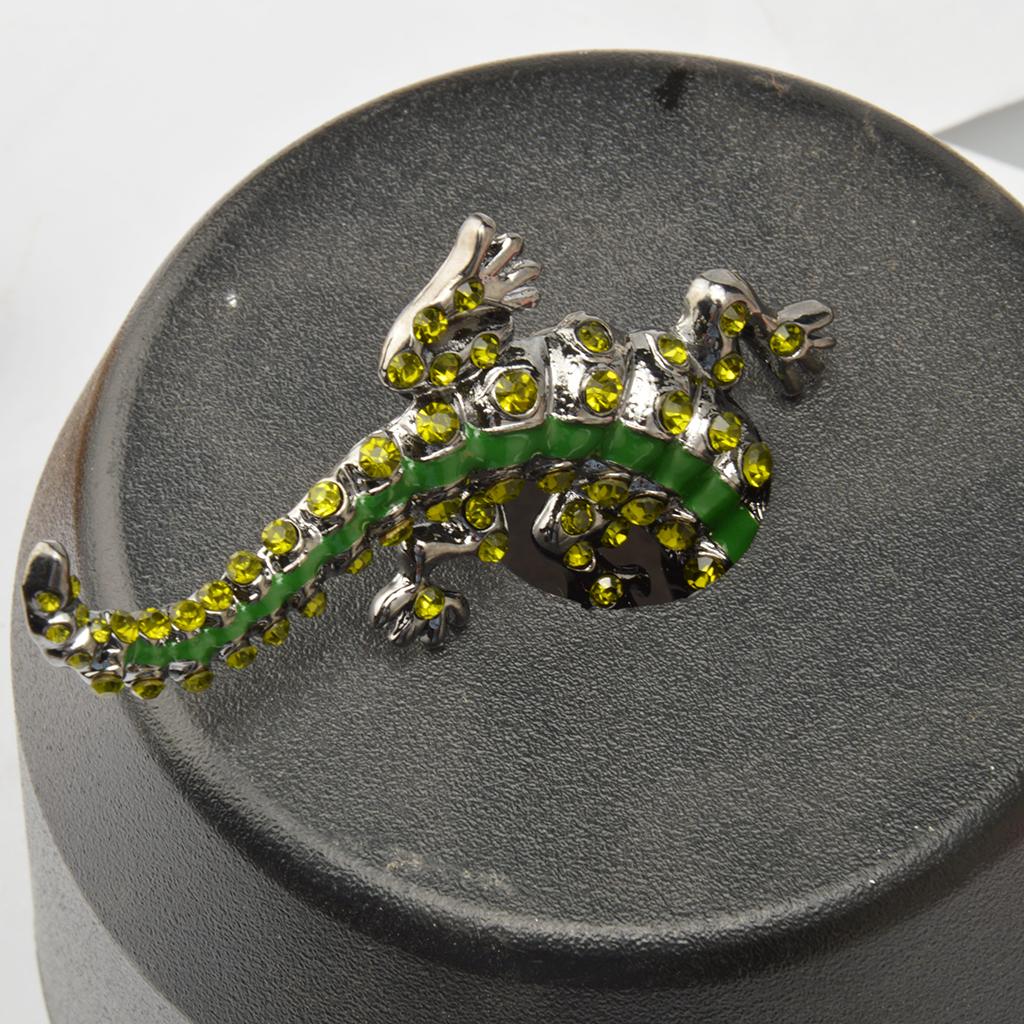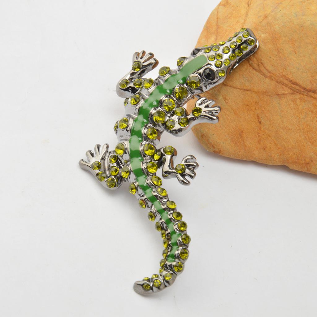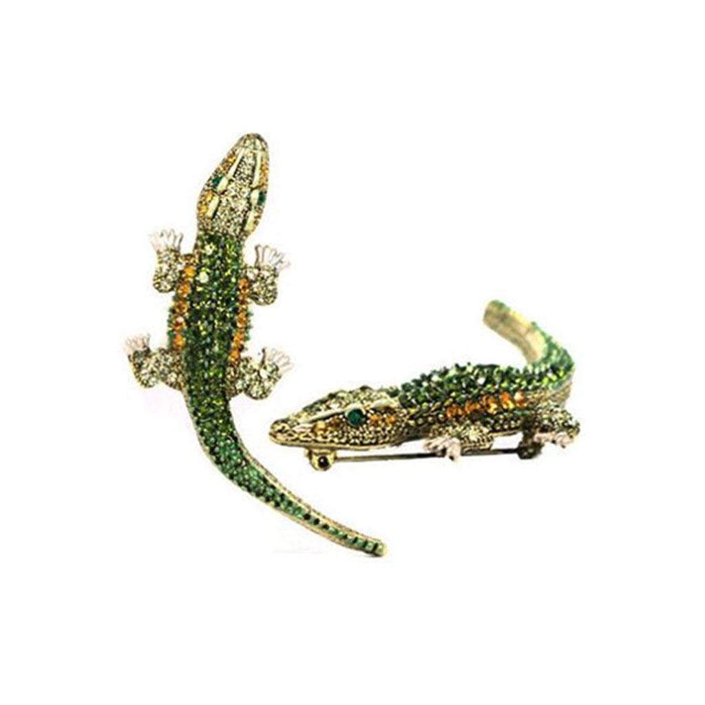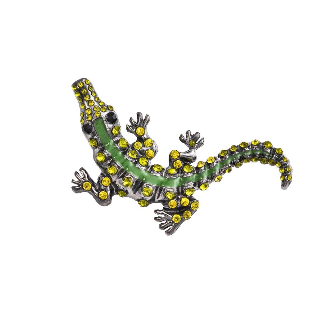 Men Gothic Punk Alligator Crocodile Crystal Rhinestone Brooch Pin Jewelry