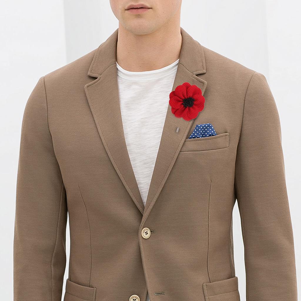 Mens Handmade Flax Flower Lapel Brooch Boutonniere Tuxedo Stick Pin Red