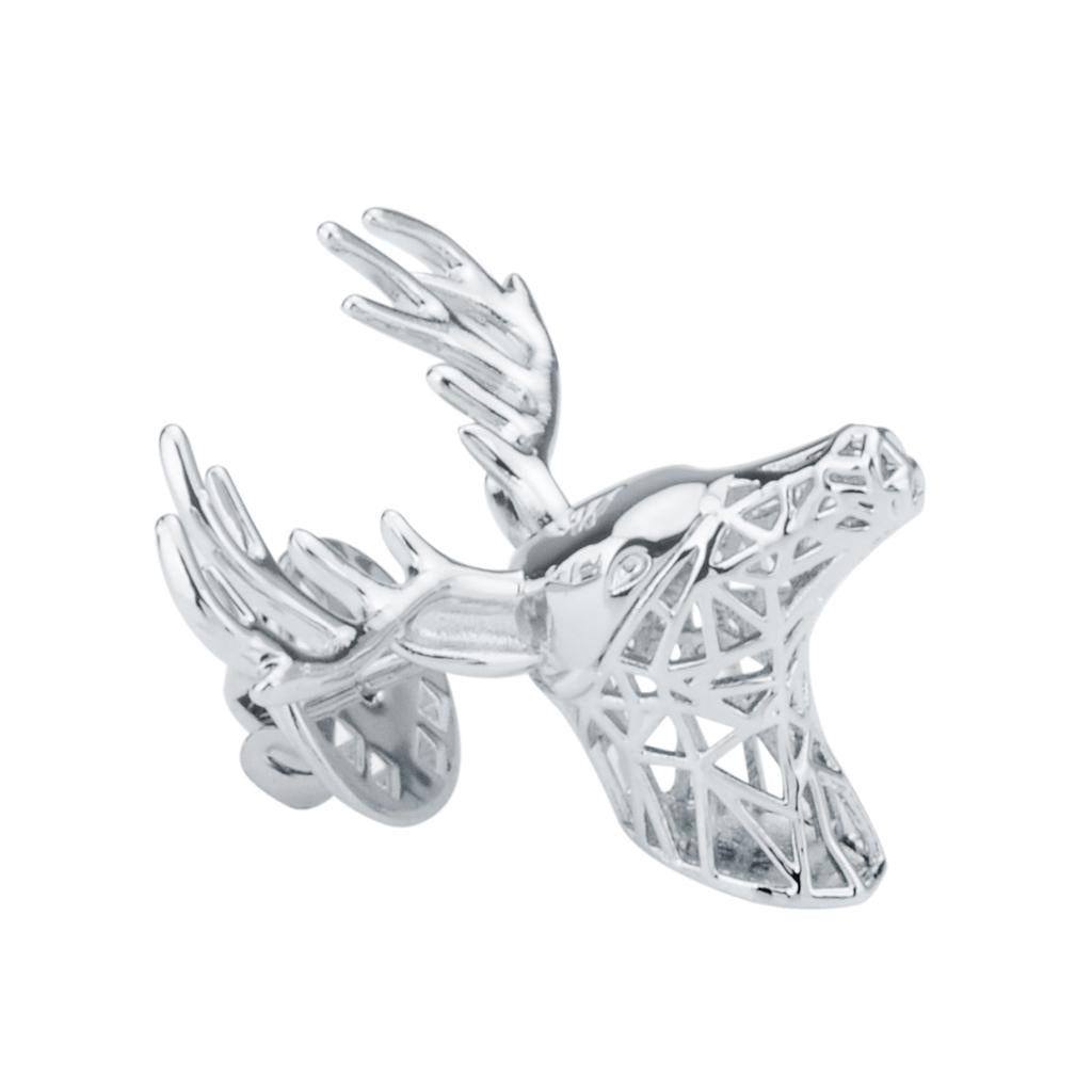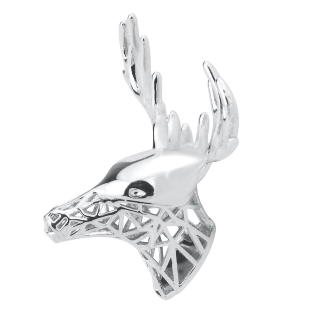 Mens Silver Antler Deer Reindeer Elk Stag Head Collar Brooch Pin Xmas Gift