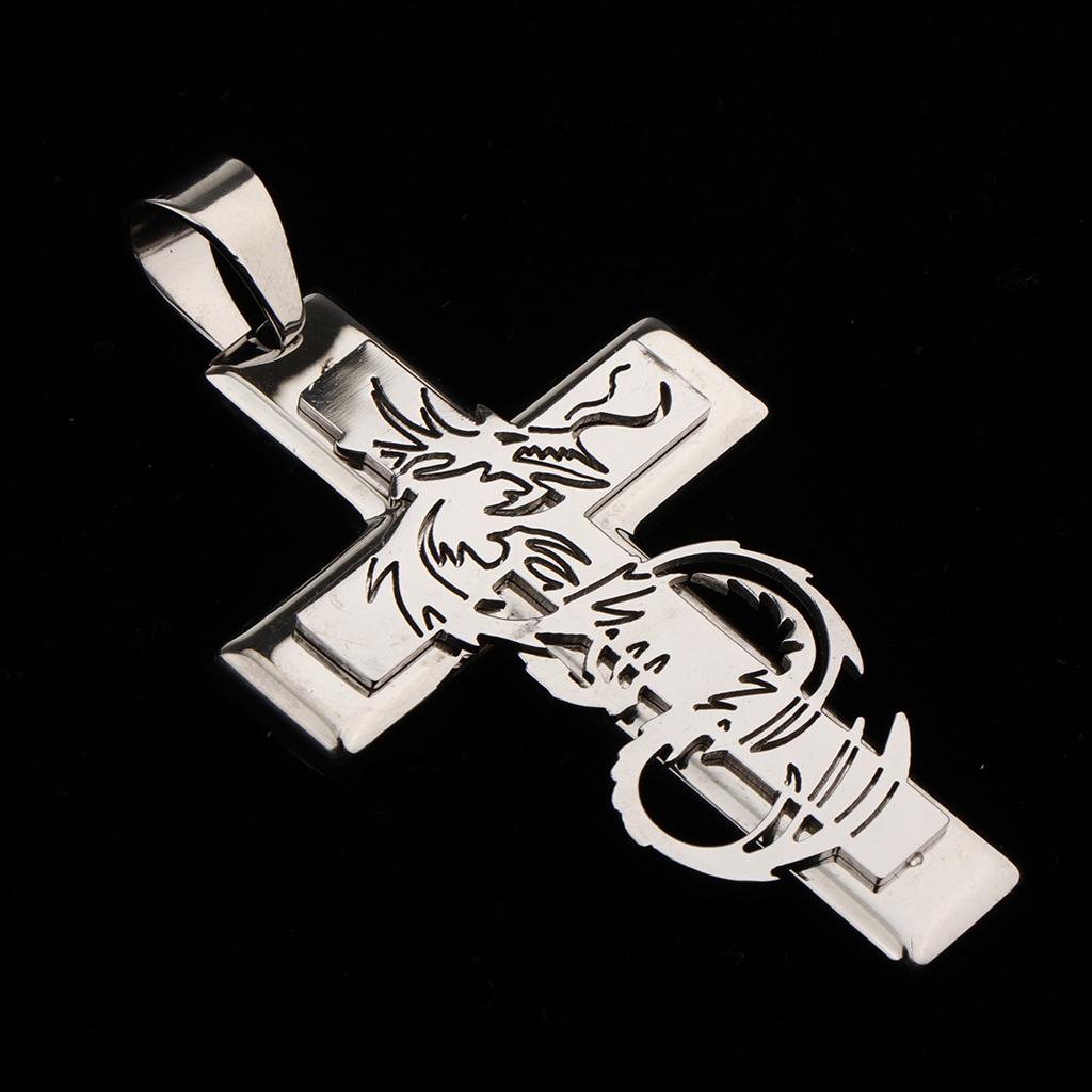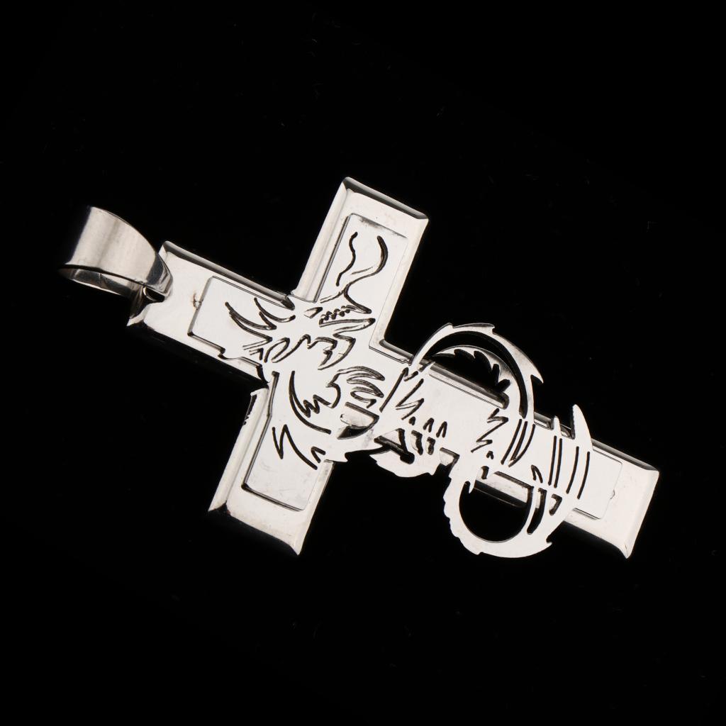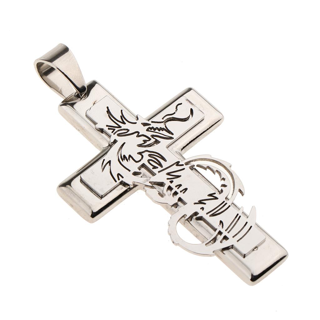 Vintage 3D Cross Shape Pendant engraved Dragon pattern