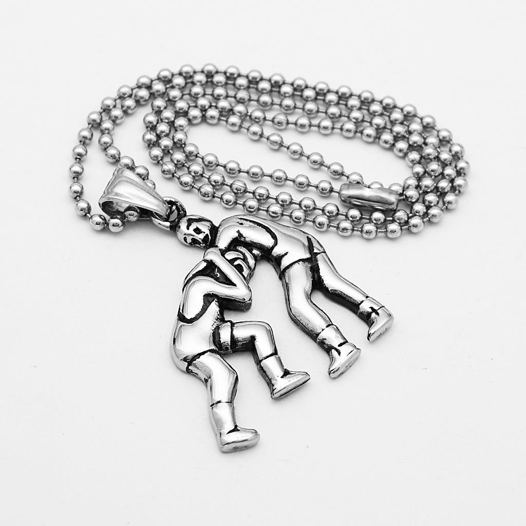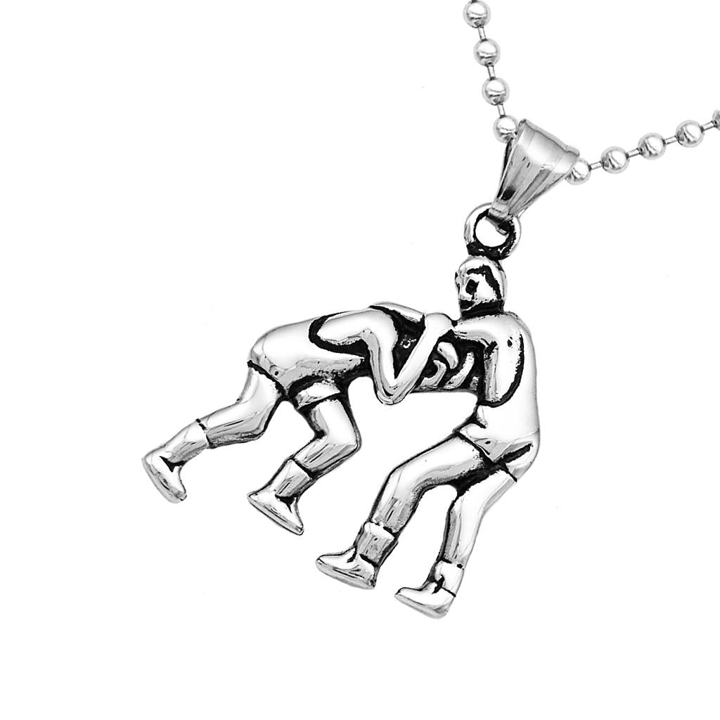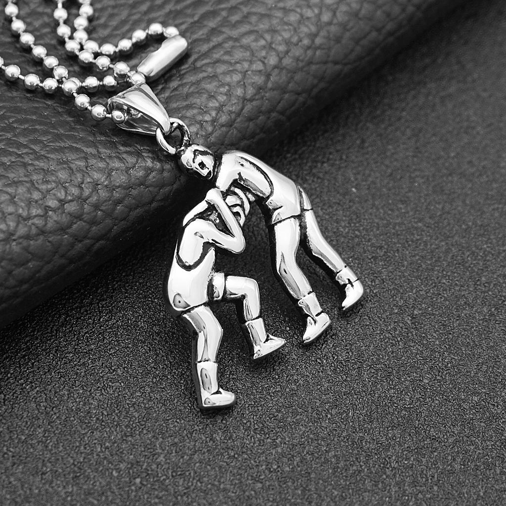Mens Stainless Steel Two People Wrestling Athletic Fitness Pendant Chain Fitness Gym Charms Lucky Necklace