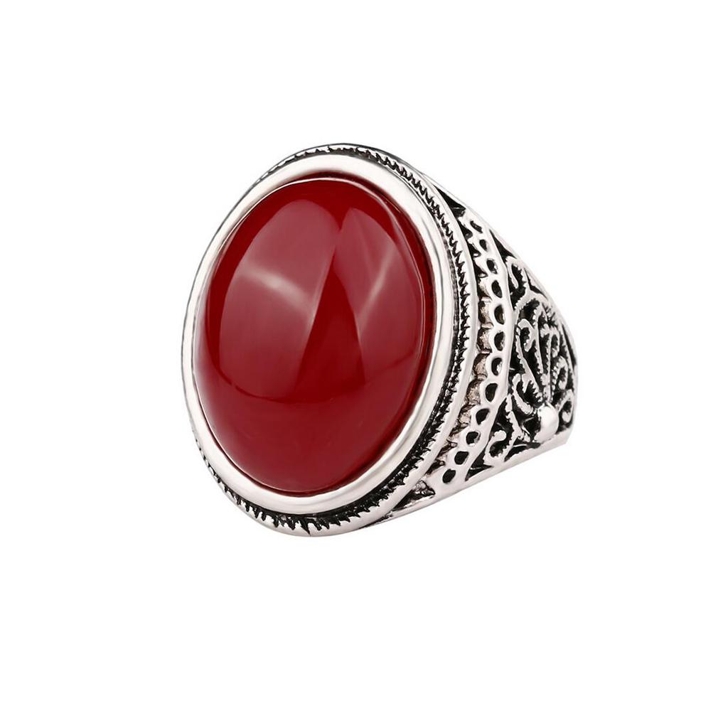 Metal Alloy Engraved Ring Mens Wedding Band Silver Red Oval Gemstone Sz 10