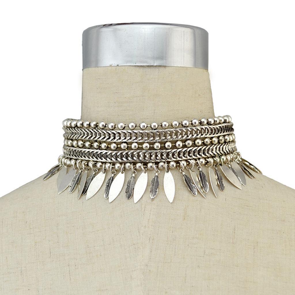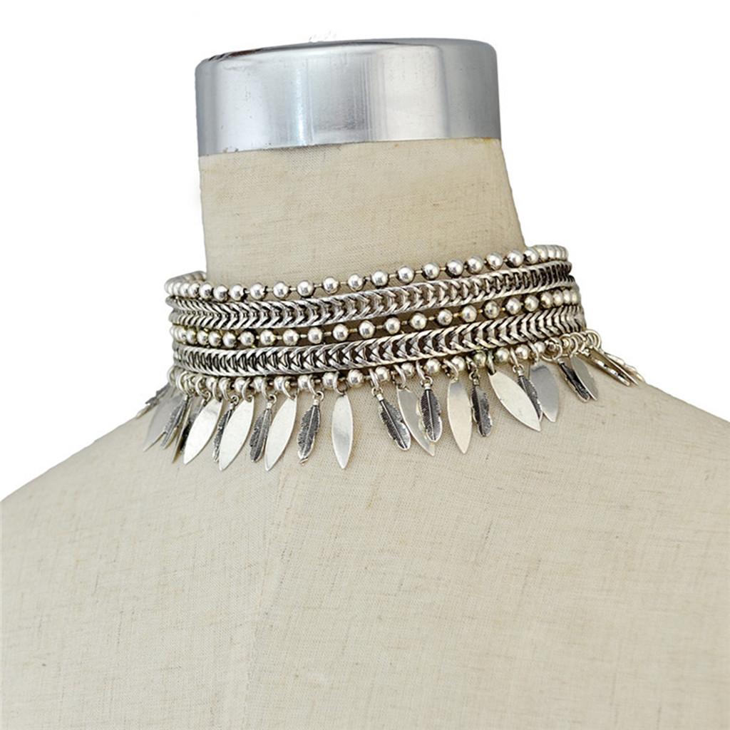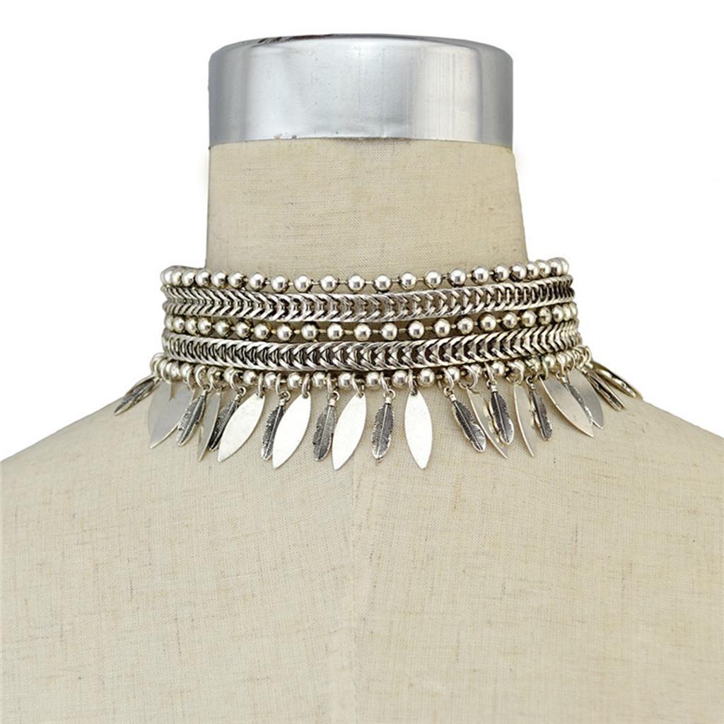 Antique silver tone multilayer tassel leaf necklace with beads fashion jewelry