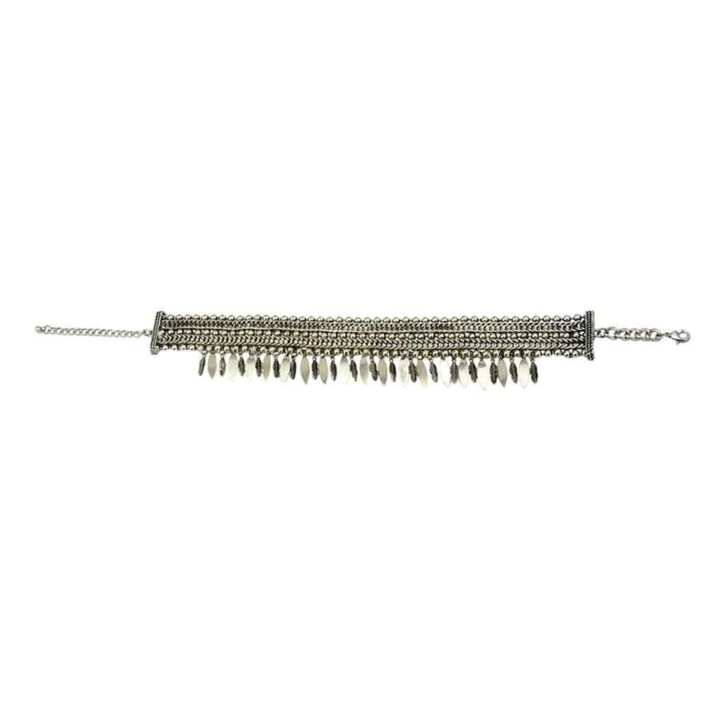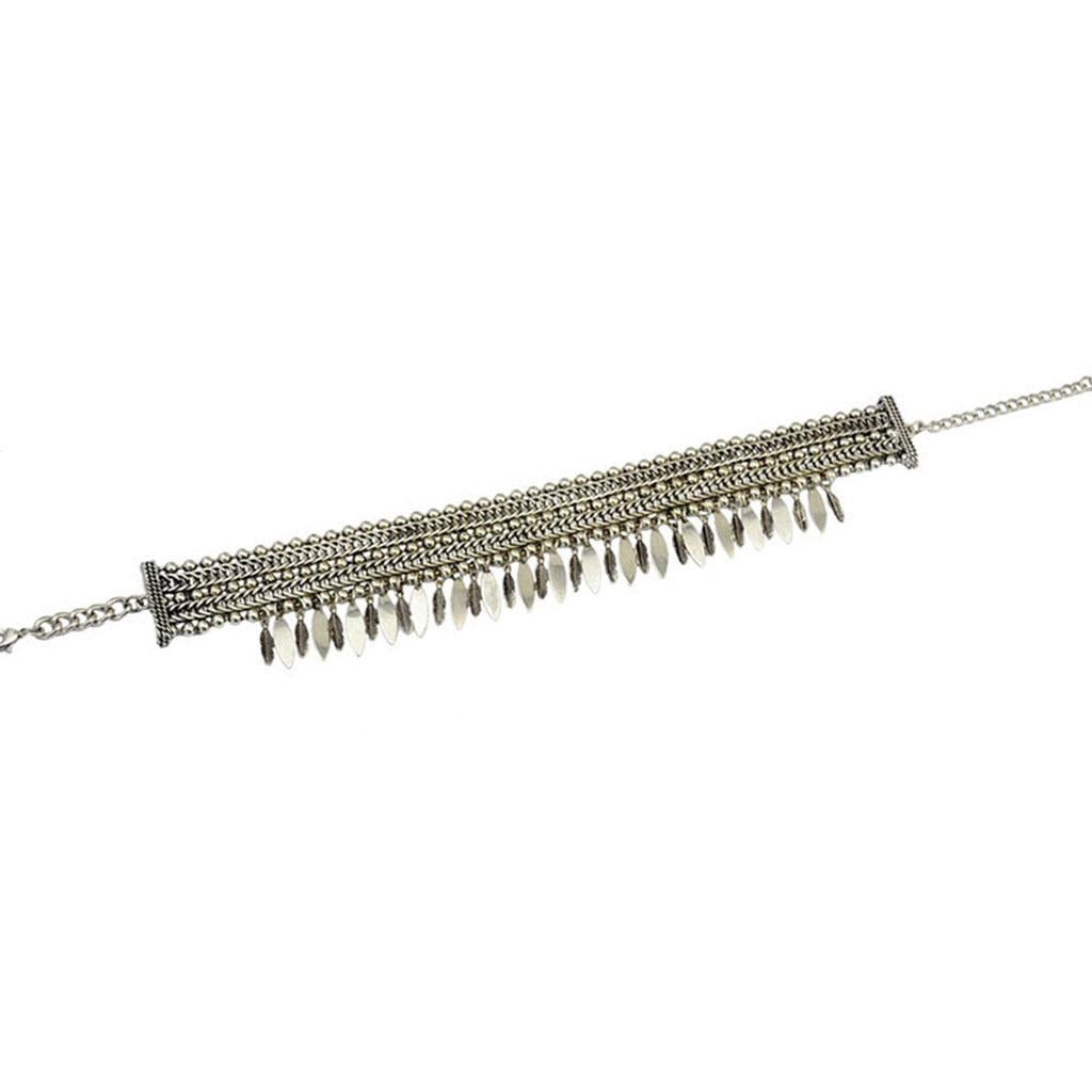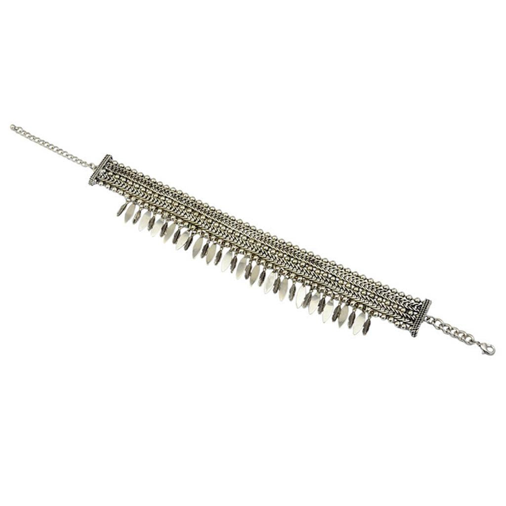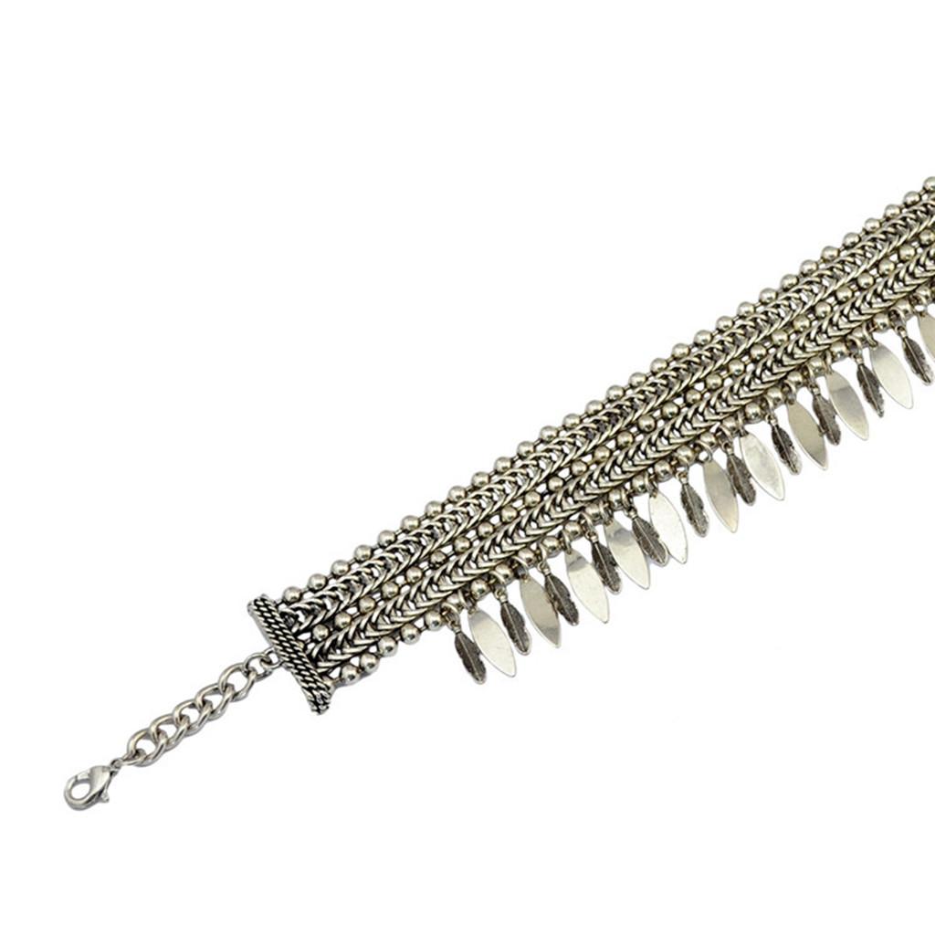 Antique silver tone multilayer tassel leaf necklace with beads fashion jewelry