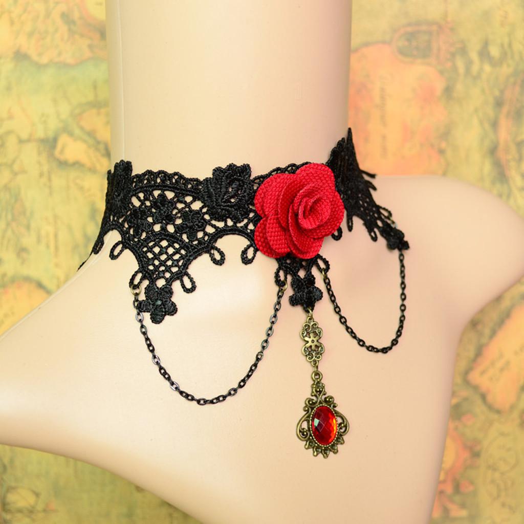 Neck Strap Gothic Collar Lace Big Flower Party Women Short Clavicle Necklace