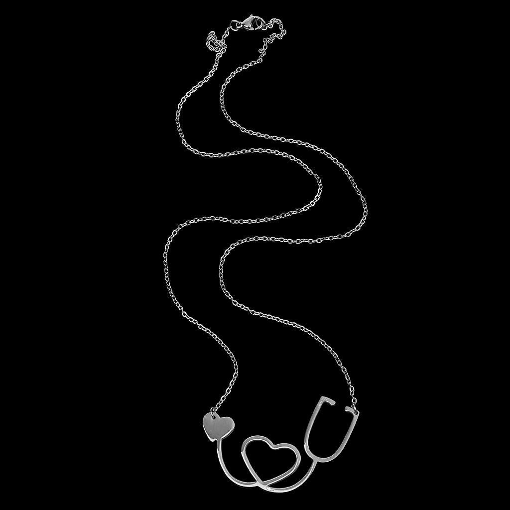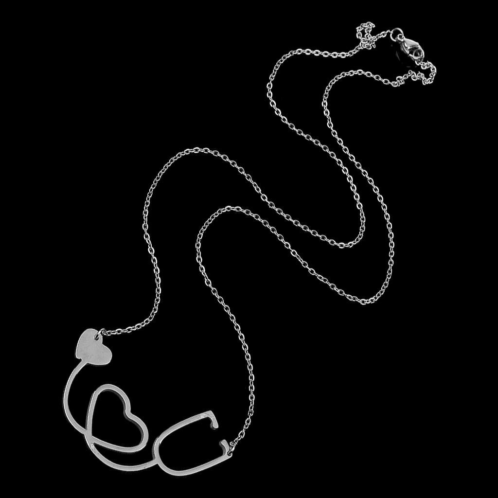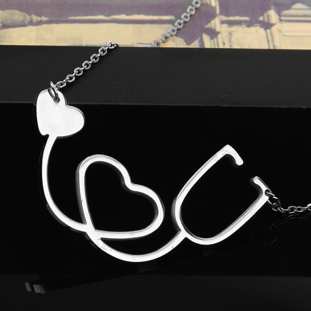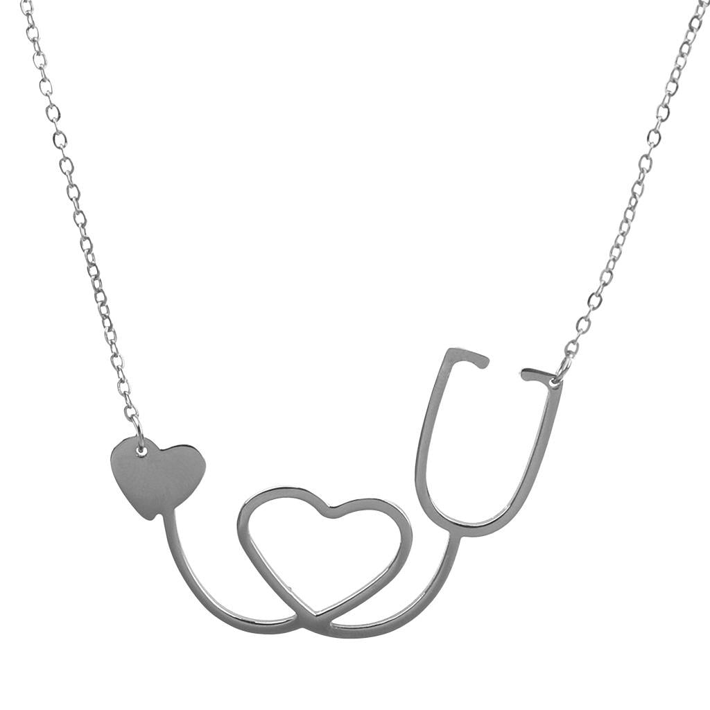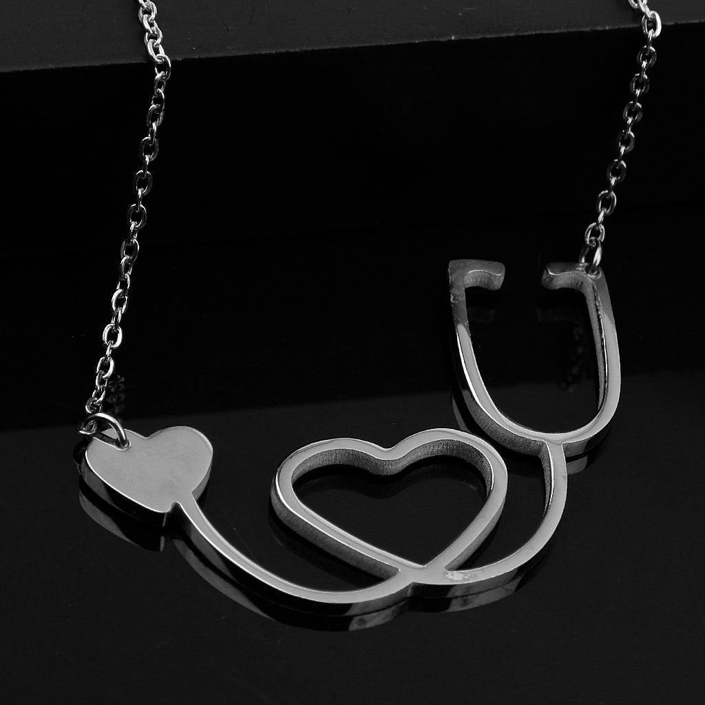 Novelty Love U Stethoscope Design Clavicle Pendant Chain Necklace Silver