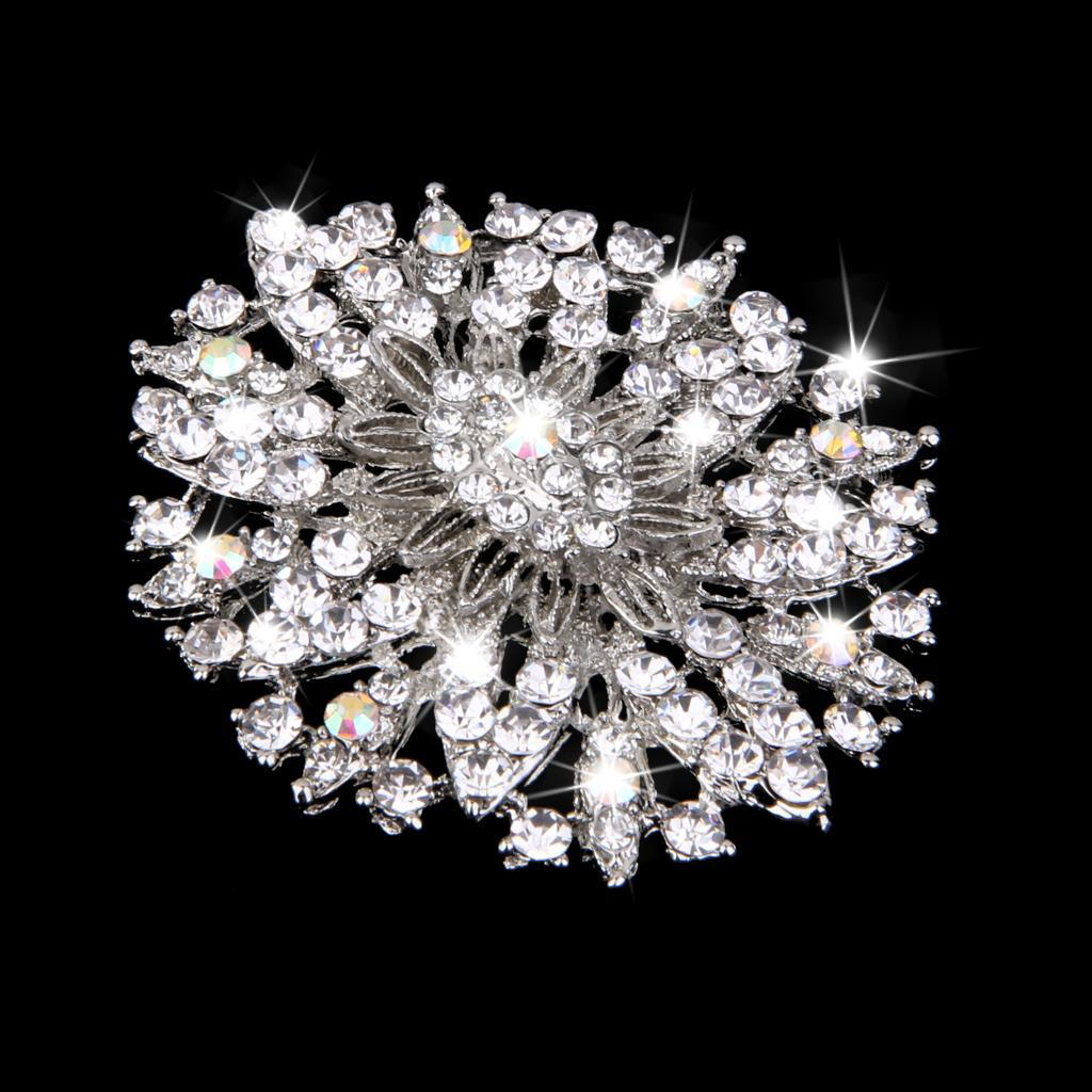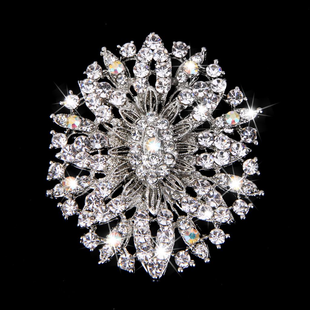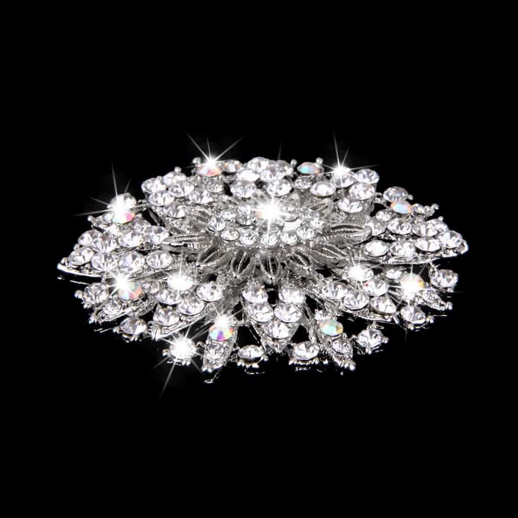Oval Crystal Rhinestone Flower Bridal Wedding Brooch