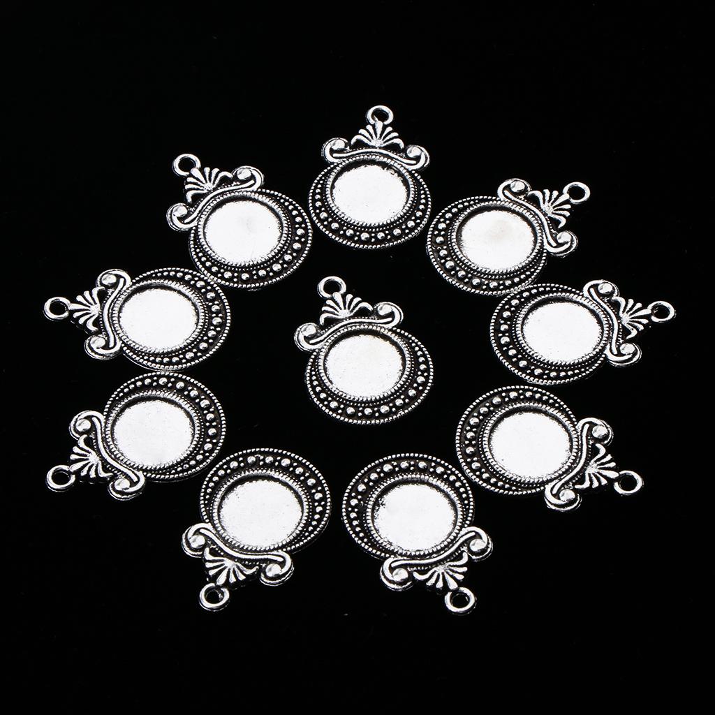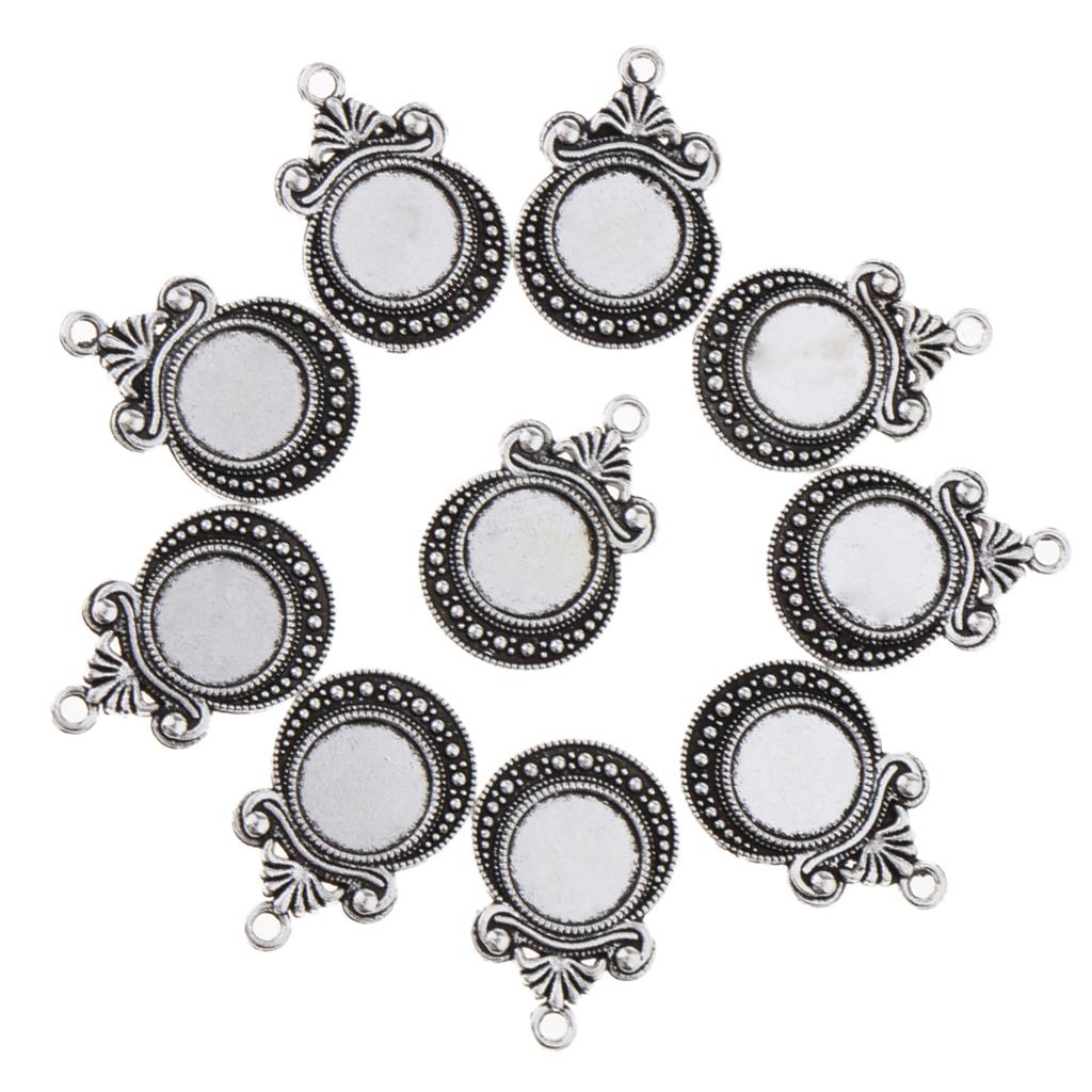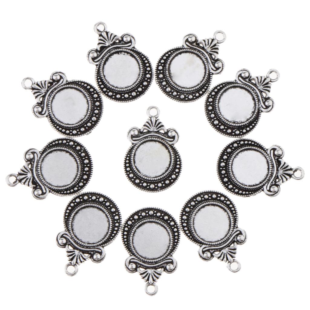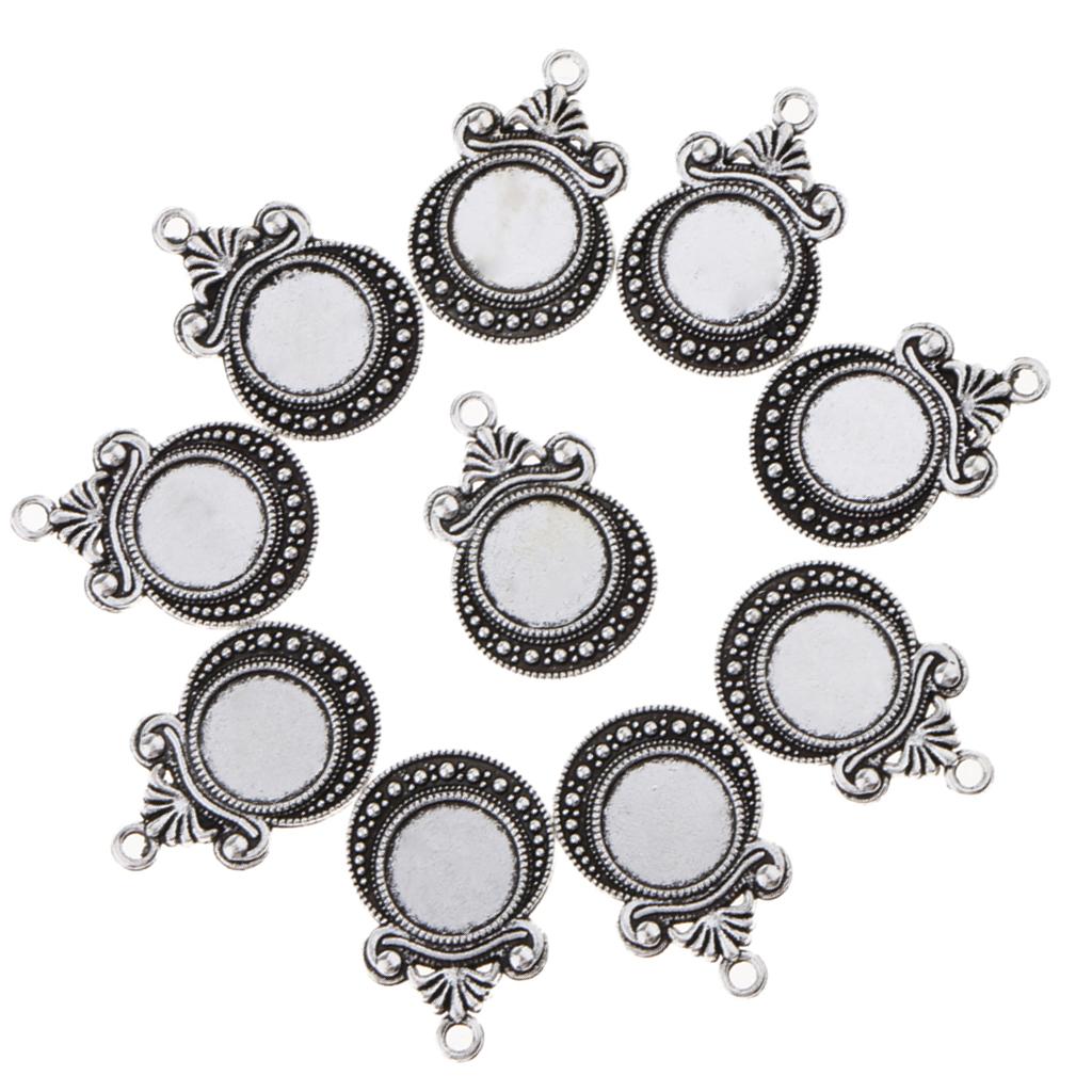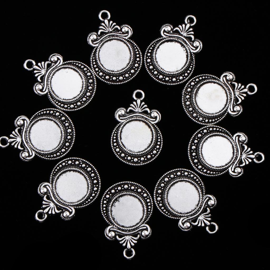 10 pieces of antique metallic cabochon bezel pendants, vintage floral filigree design, Tibetan silver tone