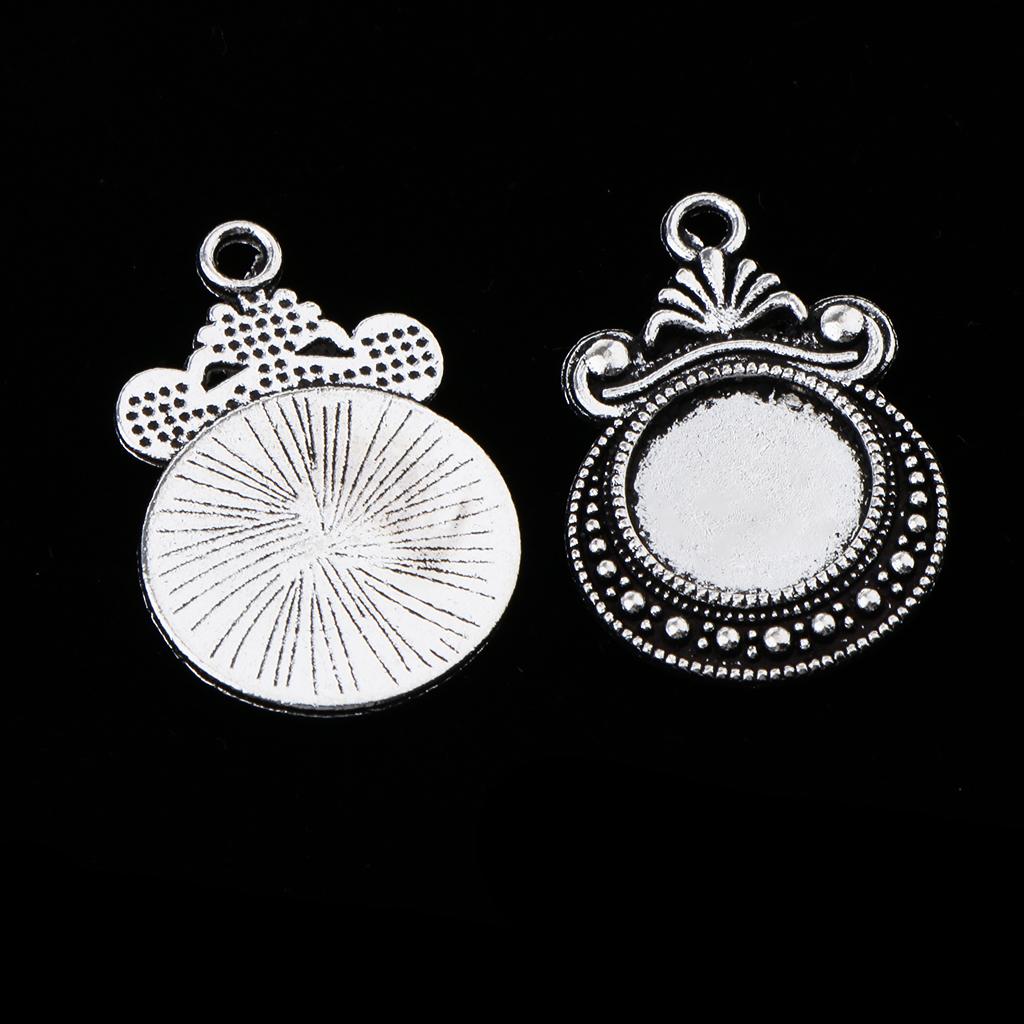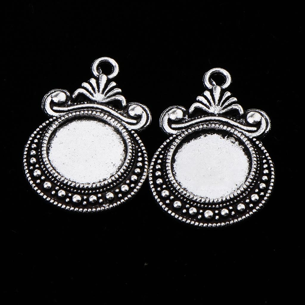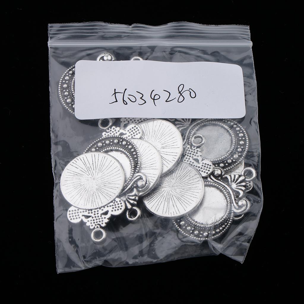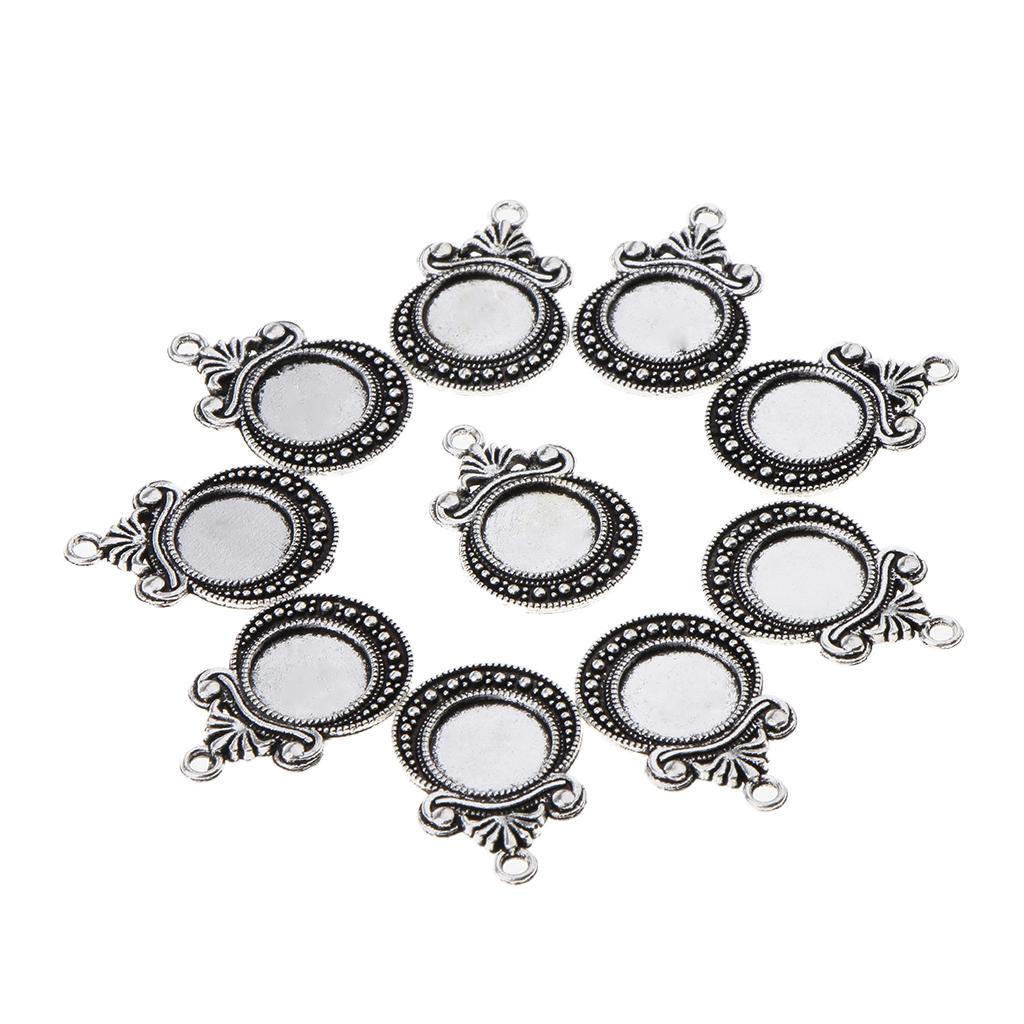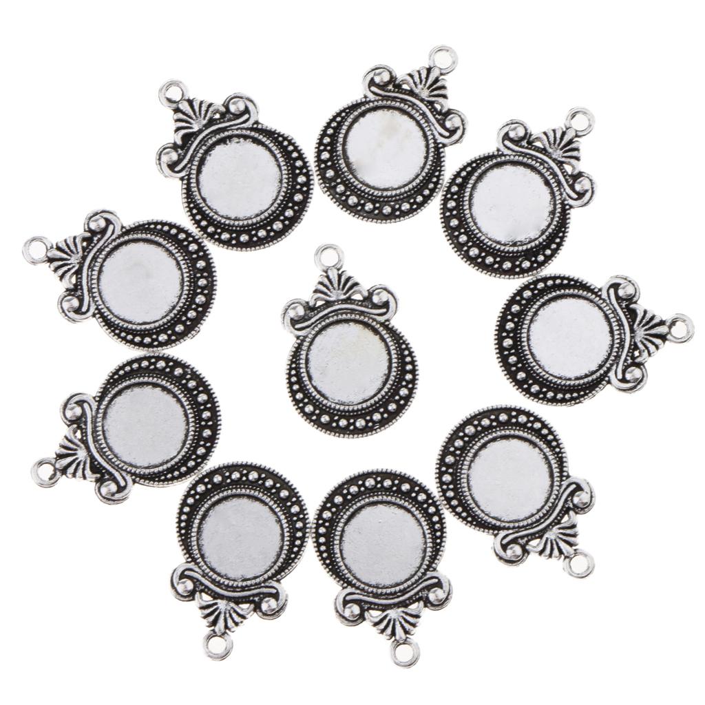 10 pieces of antique metallic cabochon bezel pendants, vintage floral filigree design, Tibetan silver tone