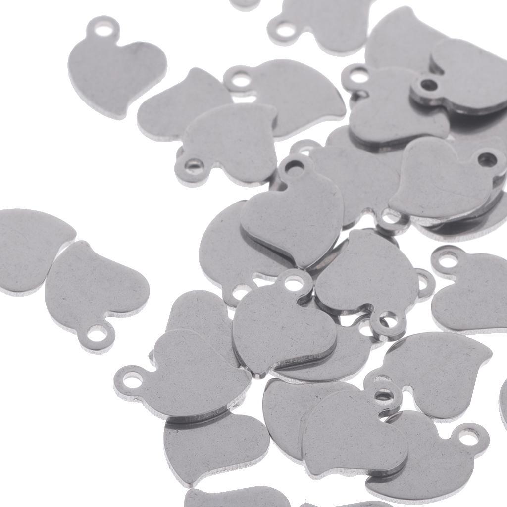 Pack of 50 Silver Love Heart Shape 10x7mm Stainless DIY Jewelry Pendant Handmade Necklace bracelet Earrings DIY Accessories
