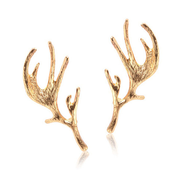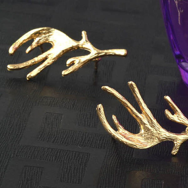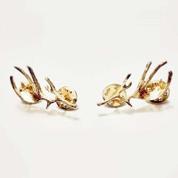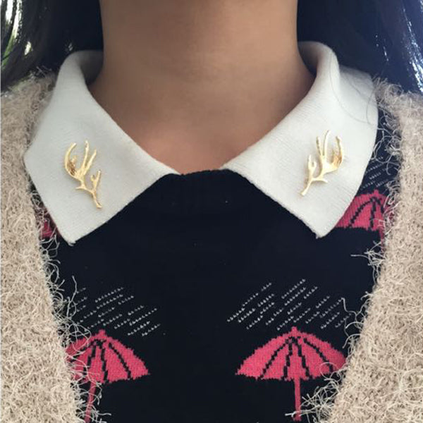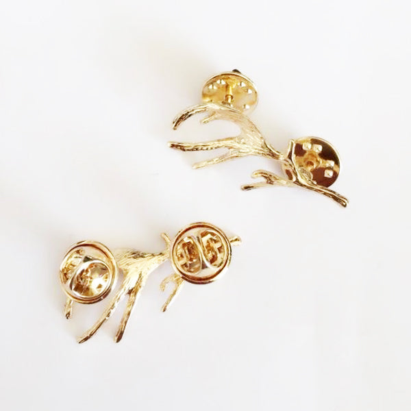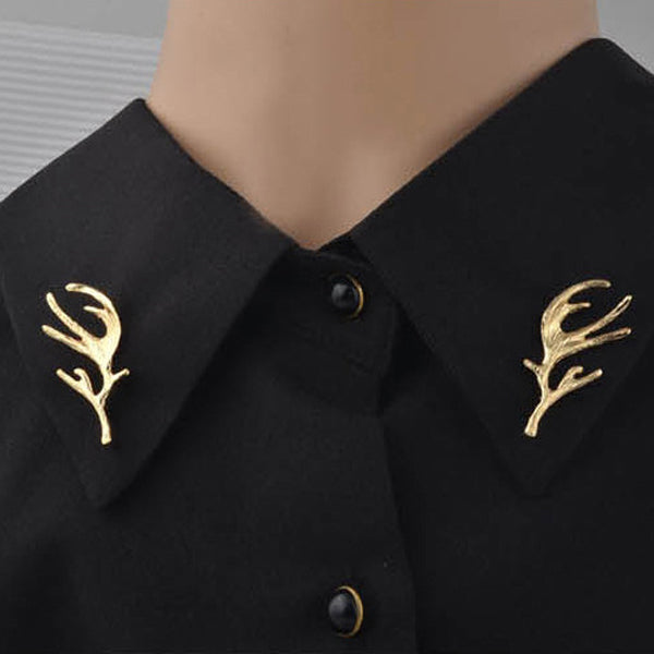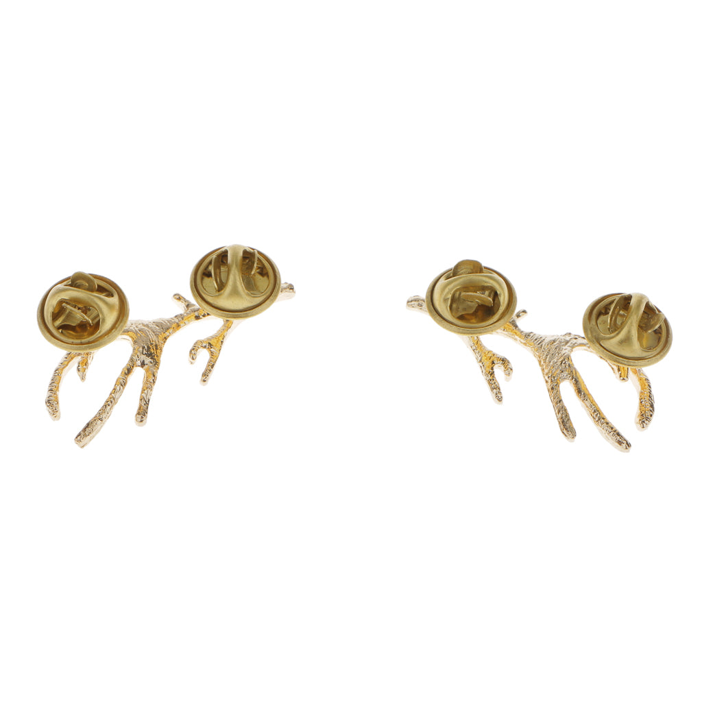 Pair Of Antique Punk Style Reindeer Horn Pattern Brooch Collar Pin Clamp Wedding Christmas Prom Party Supplies Gold