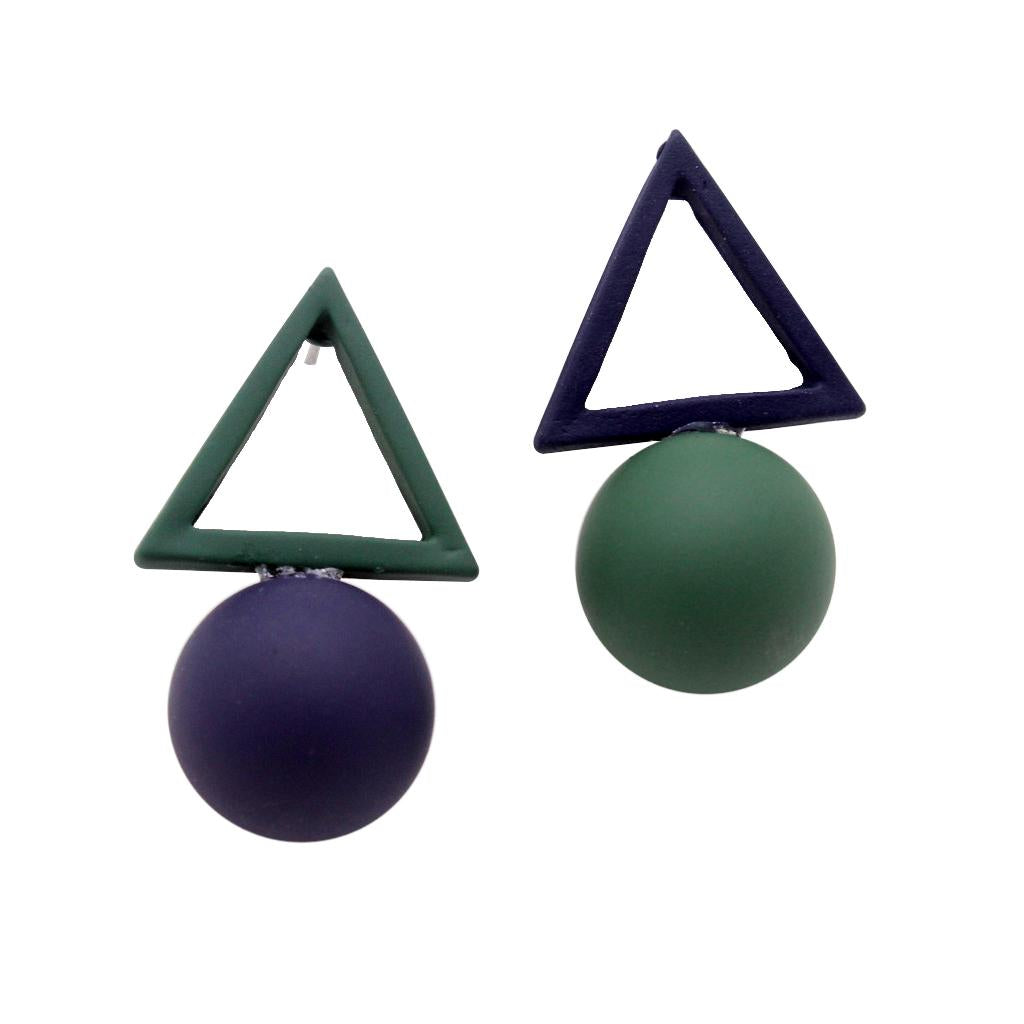 Novelty personality shape,triangle and ball stud earrings