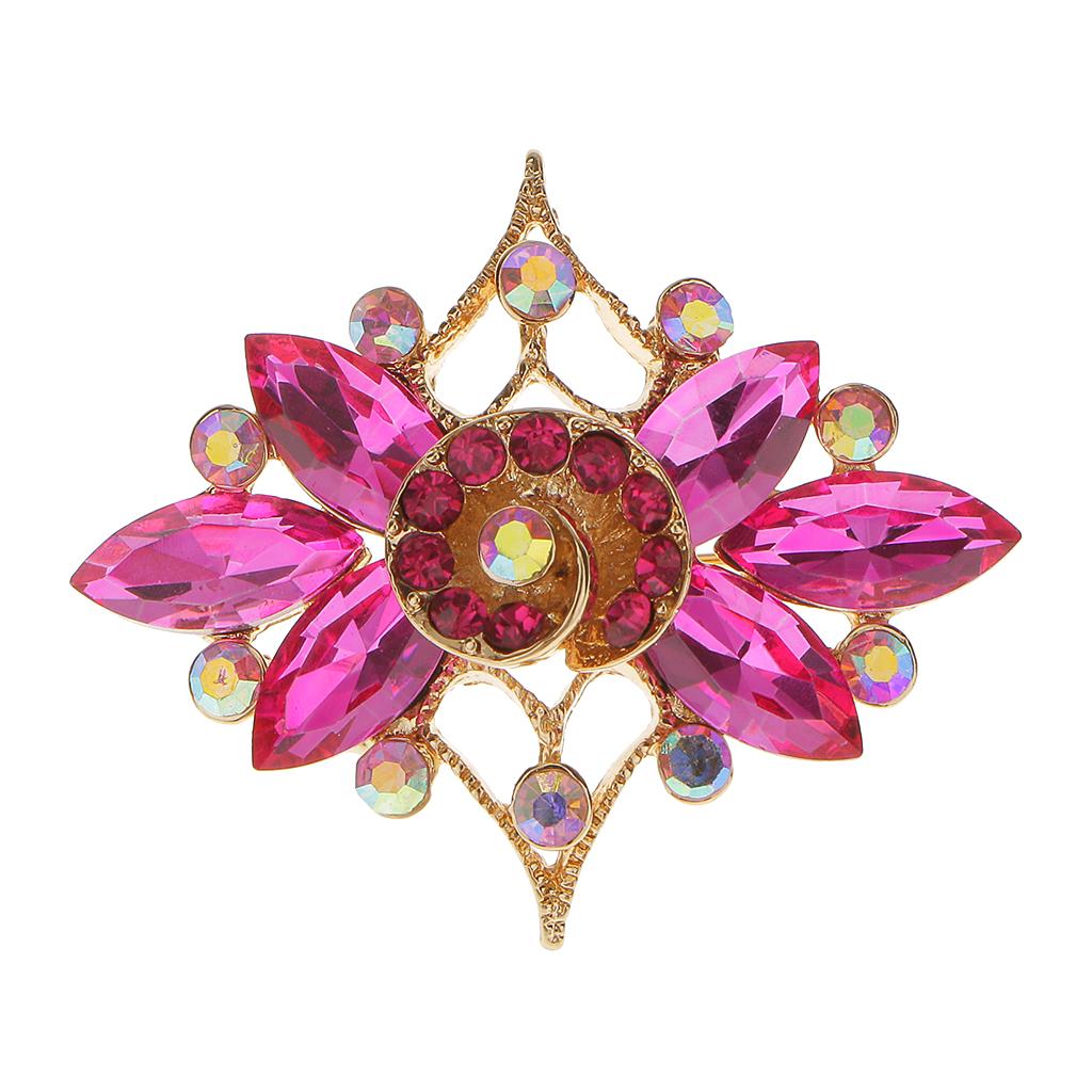 Pink Rose Flower Crystal Rhinestone Diamante Brooch Pin Wedding Bridal Gift