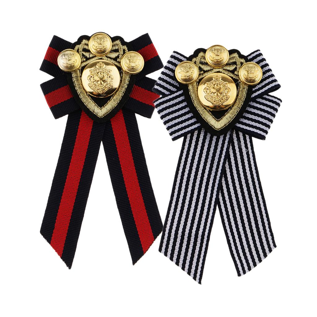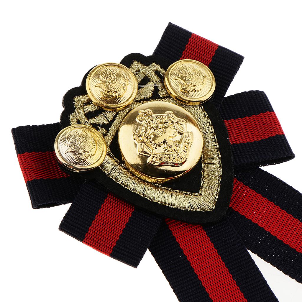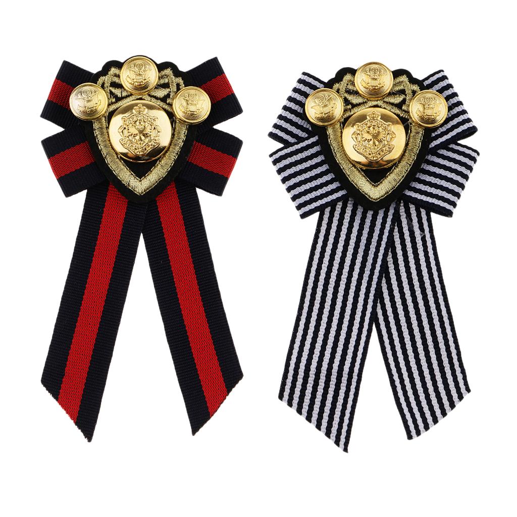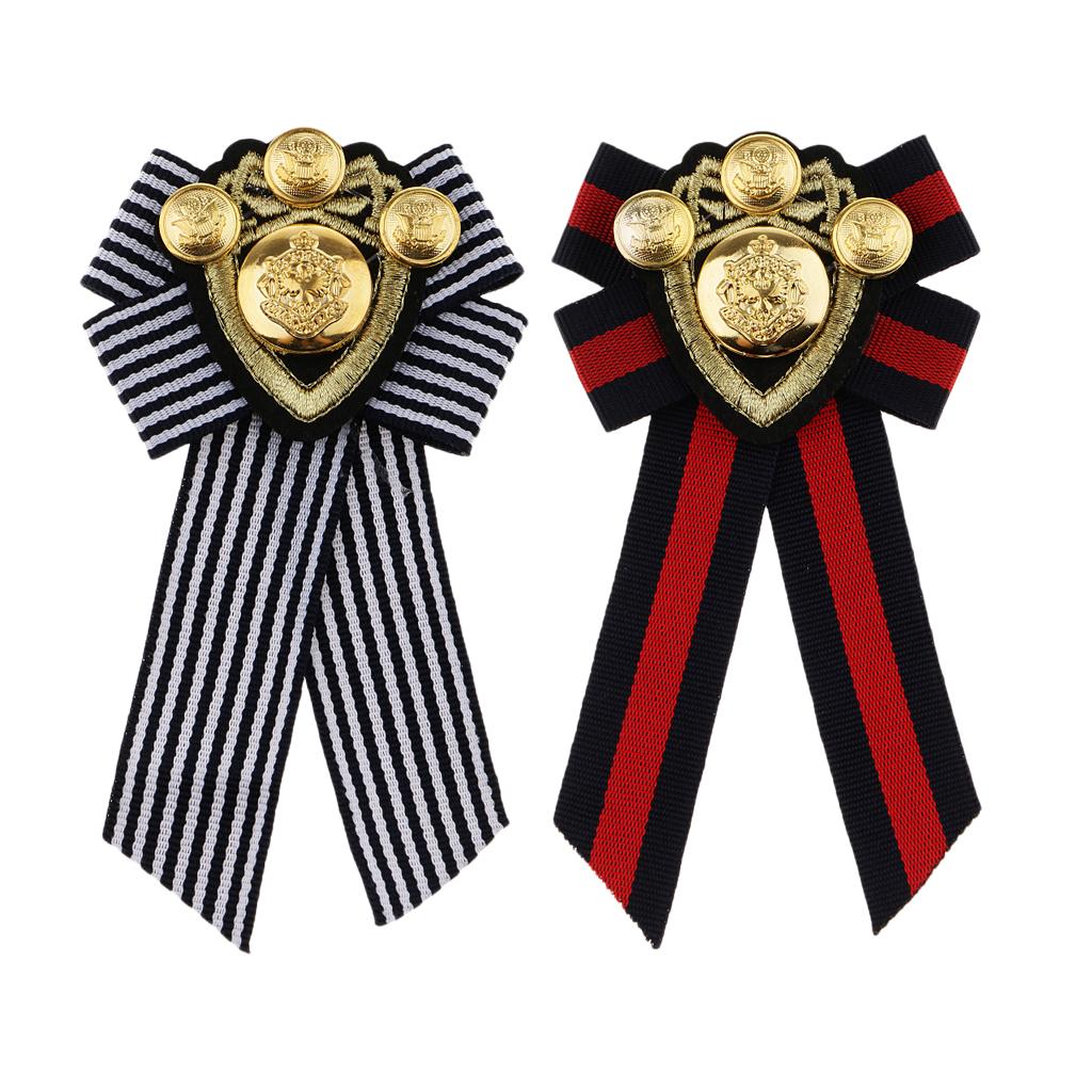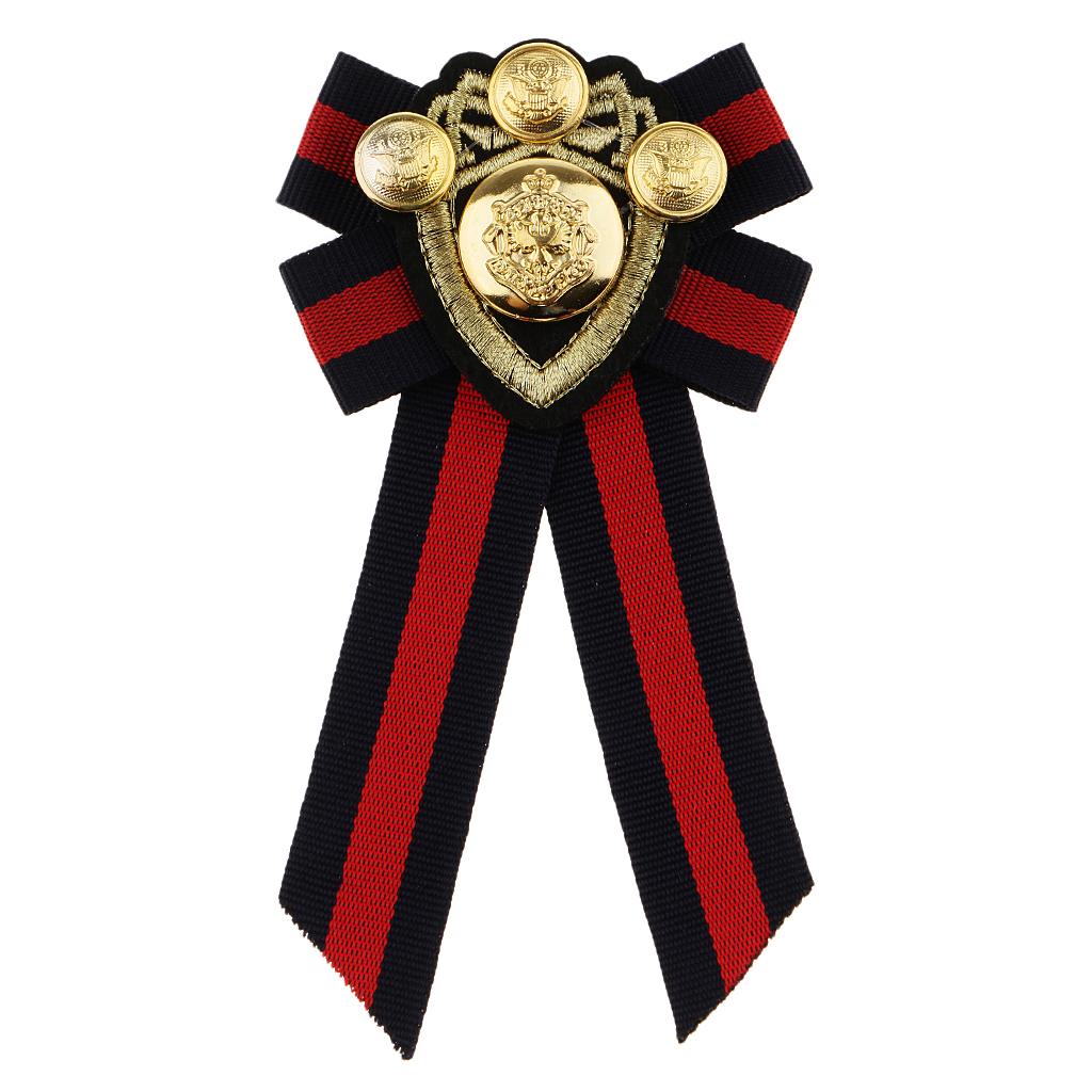 Pre-tied Bowknot Brooch Fabric Bow Tie Men Wome British Badge Red Stripe