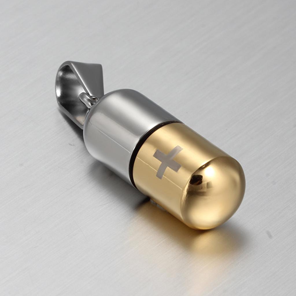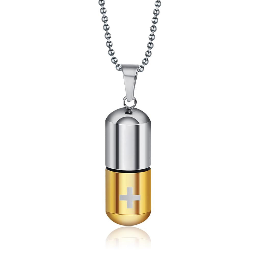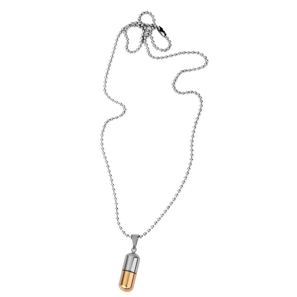 Punk Goth Stainless Steel Detachable Pill Vial Dangle Pendant Necklace Gold