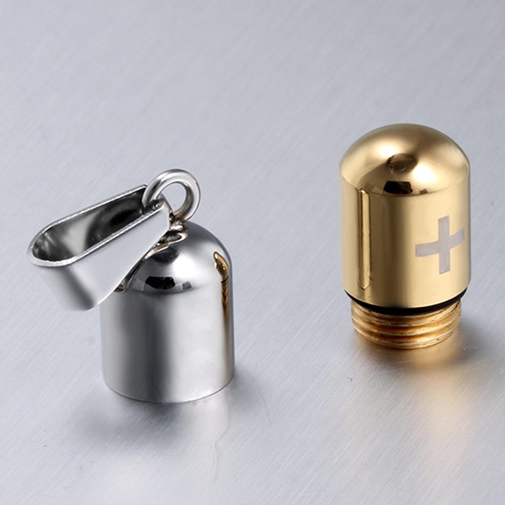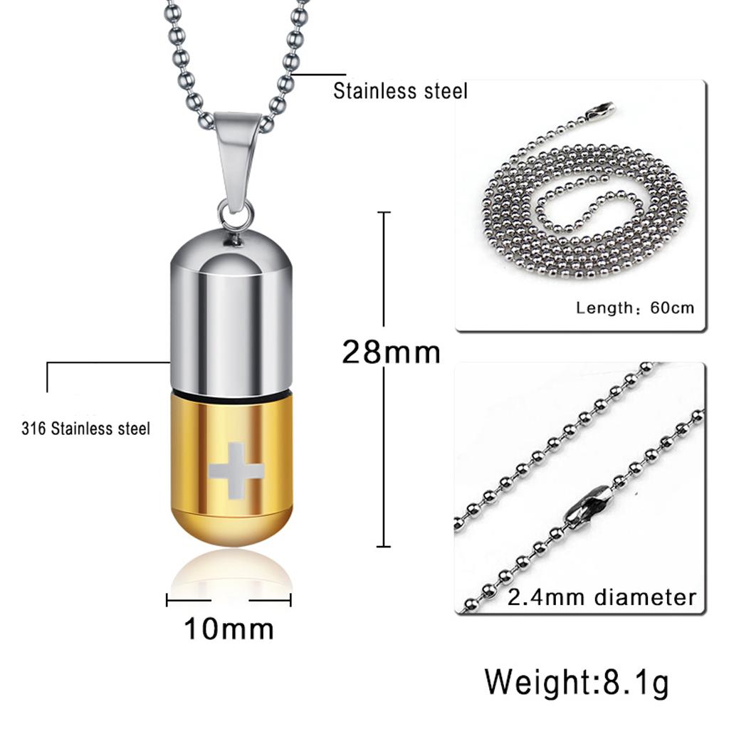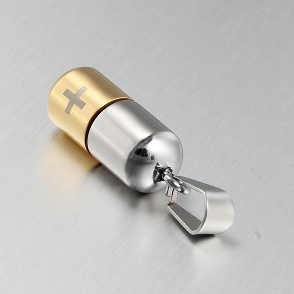Punk Goth Stainless Steel Detachable Pill Vial Dangle Pendant Necklace Gold