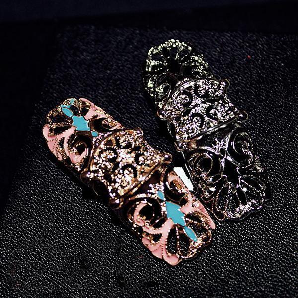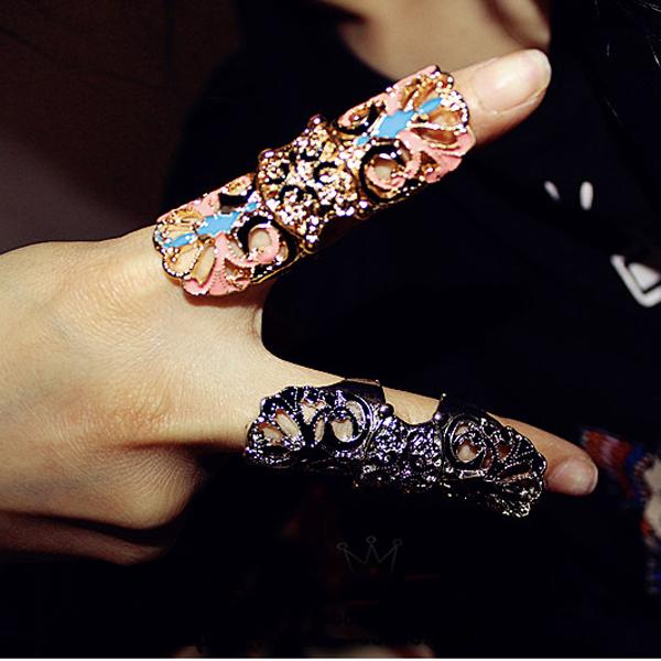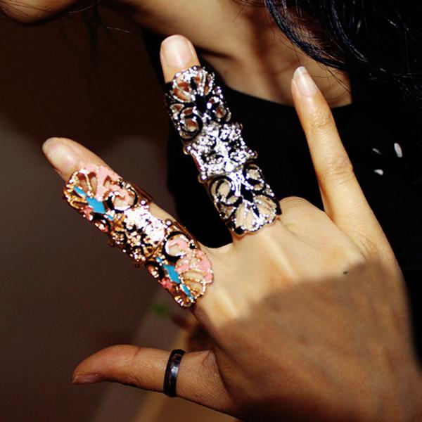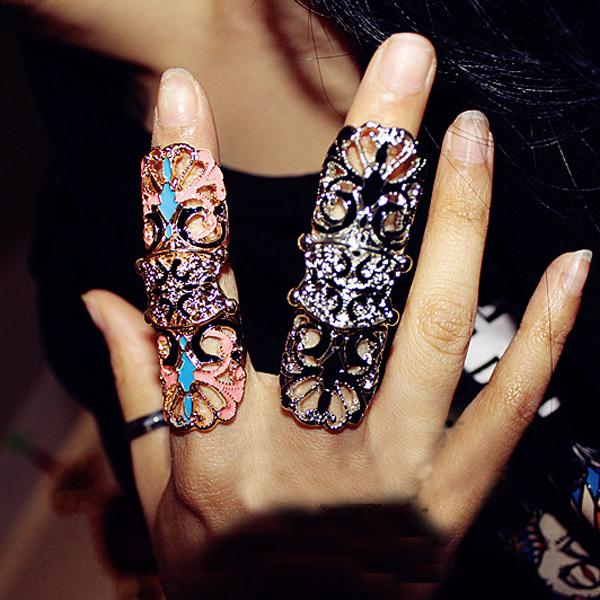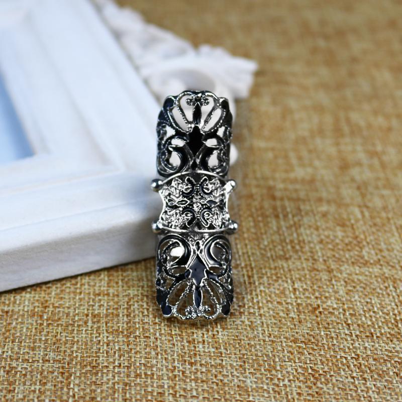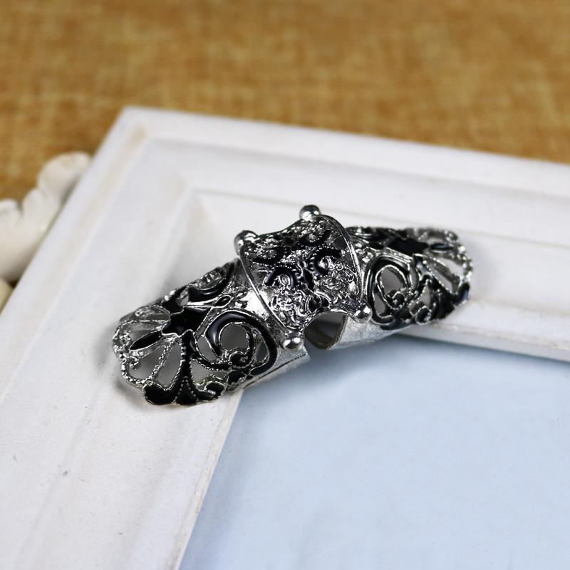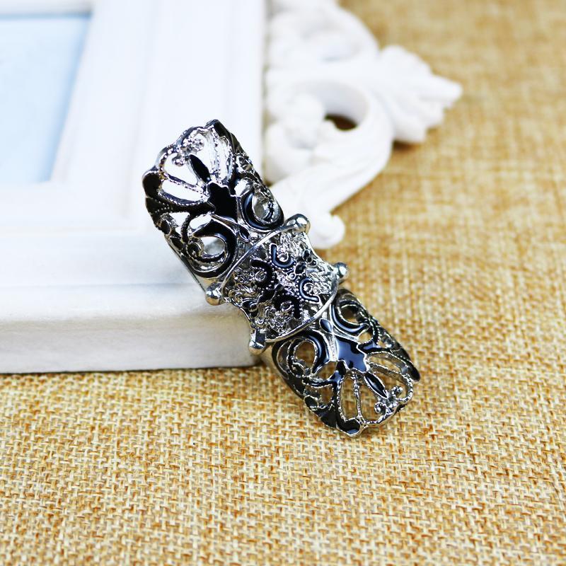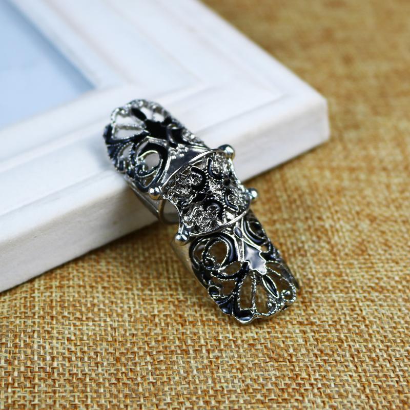 Punk Rock Hollow Flower Armor Knuckle Hinged Long Full Finger Ring Jewelry