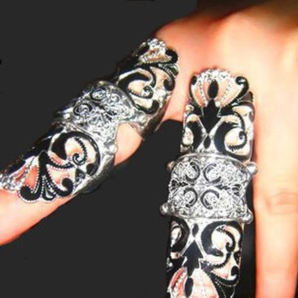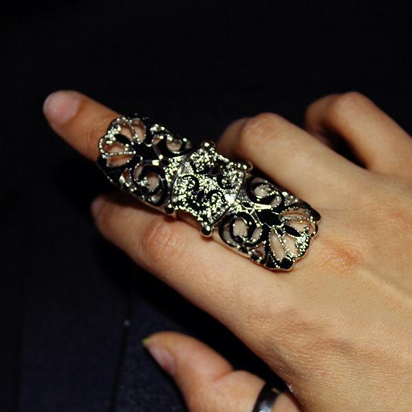 • Hollow Armor Knuckle Hinged Long Finger Ring.