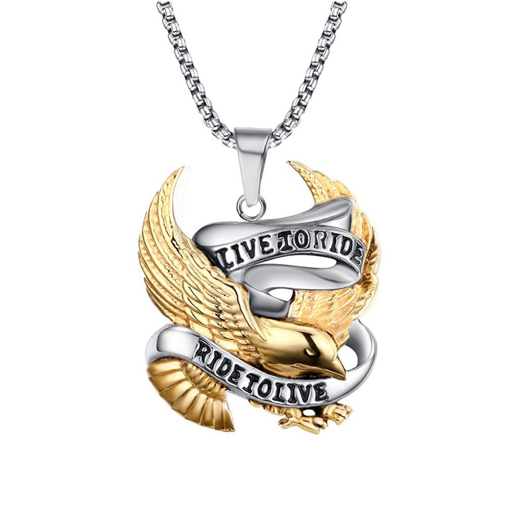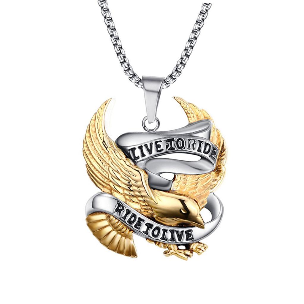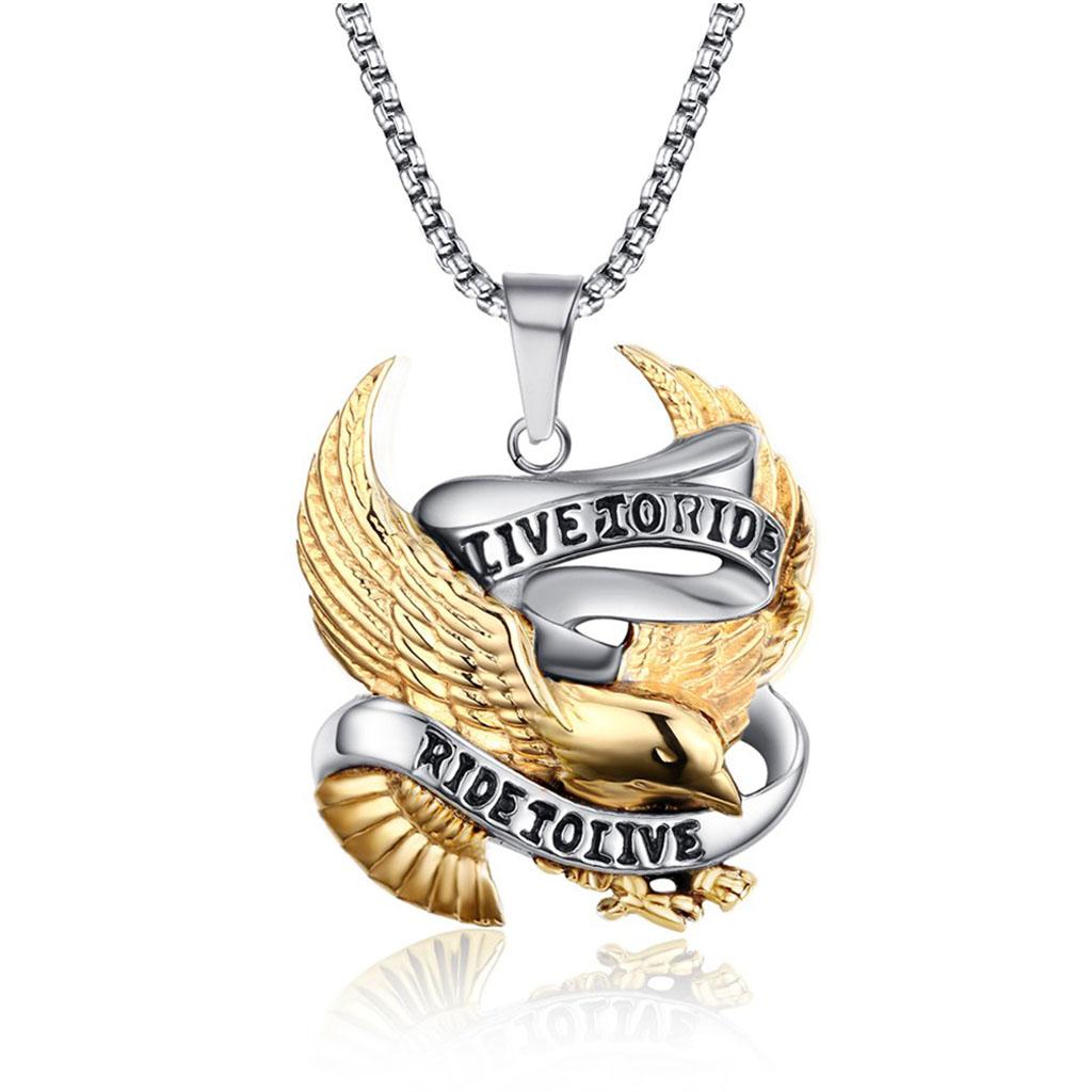 Punk Silver Gold Stainless Steel Eagle Pendant Necklace with 60cm Chain