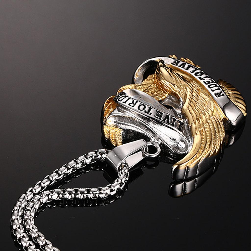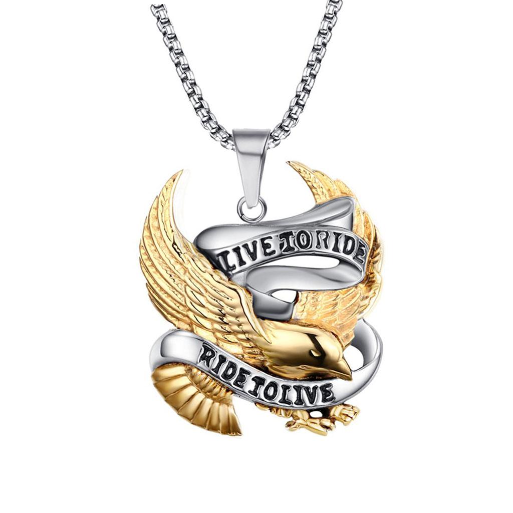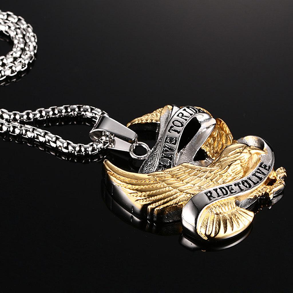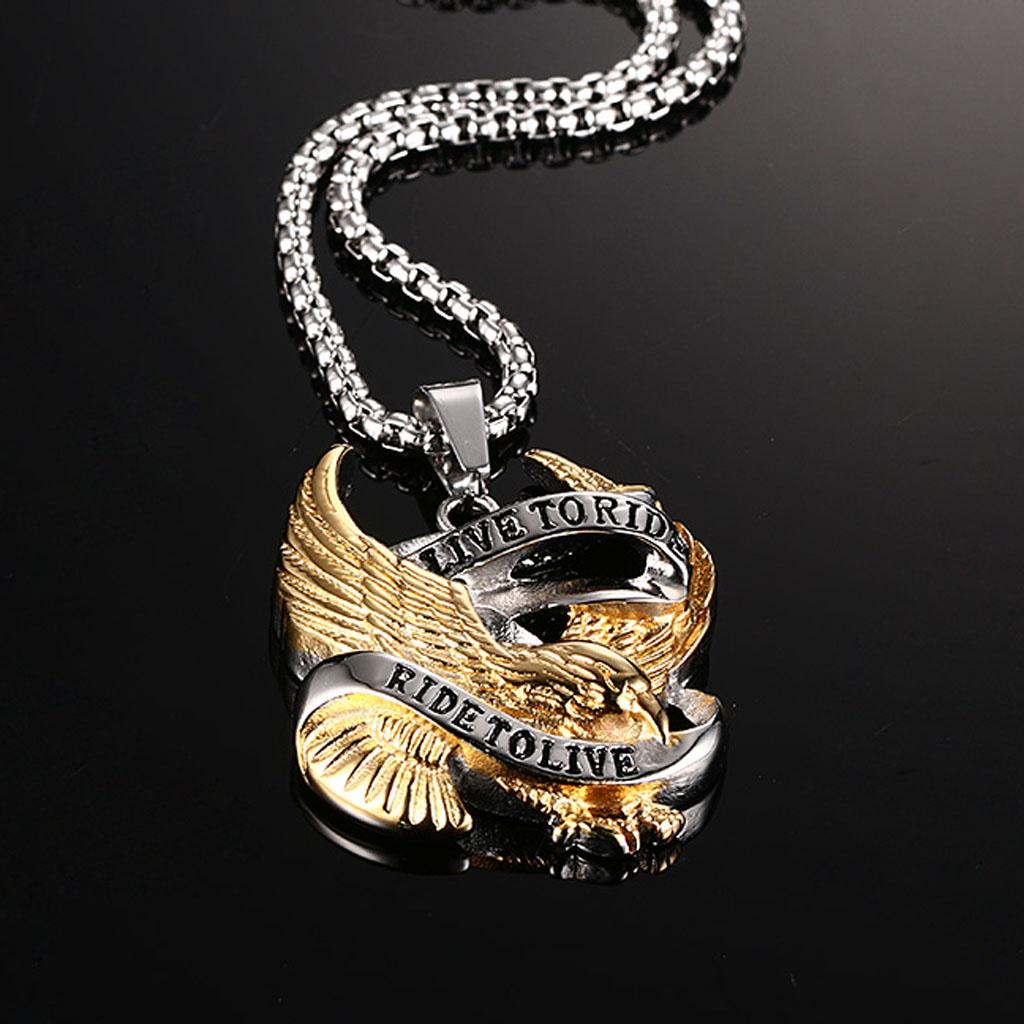 Punk Silver Gold Stainless Steel Eagle Pendant Necklace with 60cm Chain