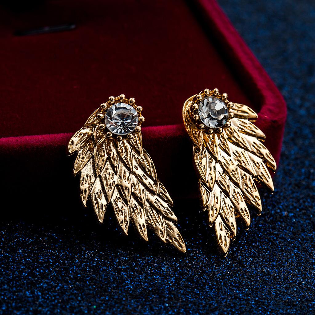 Punk Women's Cool Jewelry Angel Wings Rhinestone Drop Stud Earrings