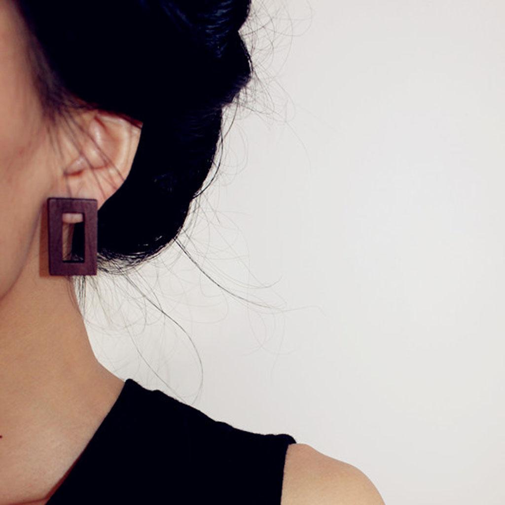 • The rectangle hollow wood stud earrings make you more charming