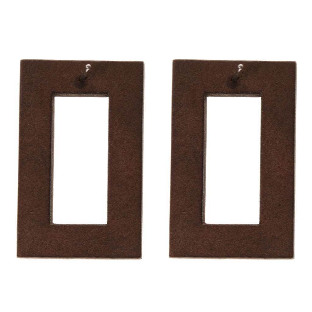 Rectangle Hollow Design Plain Design Brown Wooden Women Earrings Jewelry