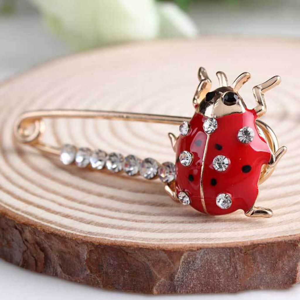 Red Enamel Crystal Insect Ladybugs Brooch Lapel Pins Large Safety Pin Corsage