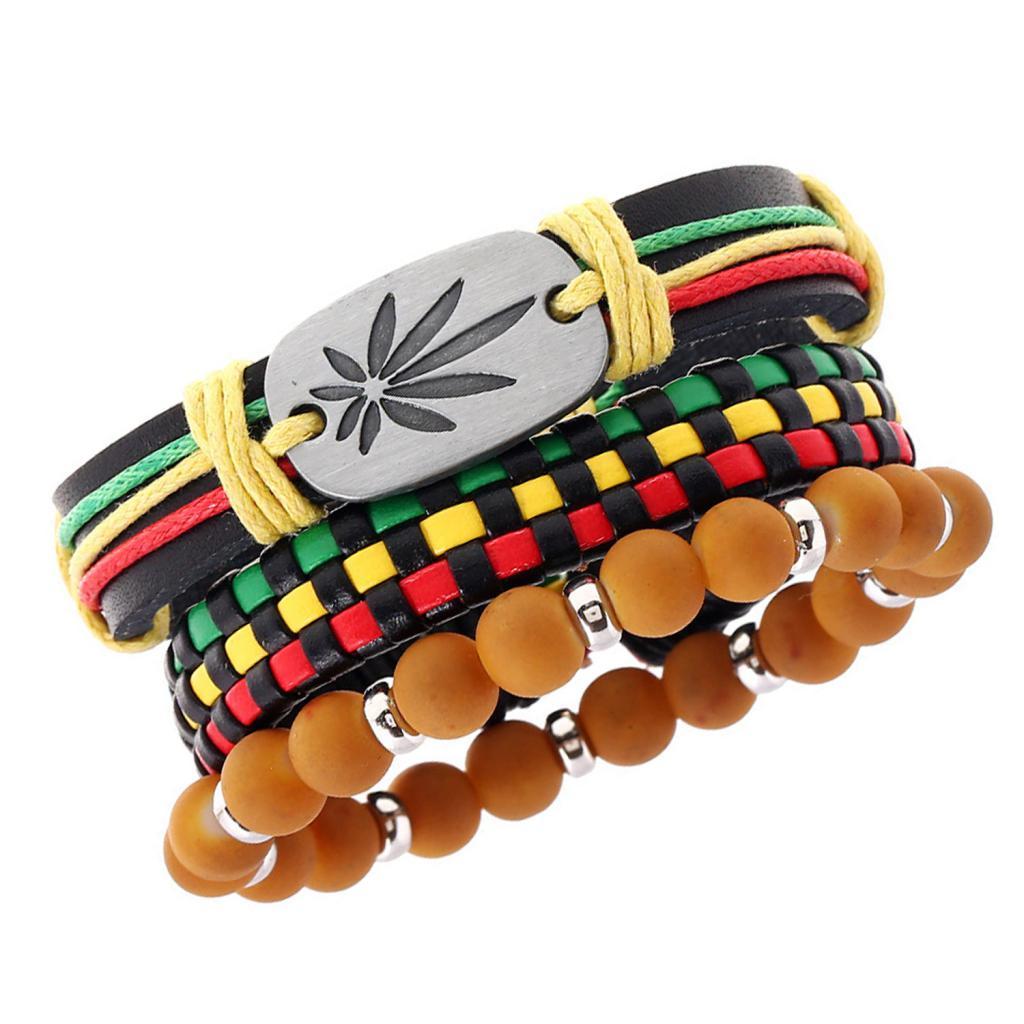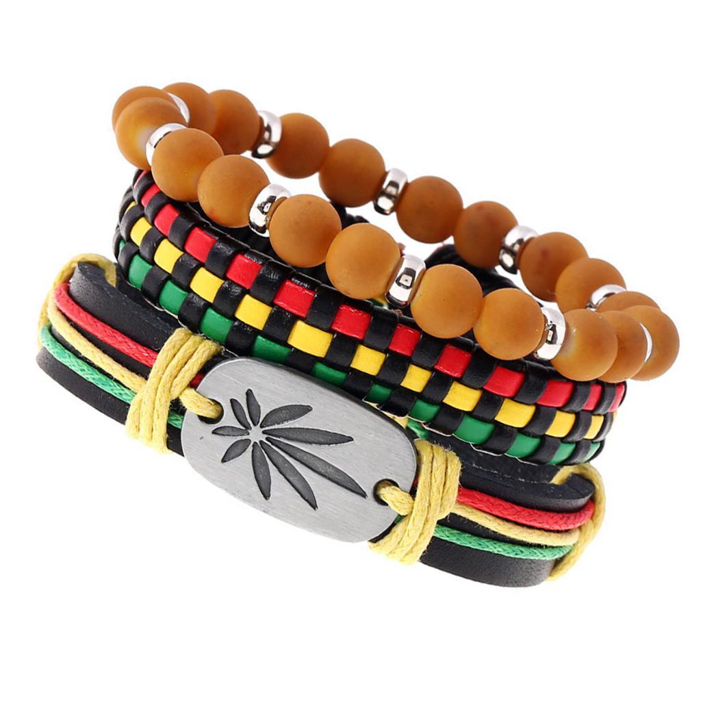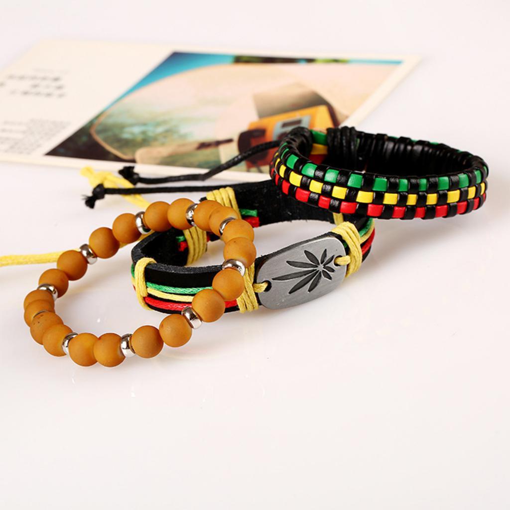 Colorful Bracelets,1 set = 1 Piece Beads Bracelet+1 Piece PU leather Weave Bracelet+1 Piece wax Weave rope