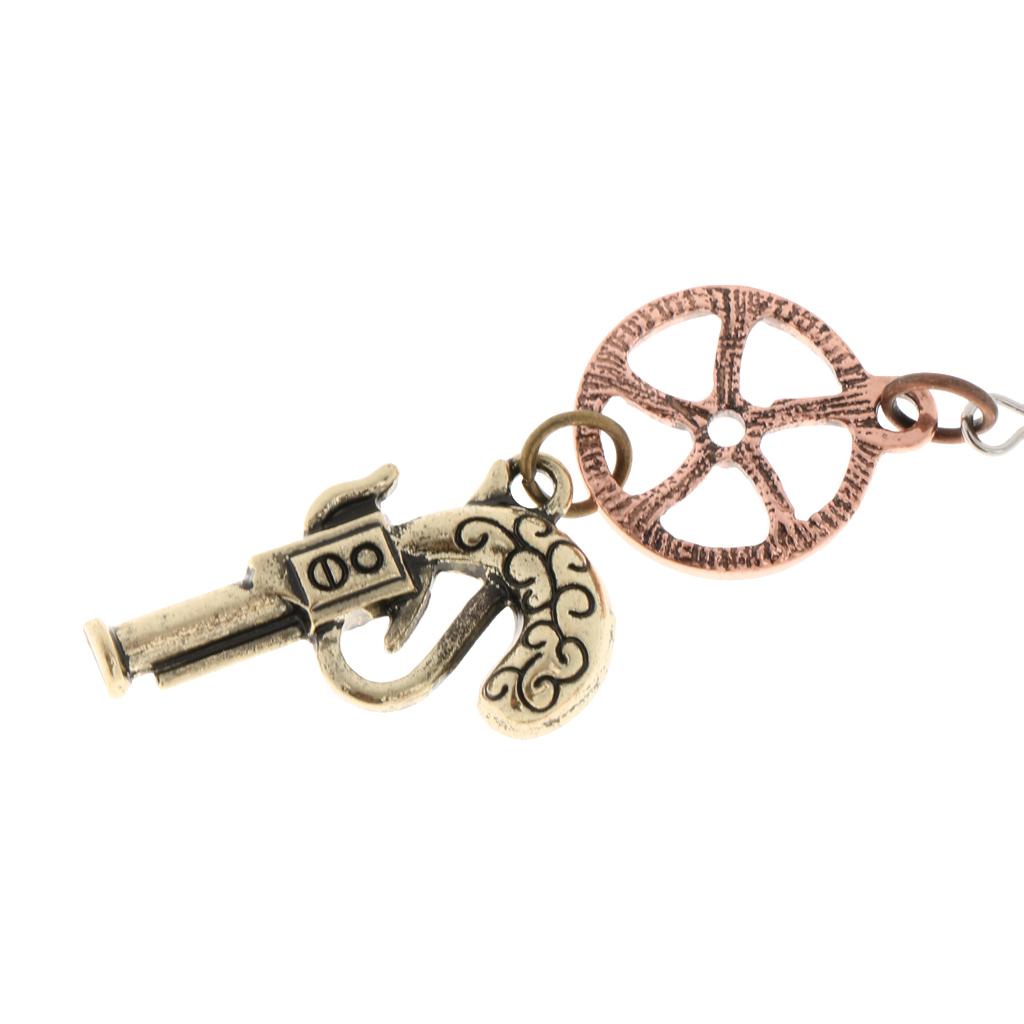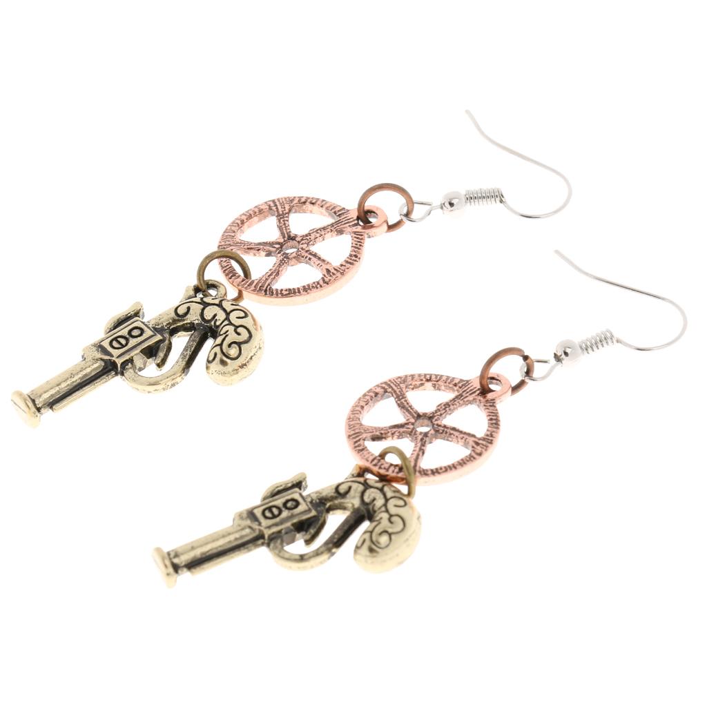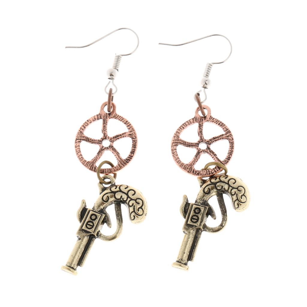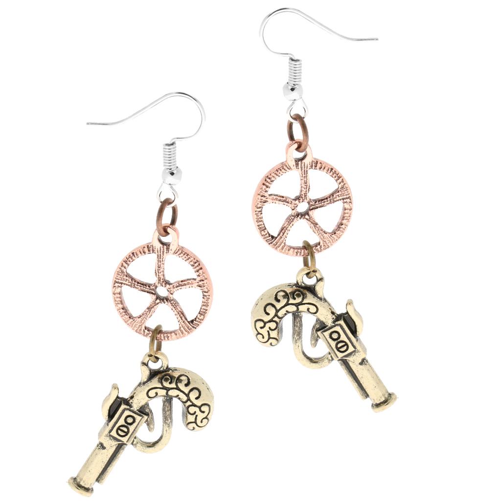 Retro Revolver Gun Gear Wheel Earrings Drop Steampunk Jewelry Antique Bronze