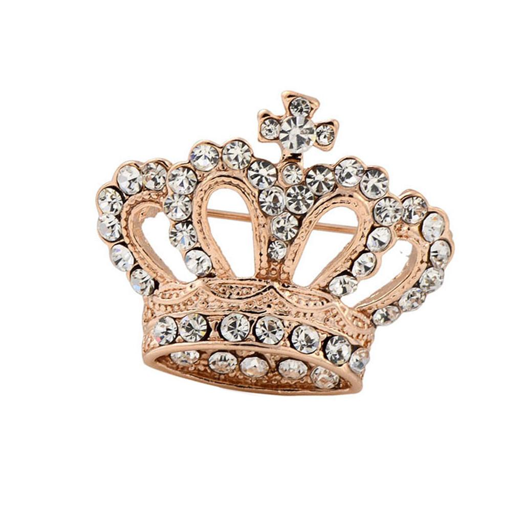 Rhinestone Bohemian Style Crown Design Brooch Pin Wedding Engagement Prom Xmas Birthday Party Gift Gold