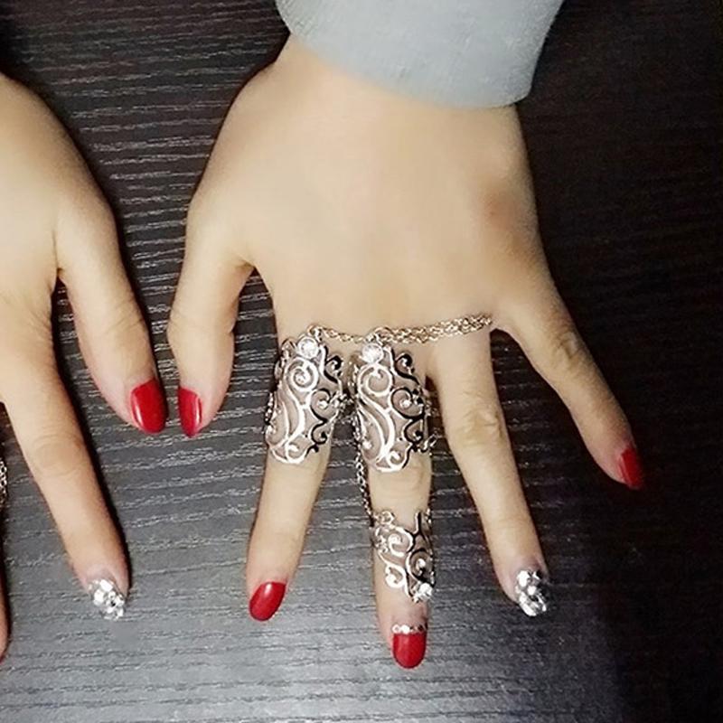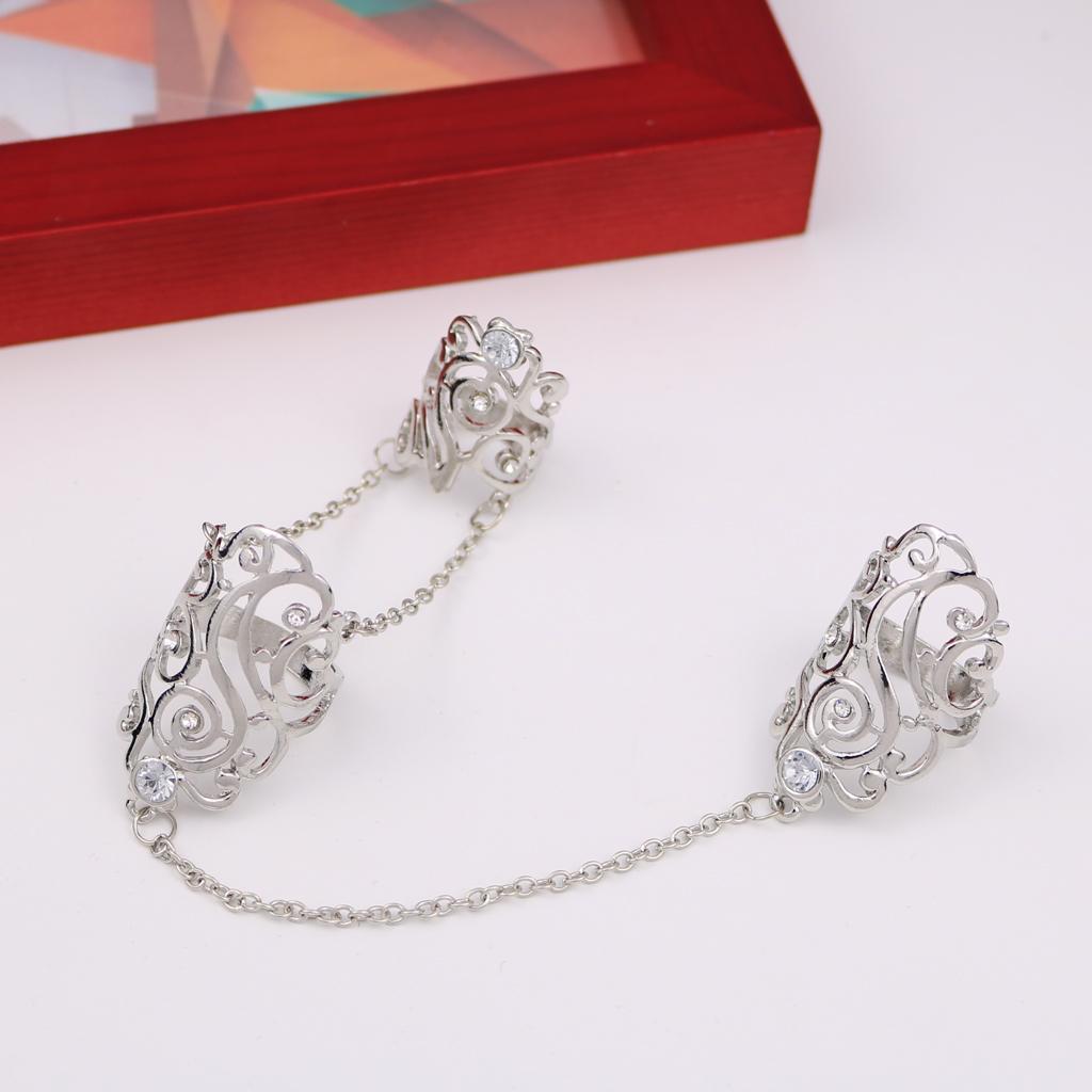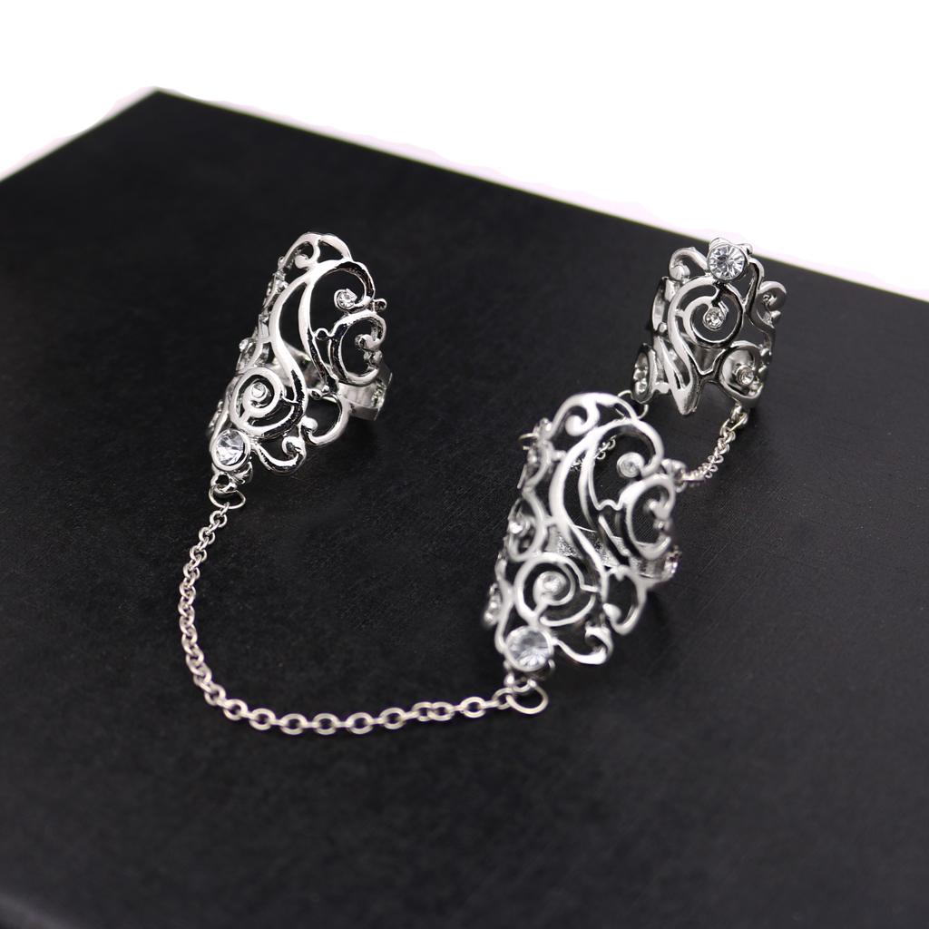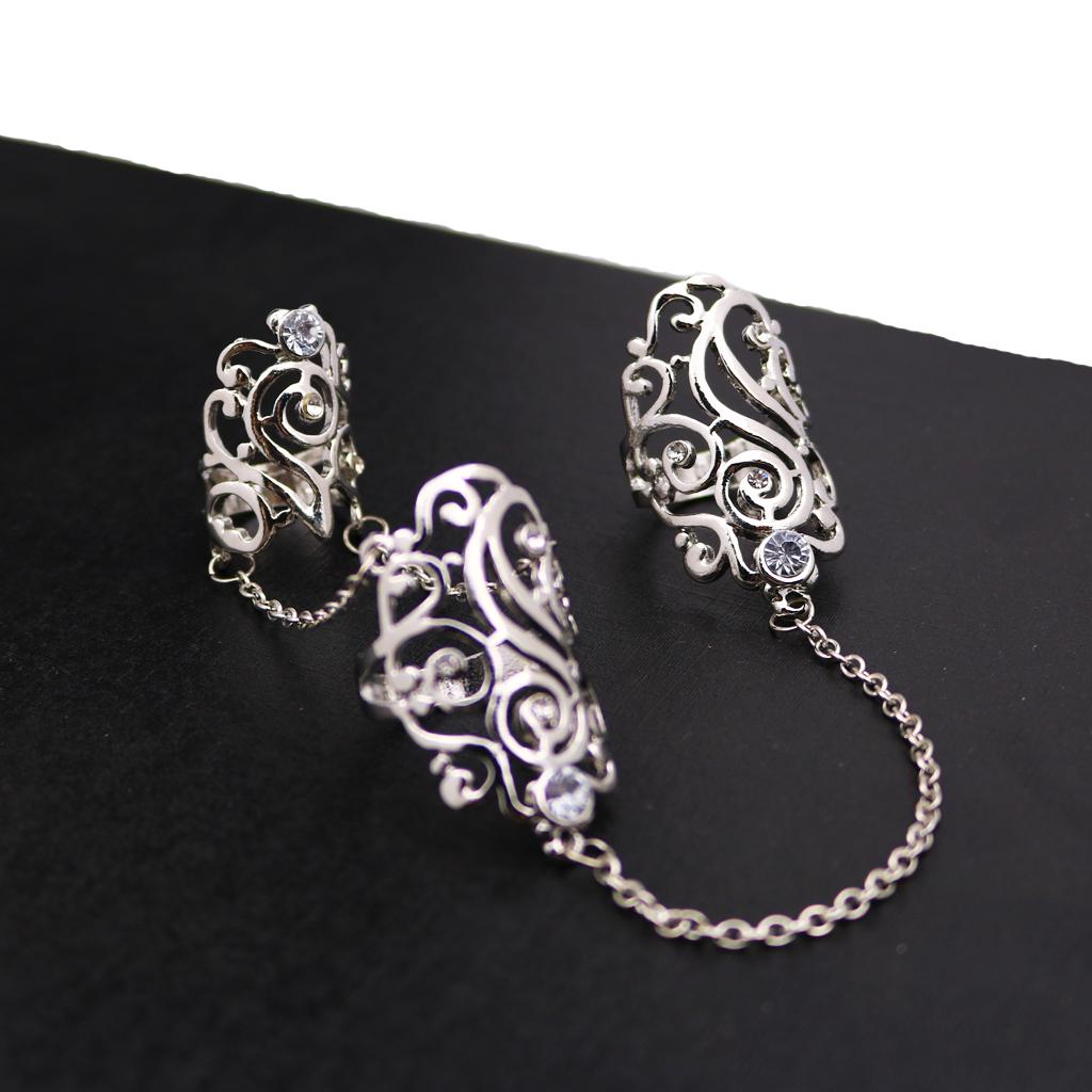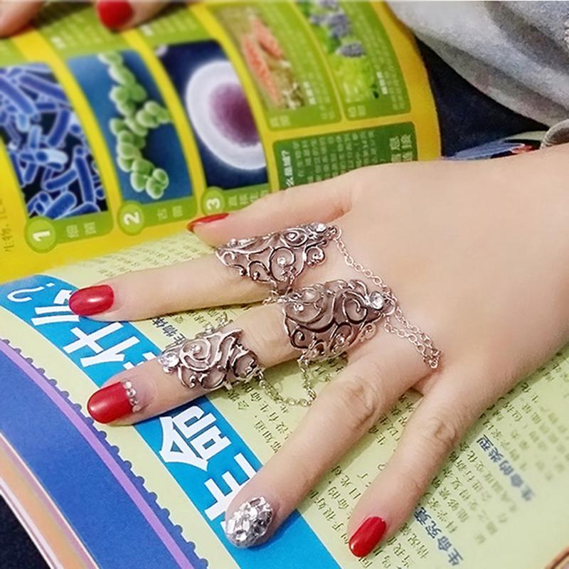 Rhinestone Full Finger Joint Knuckle Armor Hollow Out Finger Ring Silver