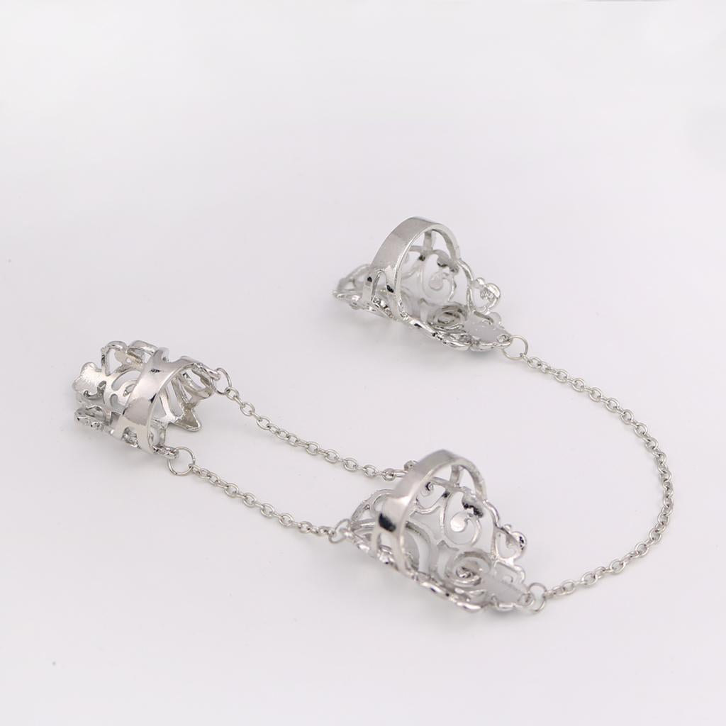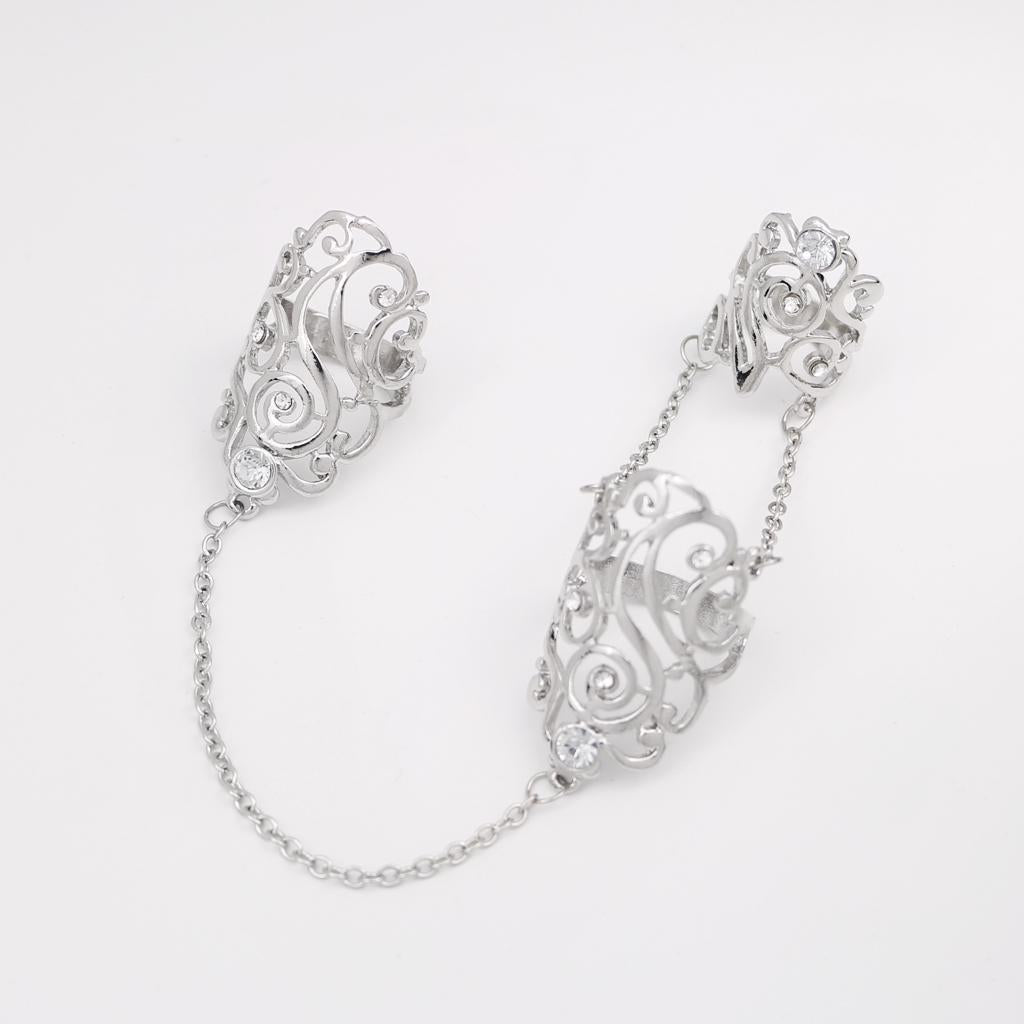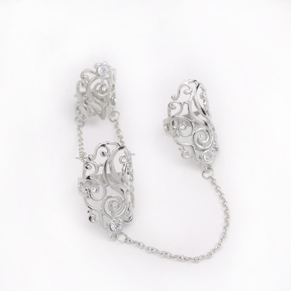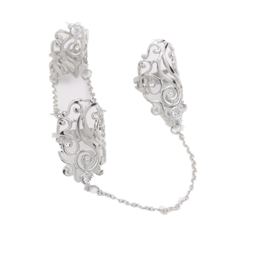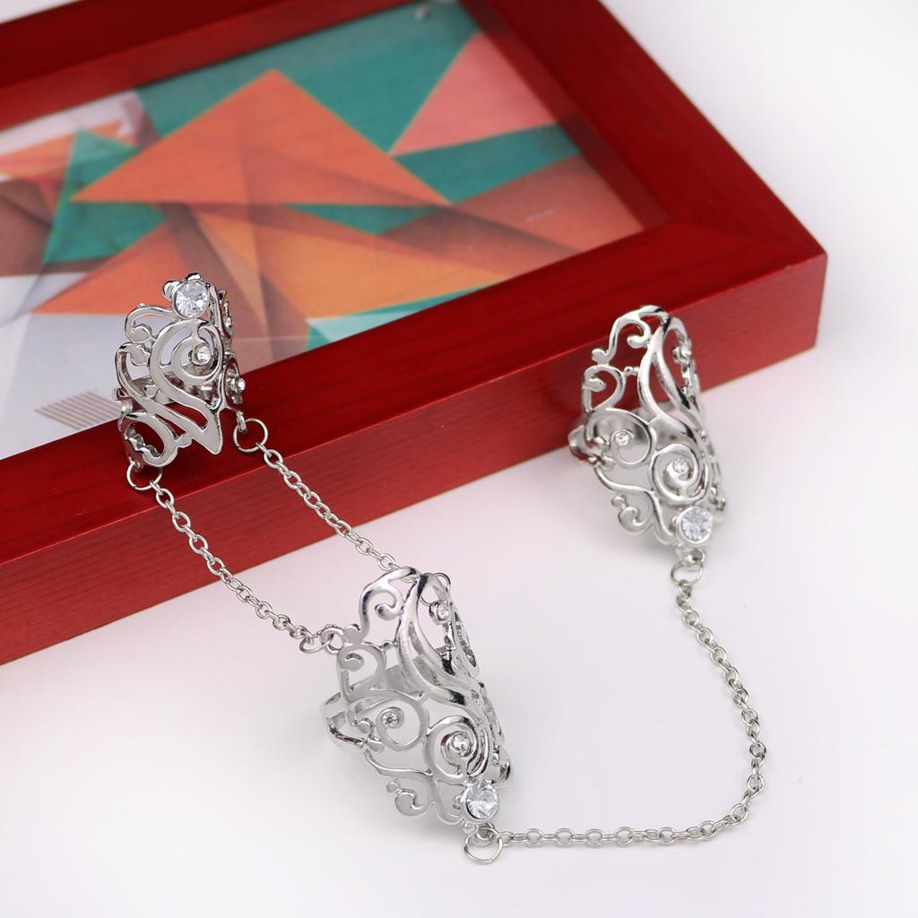 Rhinestone Full Finger Joint Knuckle Armor Hollow Out Finger Ring Silver
