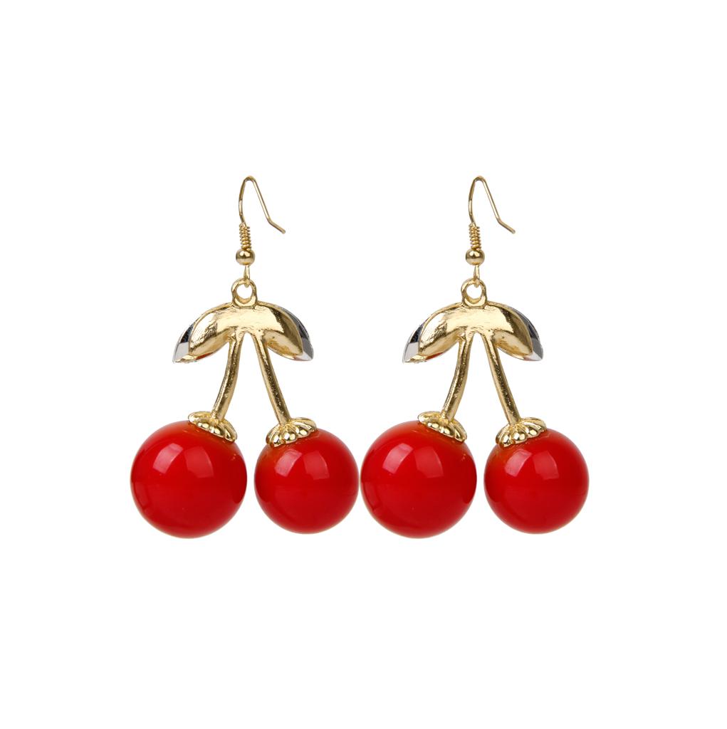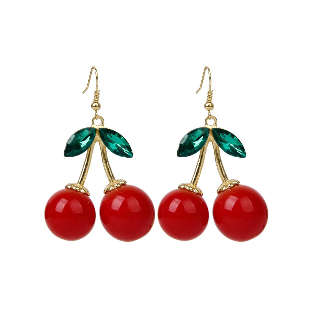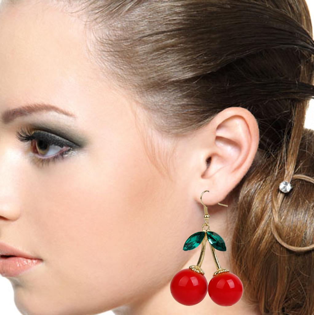 Rockabilly Red Cherry Diamante Crystal Drop Dangle Chandelier Hook Earring Studs