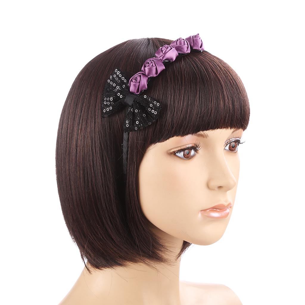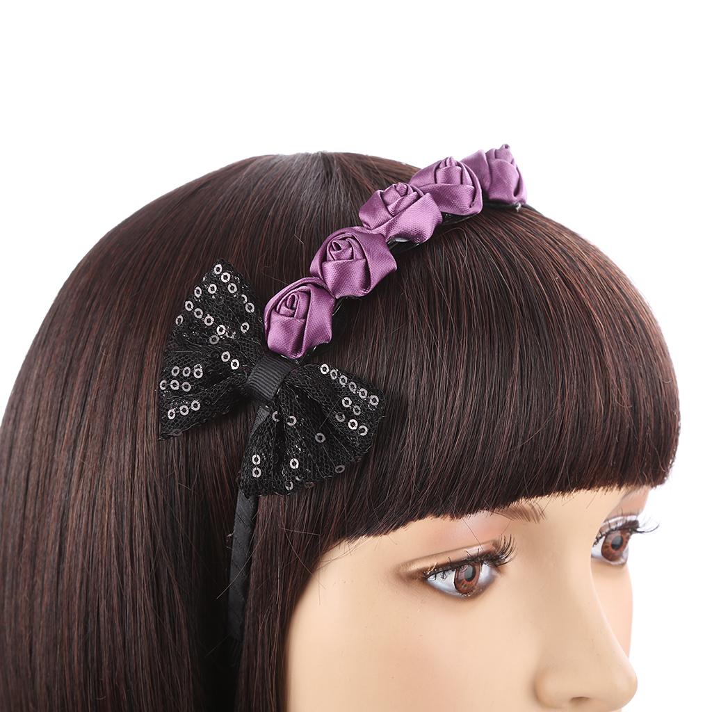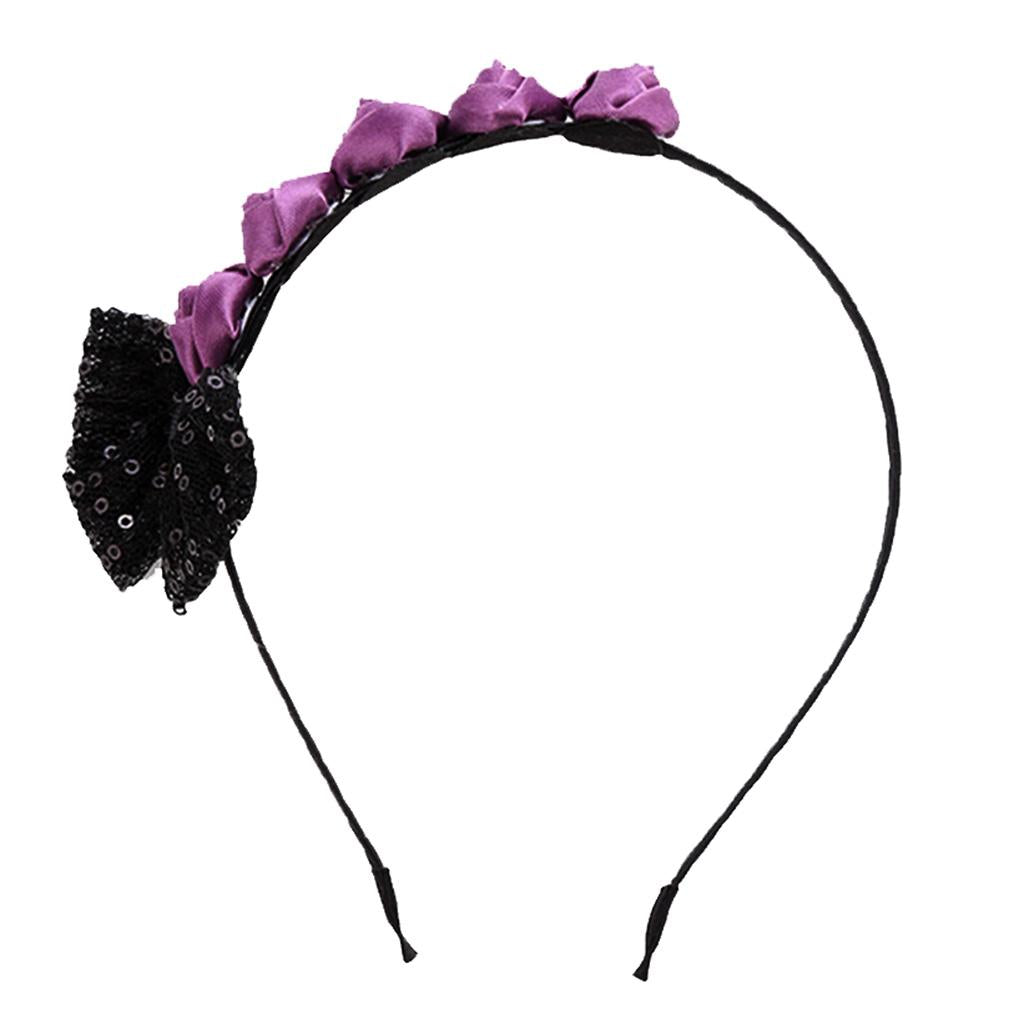 Fashion,vintage,casual style purple rose flower and black bowknot headband forwomen girls;