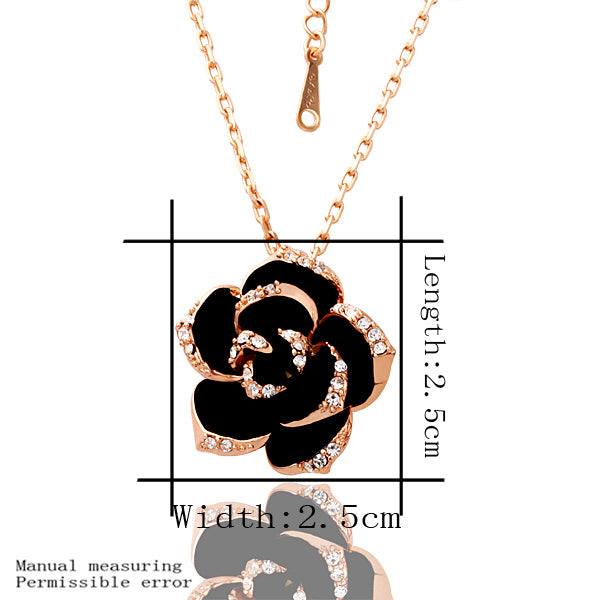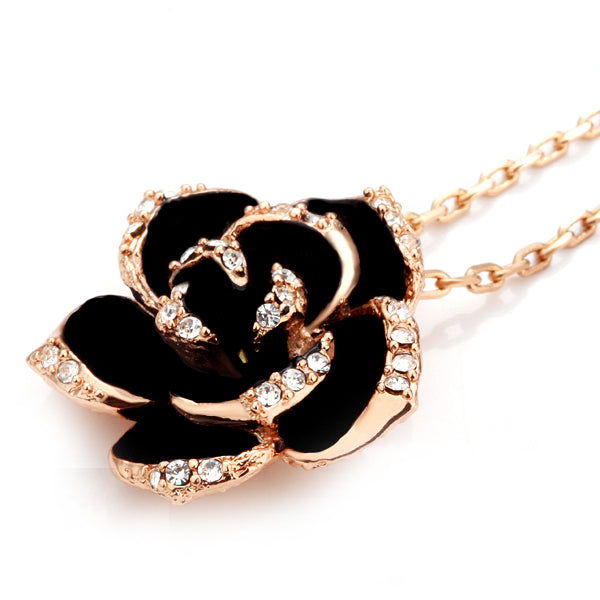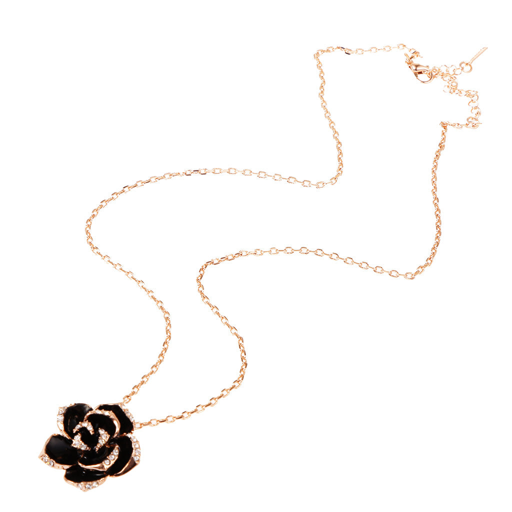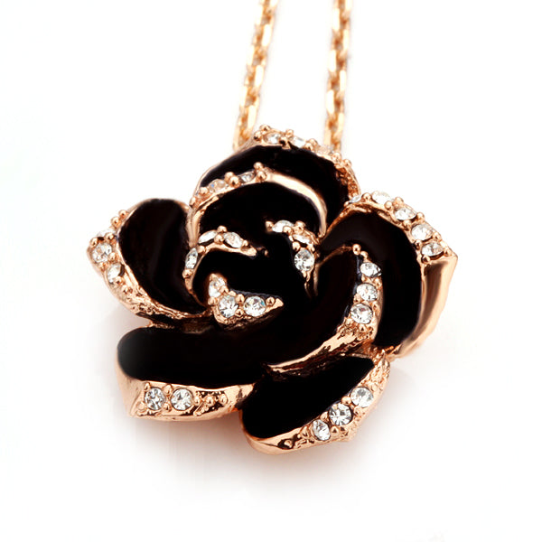 This black rose pendant necklace is nicely crafted, great necklace for you to wear. There are small crystal rhinestones on the rose petals. You will be amazed by its fine details and with delicate chain, this charming necklace is more fashionable and stunning, sure to make you look fabulous in the crowd! A great gift for your friends!