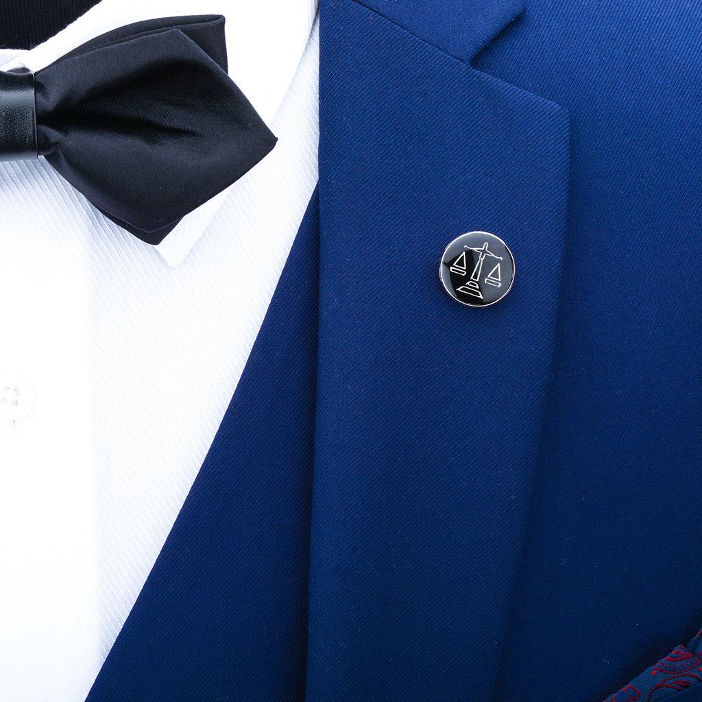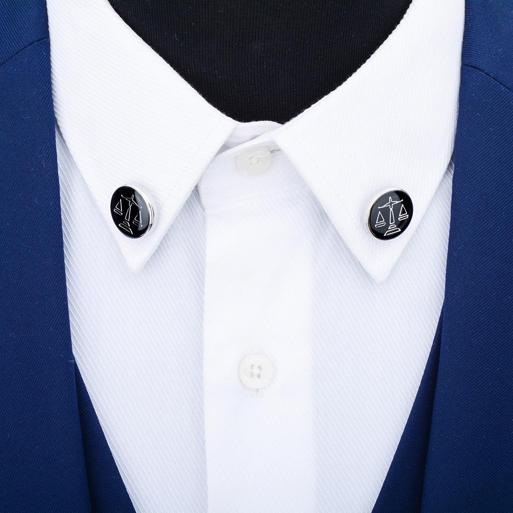 Round Black Badge Collar Pin Justice Scale Pattern Men Women Shirt Brooch Wedding Party Decoration Jewelry